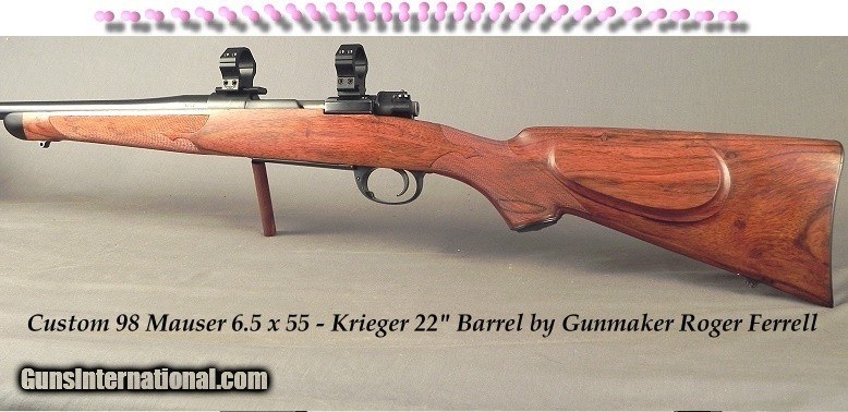 MAUSER 6.5 x 55 CUSTOM 98 MAUSER- 22" KRIEGER Bbl. by ROGER FERRELL- NICE CUSTOM CLASSIC STOCK- VERY NICE METAL WORK- WARNE BASES & RINGS- 99% COND