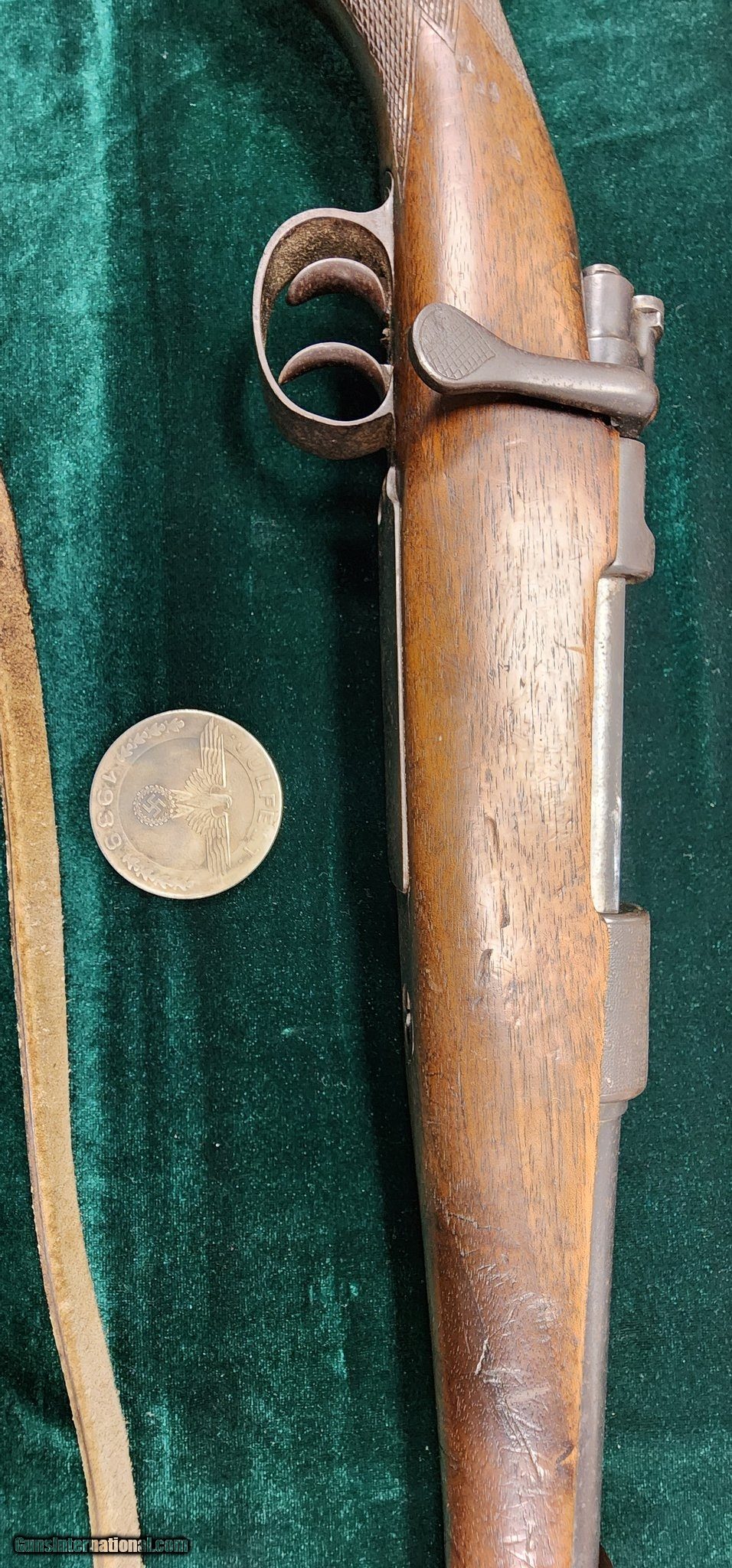 Description: Guns Listing ID: 1312211 Double trigger model 98, with sling and NAZI Coin, Rusted and scratched, but in fair condition, metal engravings on receiver and sights. Not much more Info. SOLD Manufacturer: MAUSER Model: 98 Custom build Caliber Info: 8MM MAUSER Condition: Used - Non-Certified Barrels: 23.5 BARREL Finish: WOOD AND METAL ENGRAVING |