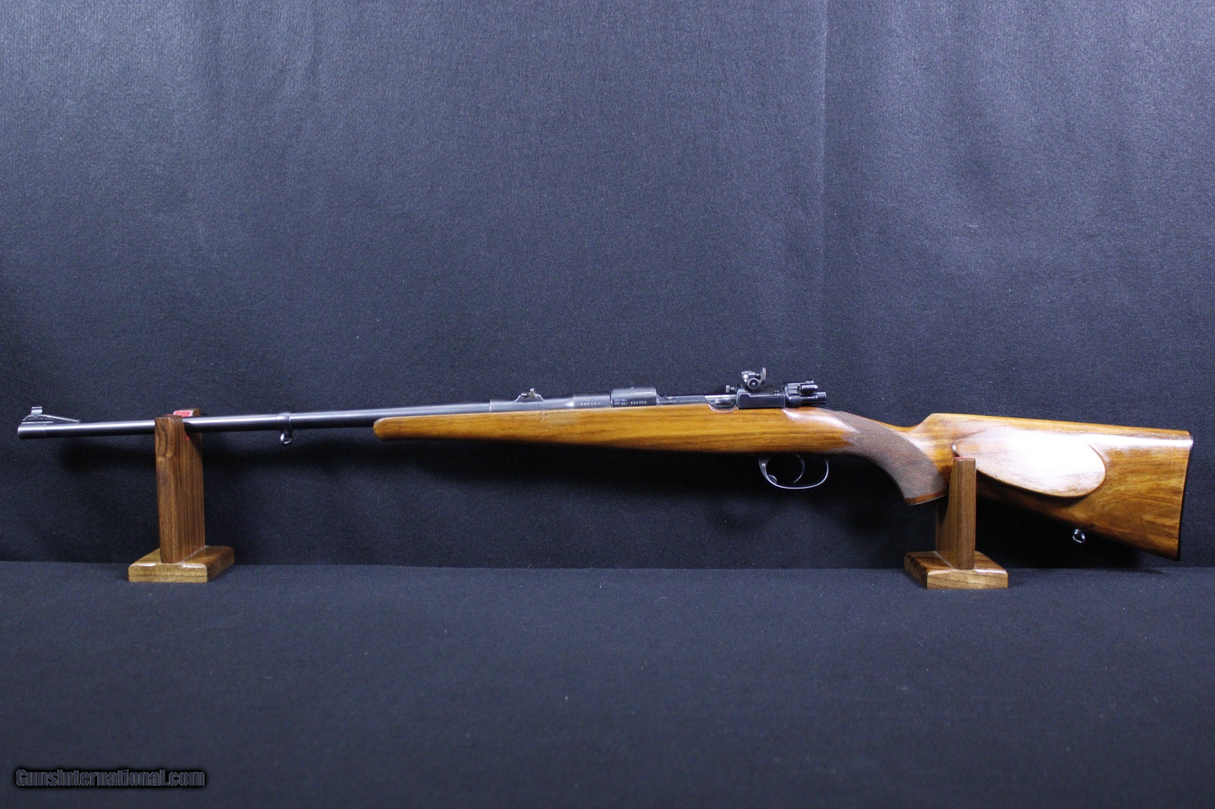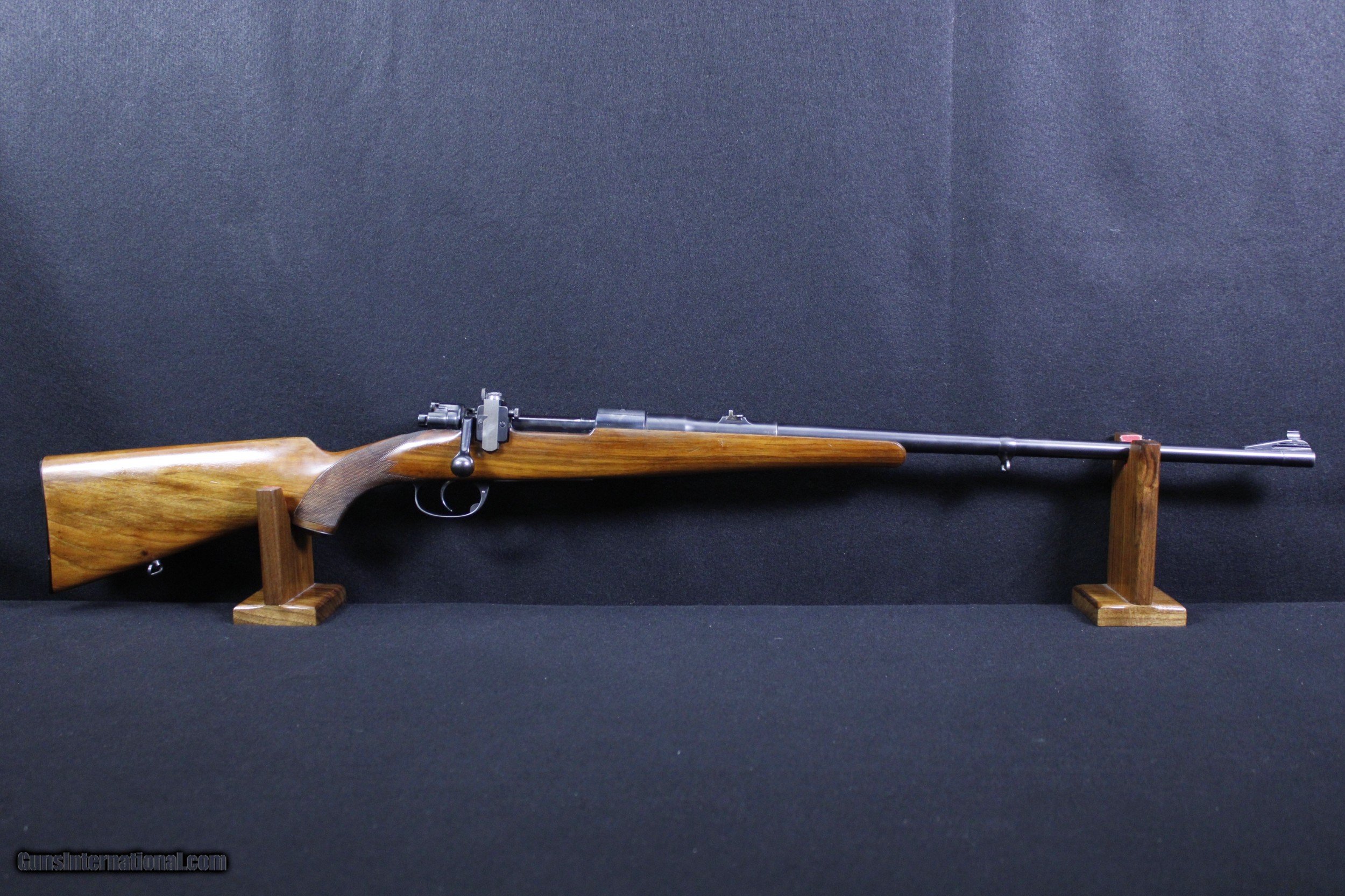 Description: Beautiful well kept Mauser Model B chambered in 7MM Mauser. The Monte Carlo stock shows some minor handling marks. Bore is bright and clear with well defined lands and grooves. Equipped with Lyman receiver sight. Mechanically excellent. Dimensions are as follows; BBL. 26" WT. 7lb. 14oz. DIM. 14 1/2" L.O.P. SOLD |