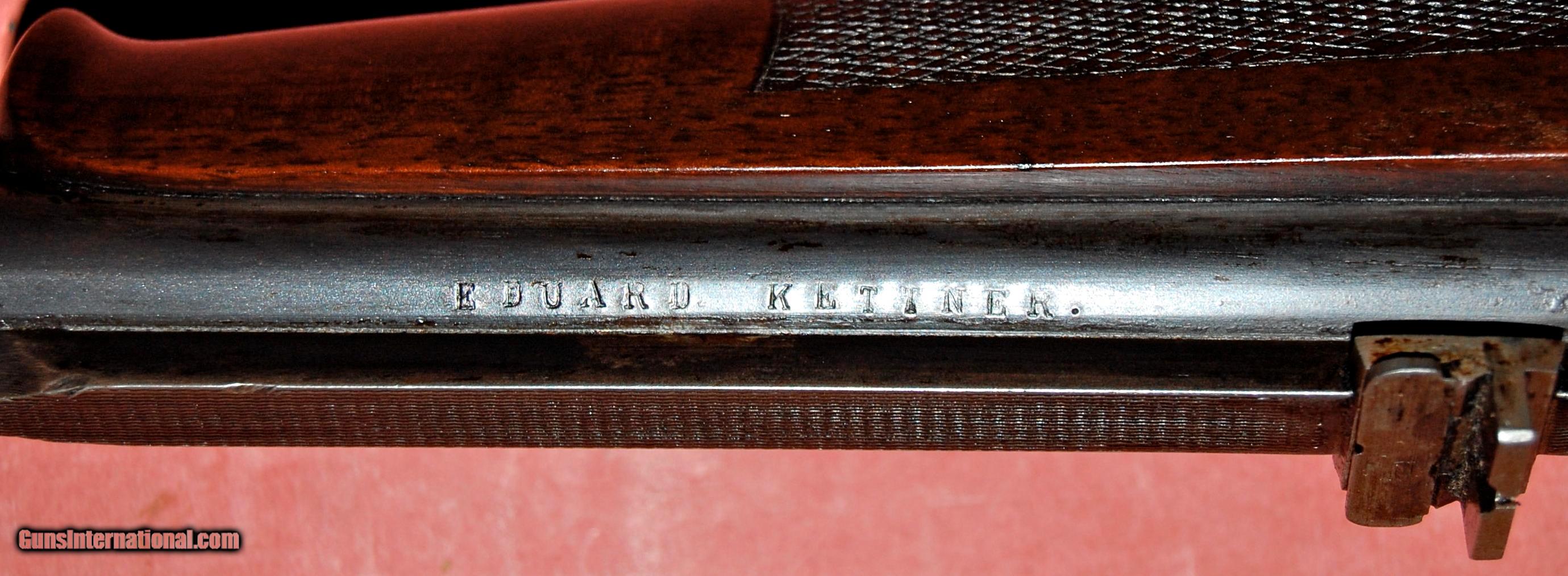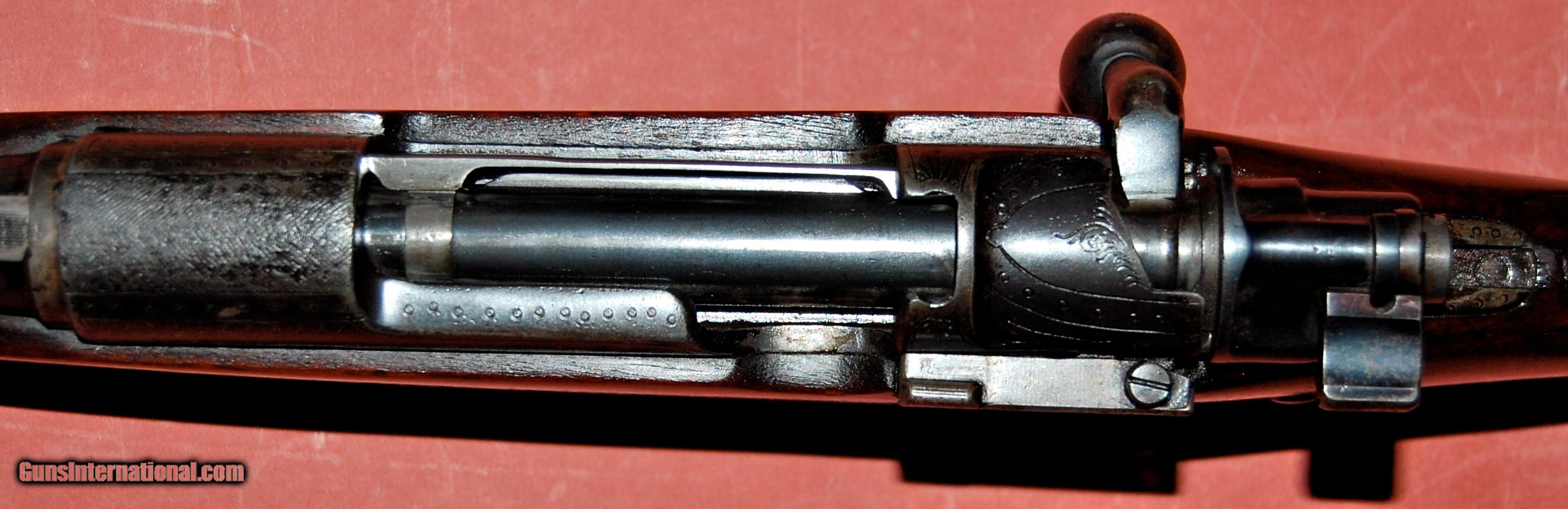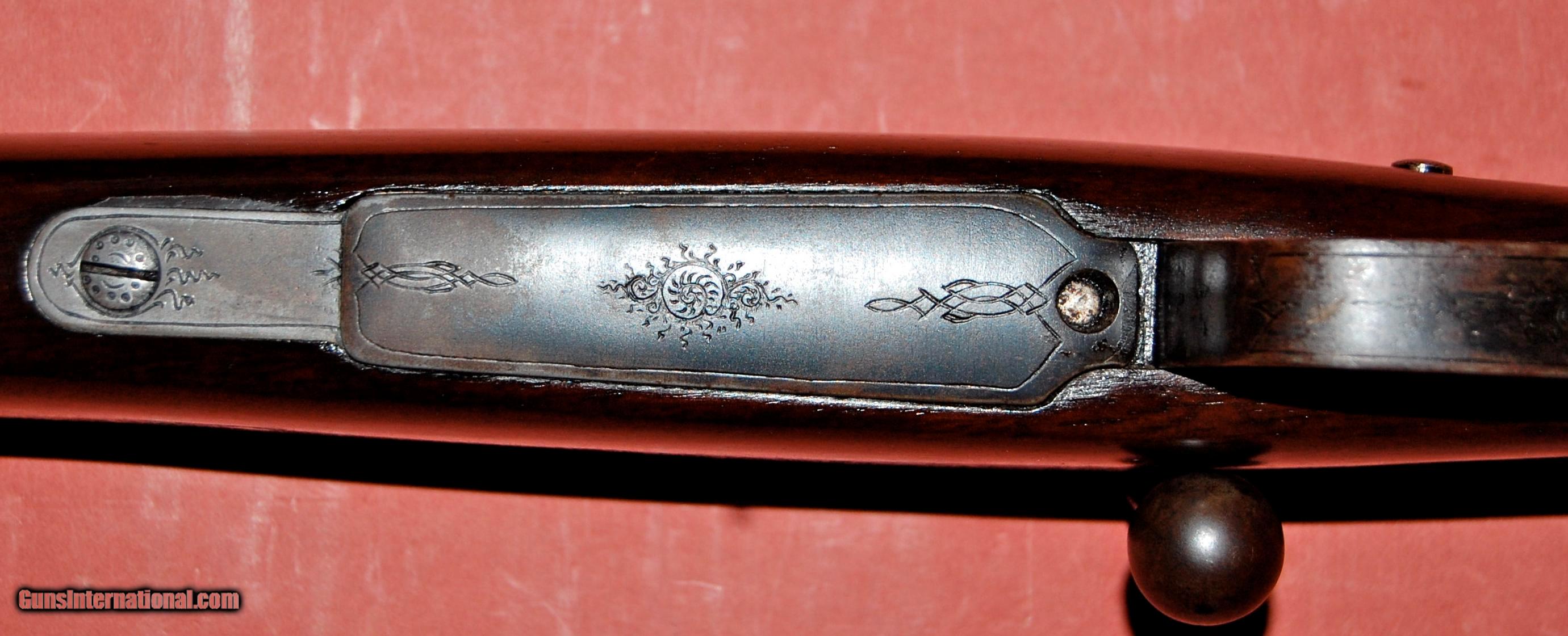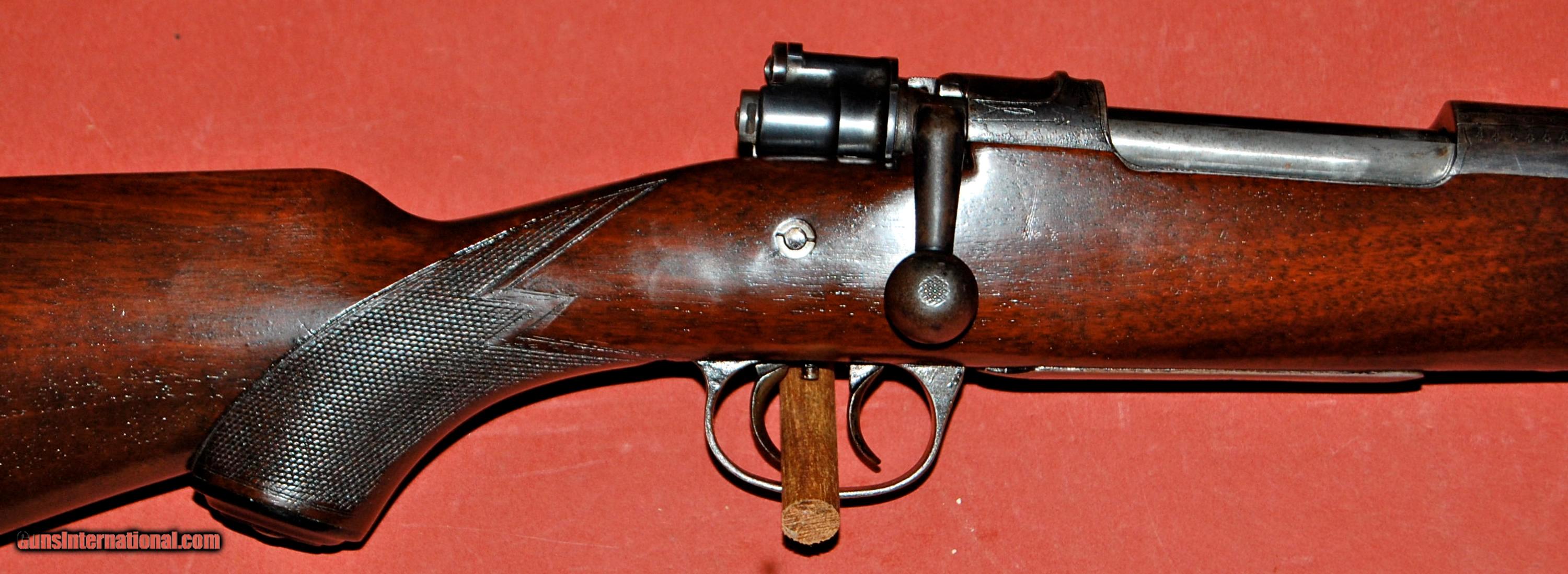 Description: Mauser action pre war stalking rifle built for Edwuard Kettner sporting goods.This fine rifle has a full length integral solid rib on a 24" barrel.It is chambered in 30-06.The rifle has several quality features including double set triggers,double safety,one stading ne folding express sight,sling swivels,scroll engraving,and a horn buttplate.The bore is mint and sharp.The receiver has not been drilled for a scope.This is a very nice all original pre war rifle with all the classic features in a U.S. caliber.C&R eligible. SOLD Curio/Relic: Yes Manufacturer: built for Edwuard Kettner Inc. Model: Sporter Caliber Info: 30-06 Metal Condition: excellent Wood Condition: excellent Bore Condition: mint Action: bolt Triggers: double set Rib: full length integral Sights: express |