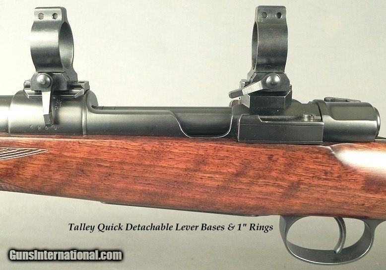 RIGBY 275 (7 x 57 Mauser)- 1951 LONDON RIGBY- MAUSER ACTION- ORIG. CANVAS TRUNK CASE- TALLEY Q D LEVER BASES & 1" RINGS- OPEN SIGHTS- 97%