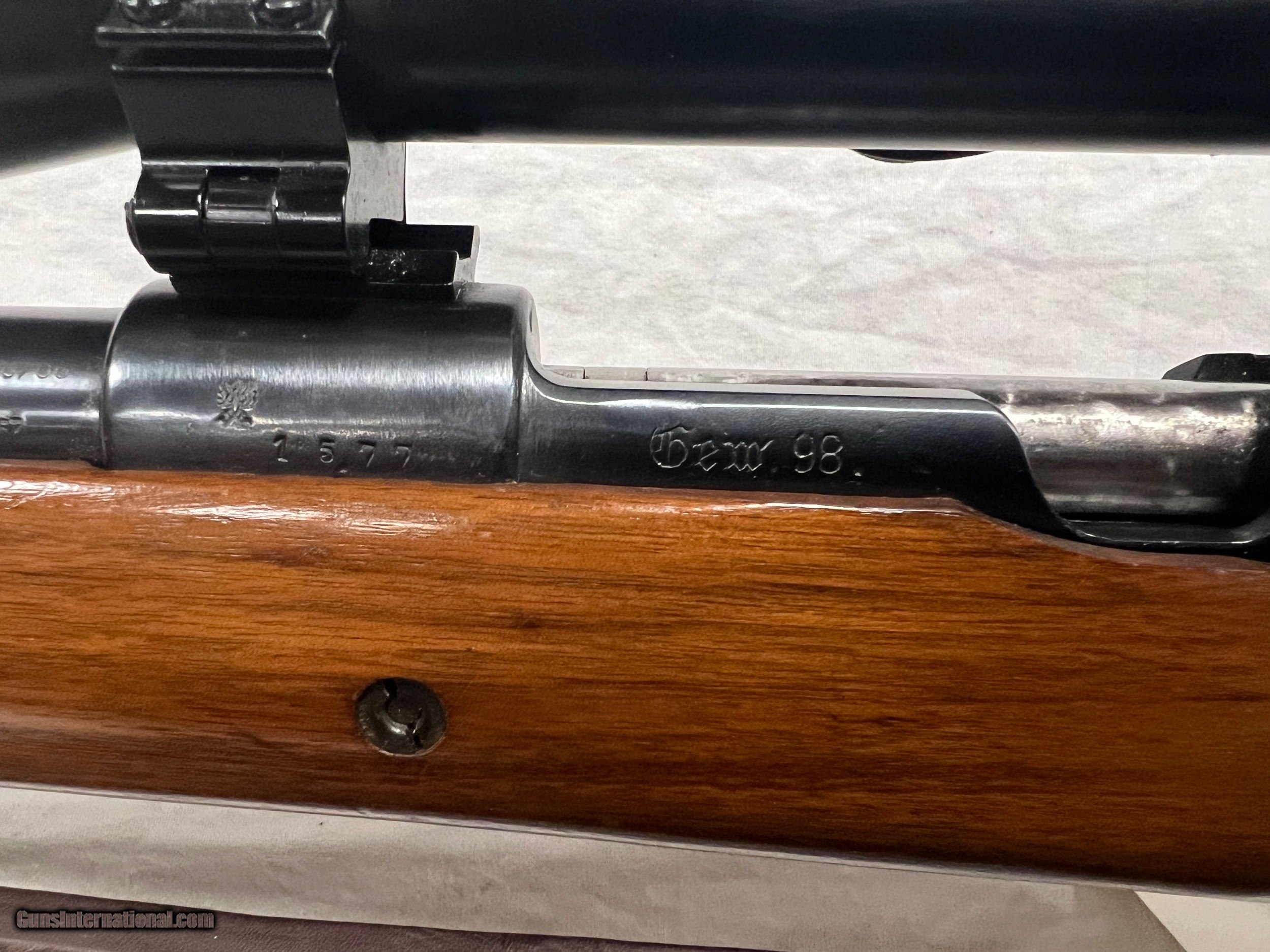 Description: This is a German GEW 98 that has been converted to a hunting rifle. This rifle is 30-06 Springfield and in 90% condition. The shipping is $35.00 SOLD Rifle Caliber: .30-06 Springfield Manufacturer: German Model: GEW 98 Serial Number: 1577 Condition: 90% |
