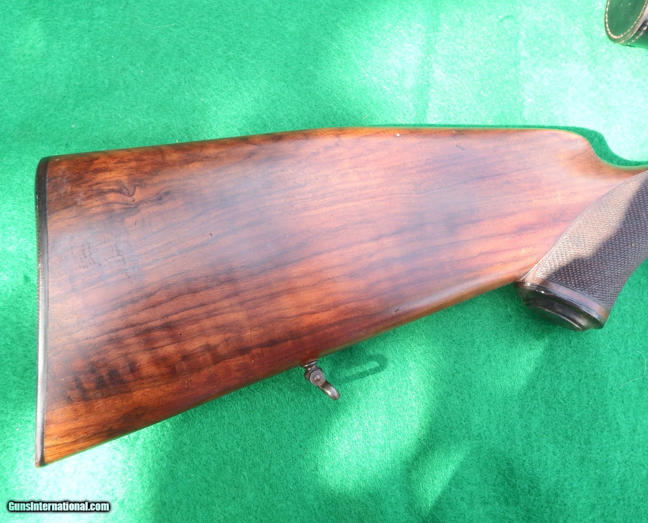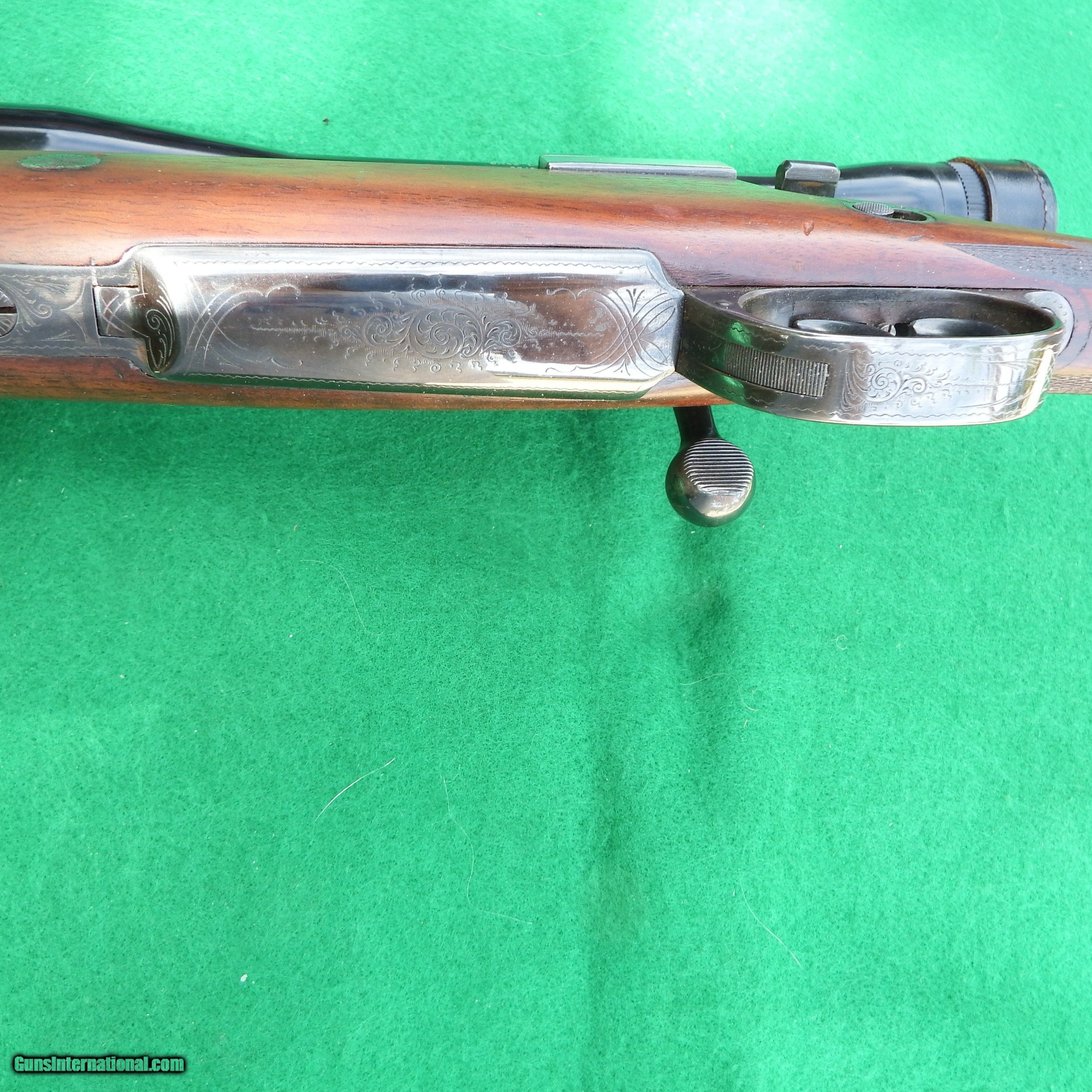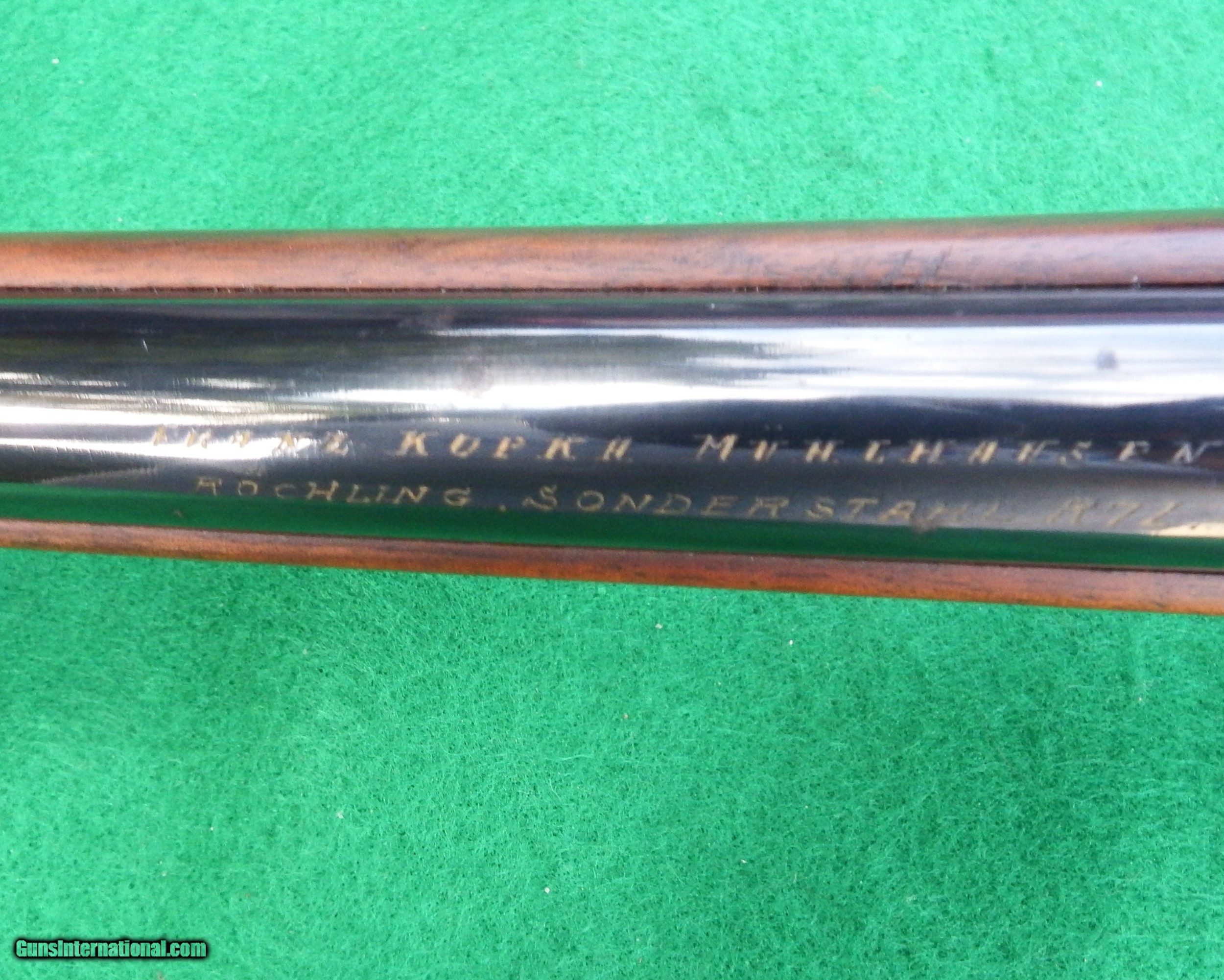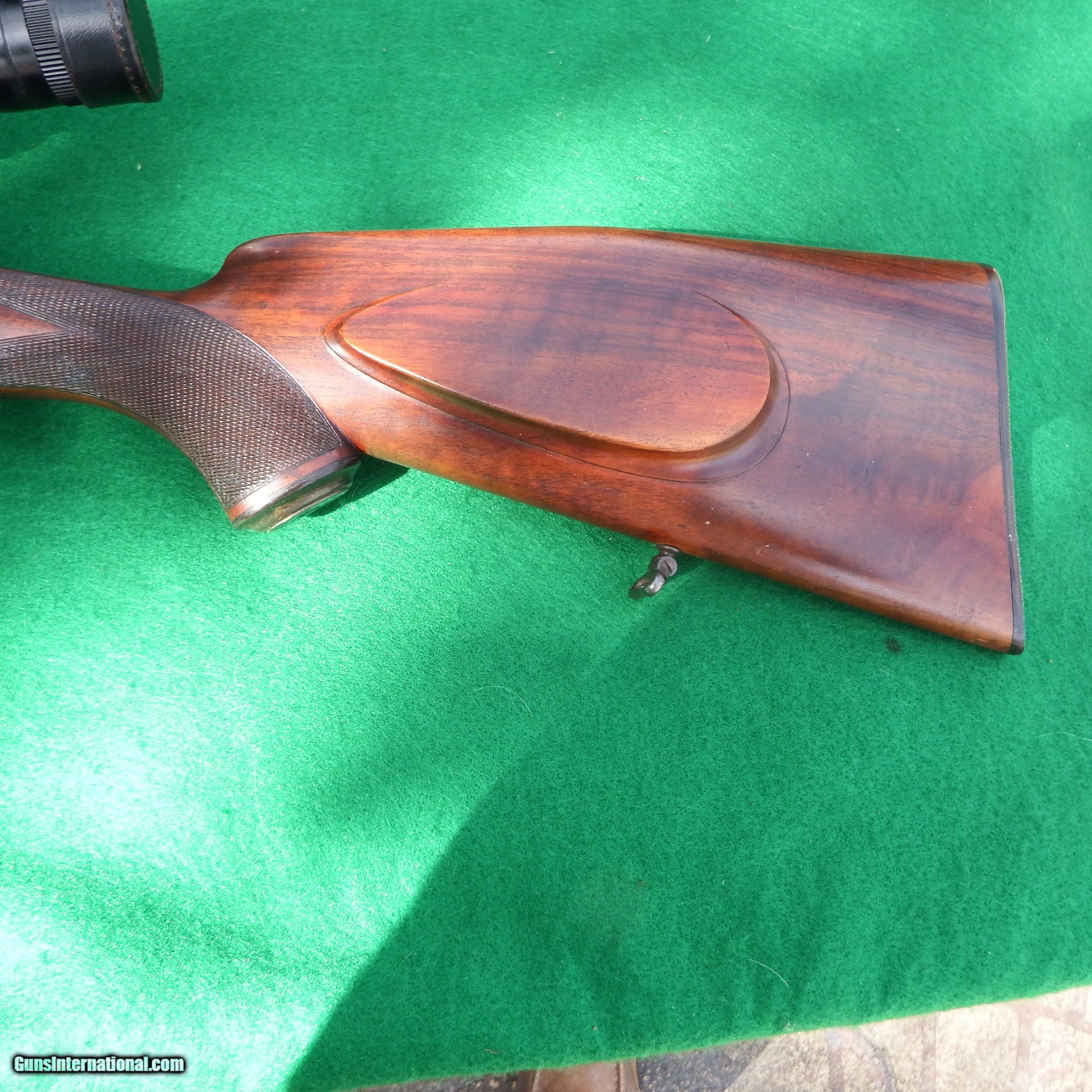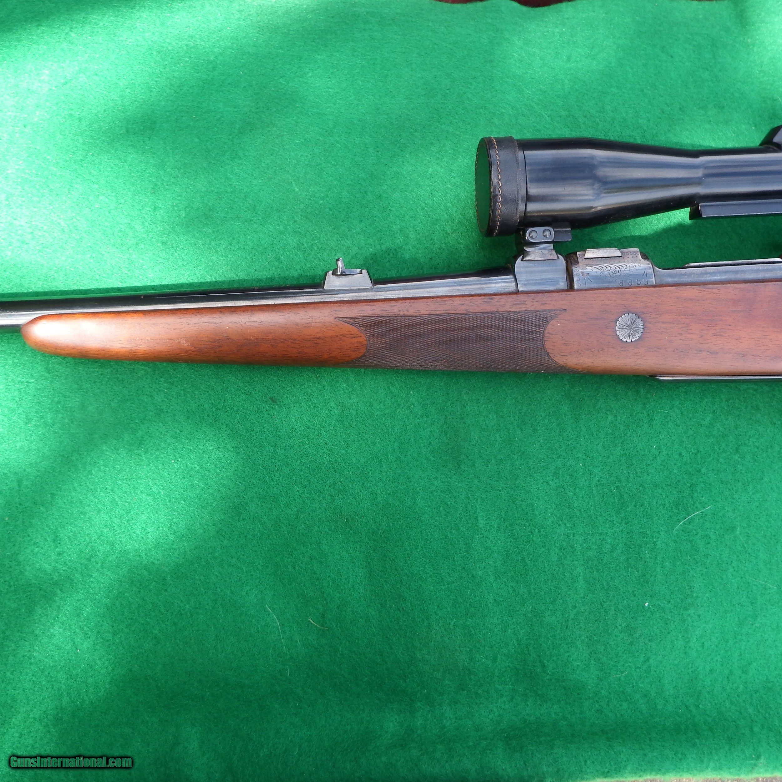 Description: SOLD - BUT I HAVE SEVERAL MORE VINTAGE GERMAN MADE SPORTERS AVAILABLE -----This one of rare finds of the prewar legendary hyper-vel square bridge Mauser rifles. It has it all. Exra fancy checkering - set triggers - Greener safety – Finest of Ernst Leitz Wetzlar ( of Leica fame) claw mt optics - Genuine horn grip cap and butt plate. Sling & strap swivels – classic German scroll engraving – mint bore - perfect optics. Rochlng – Sundrstahl R 7 L – finest German gun steel. Action reinforcing lug in stock. The stock has some tiger stripe – unusual for walnut German rifles. This rare piece looks like it has been meticulously cared for the whole time. To my knowledge - it is the only Vom Hofe for sale currently on the entire market place. Performance? - 93 grain near 4000 FPS! That is almost twice the bullet wt at the same velocity as a 50 grian 220 Swift , and it was developed over 80 years ago by German engineering. That is ‘smoking’ performance by even modern standards. Good news – is that Ammo is still available through RWS. The pictures tell the story. OWN a GERMAN LEGEND . Offer a 3 day inspection guarantee. Please phone for any questions. Joe 813-2430588 Tampa SOLD Curio/Relic: Yes |