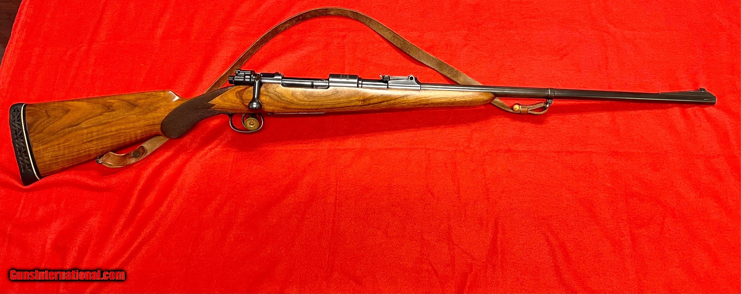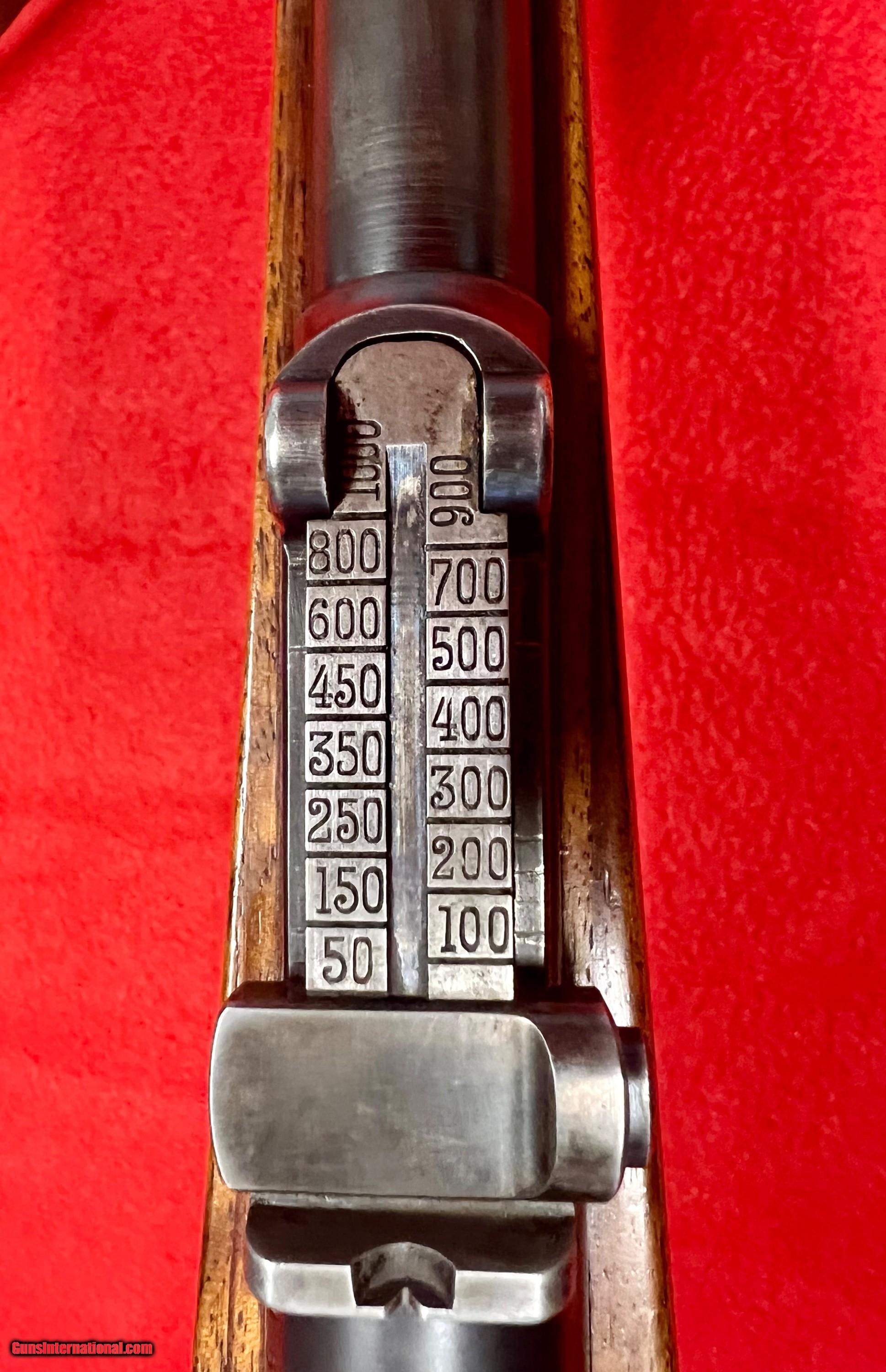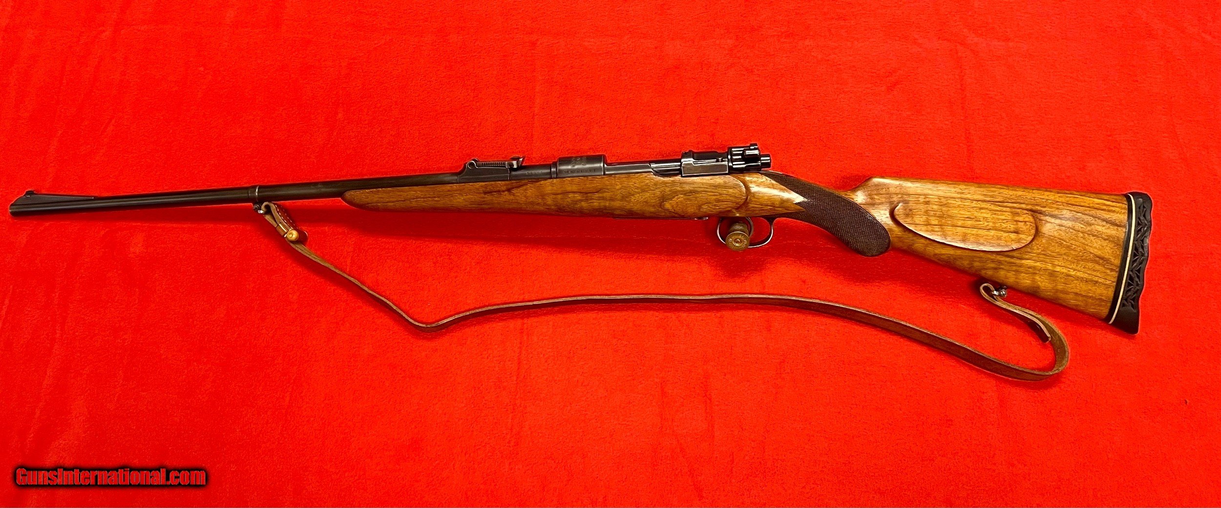 Description: WAFFENFABRIK MAUSER OBERNDORF A/N 1912. A totally original Commercial Mauser Sporter in 7/57 Mauser. This is an original pre WWI comercial sporter. It was not a cut down! It has not been re-blued, drilled or taped and the wood is in excellent original condition. The gun has deluxe 1/64 checkering, ramped front sight, rear tangent sight from 50 to 1000 meters and monte carlo stock. It's fitted with original sling swivels, wood button leather sling, and hinged floor plate. Every serial number on the rifle matches (see pictures). This is a fine example of a Pre WWI correct with "Waffenfabrik Mauser AG. Oberndorf A/N 1912 on the receiver ring. The original bluie remains 95-98%. The original stock finish at 95% and checkericking at 98%. The bore is in excellent shiney condition 95% and also comes with vintage box of ammo. This rifle was made when Paul von Mauser was still alive. He passed away May 29, 1913 and left and everlasting legacy with the Gewehr 98 system bolt action rifle. No one has duplicated or beat it since *******SALE PENDING******** SOLD Rifle Caliber: 7x57mm Mauser Manufacturer: WAFFENFABRIK MAUSER AG. OBERNDORF A/N 1912 Barrel Length: 24 Condition: Excellent Metal Condition: Excellent Wood Condition: Excellent Bore Condition: Excellent |