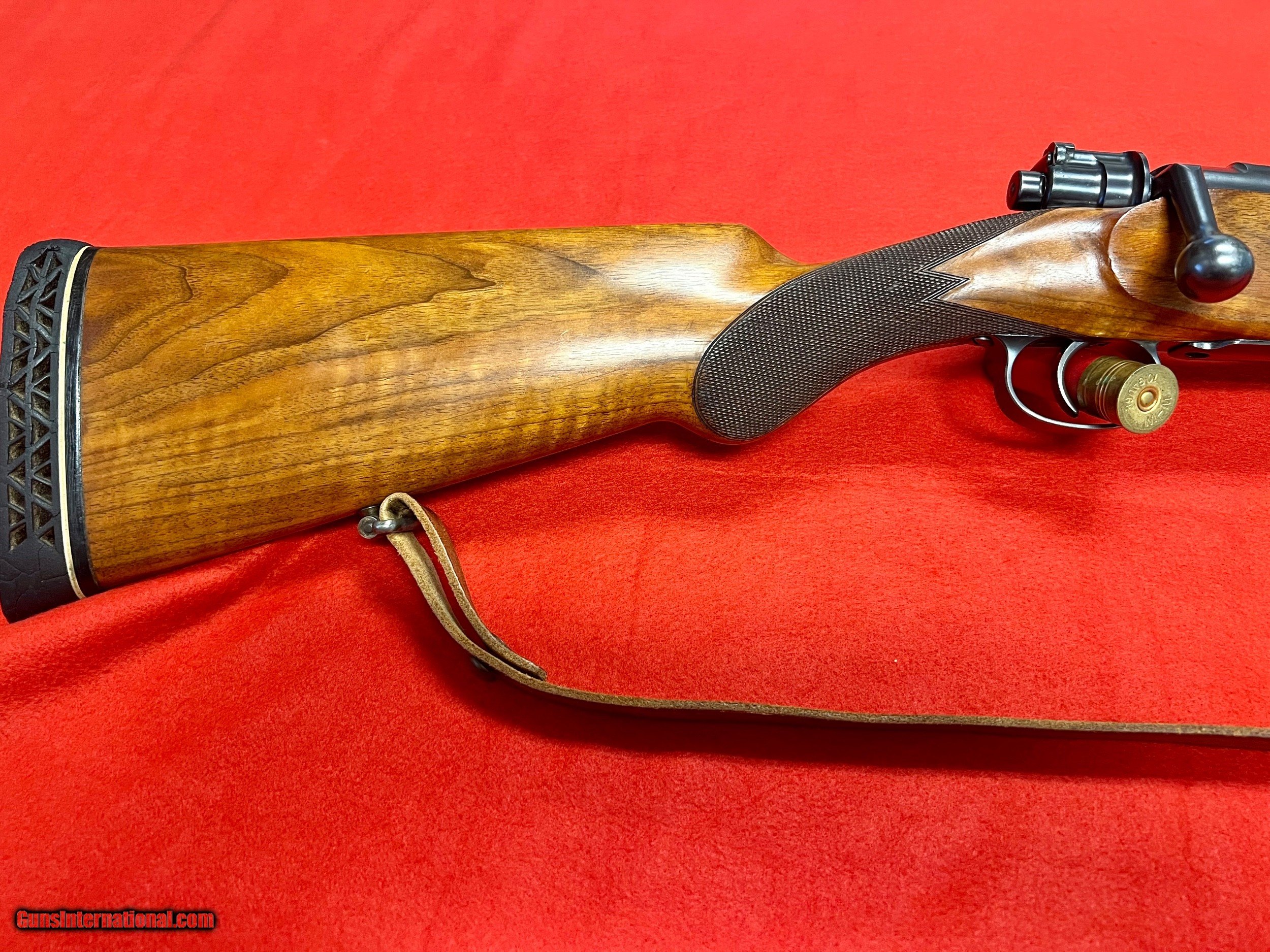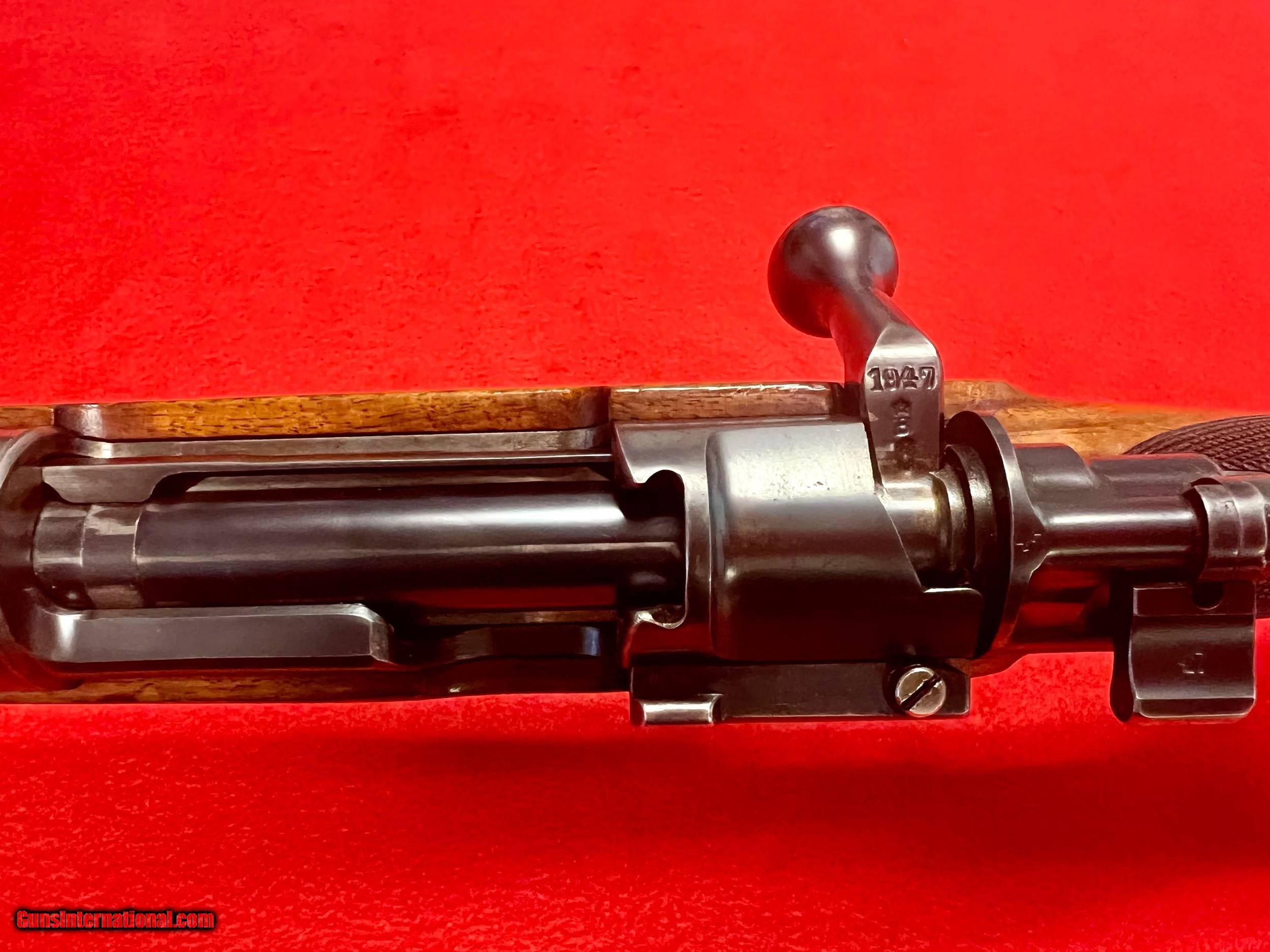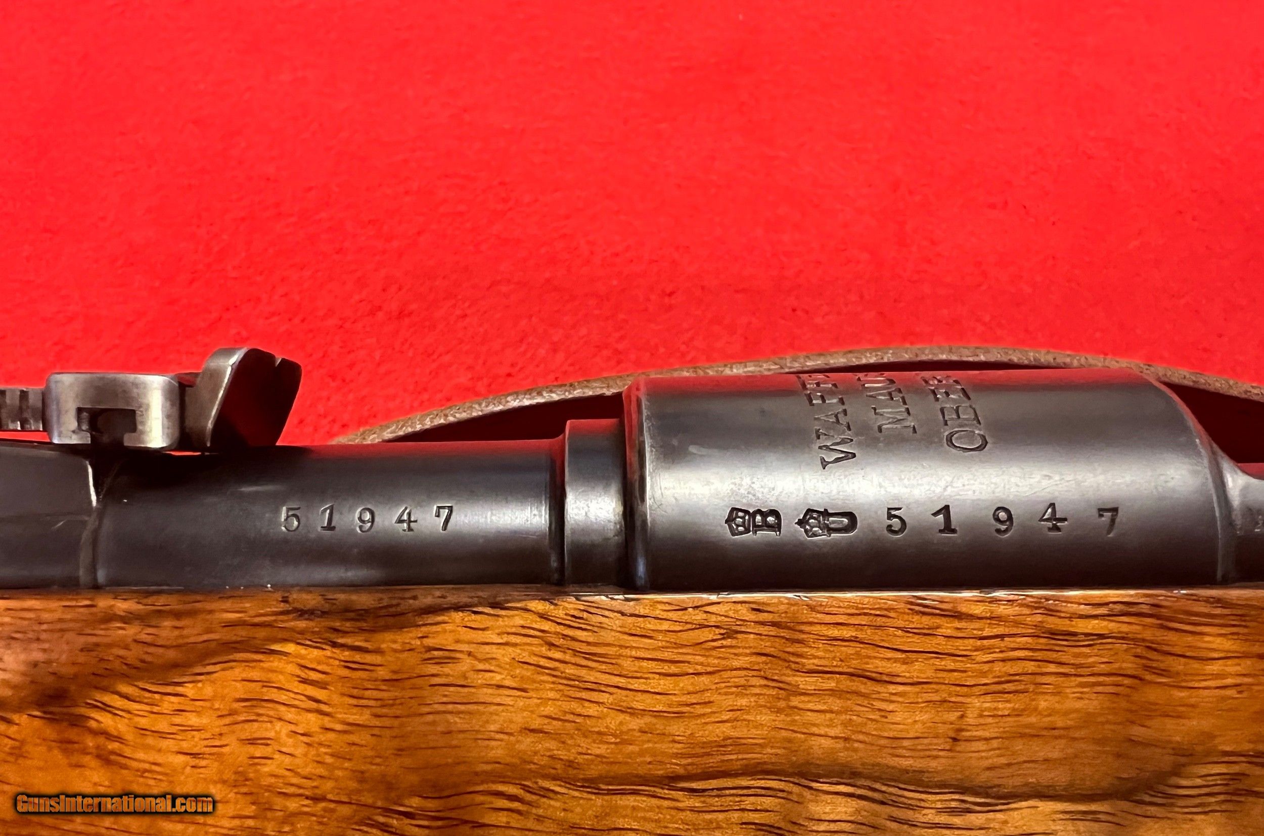 Description: WAFFENFABRIK MAUSER OBERNDORF A/N 1912. A totally original Commercial Mauser Sporter in 7/57 Mauser. This is an original pre WWI comercial sporter. It was not a cut down! It has not been re-blued, drilled or taped and the wood is in excellent original condition. The gun has deluxe 1/64 checkering, ramped front sight, rear tangent sight from 50 to 1000 meters and monte carlo stock. It's fitted with original sling swivels, wood button leather sling, and hinged floor plate. Every serial number on the rifle matches (see pictures). This is a fine example of a Pre WWI correct with "Waffenfabrik Mauser AG. Oberndorf A/N 1912 on the receiver ring. The original bluie remains 95-98%. The original stock finish at 95% and checkericking at 98%. The bore is in excellent shiney condition 95% and also comes with vintage box of ammo. This rifle was made when Paul von Mauser was still alive. He passed away May 29, 1913 and left and everlasting legacy with the Gewehr 98 system bolt action rifle. No one has duplicated or beat it since *******SALE PENDING******** SOLD Rifle Caliber: 7x57mm Mauser Manufacturer: WAFFENFABRIK MAUSER AG. OBERNDORF A/N 1912 Barrel Length: 24 Condition: Excellent Metal Condition: Excellent Wood Condition: Excellent Bore Condition: Excellent |