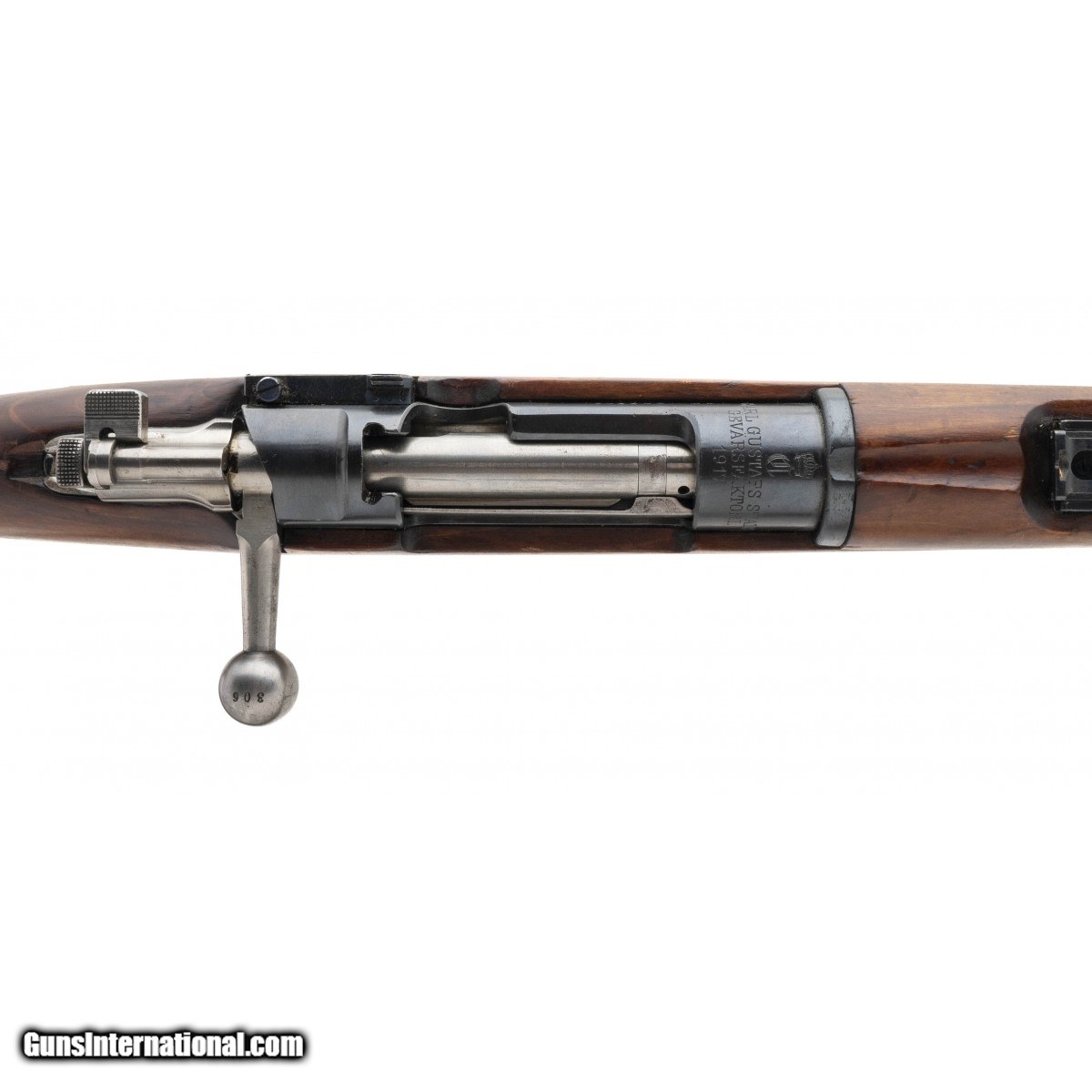 Description: " SN: 403306. Made in 1917 by Carl Gustafs, numbers are matching. 6.5x55mm with a 29"" barrel. Bore is excellent. Bluing is very good, rear sights have slight brown patina. Has original sling and original stock disk. Overall condition very good. SOLD Curio/Relic: Yes |