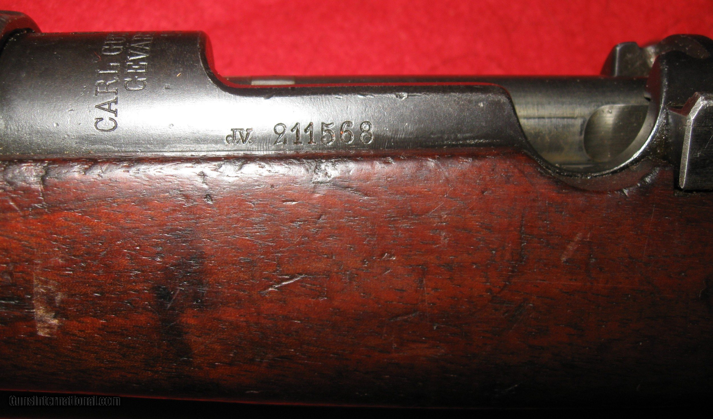 Description: THIS SWEDISH MAUSER IS DATED 1907 AND IS A MODEL 96/38. THIS ONE IS SERIAL # 211568, CAI IMPORT STAMPED AND IS COMPLETE WITH CLEANING ROD, ORIGINAL SLING AND NON MATCHING BAYONET. ALL THE RIFLE PARTS HAVE MATCHING NUMBERS. THE REAR SIGHT IS THE THUMBWHEEL ELEVATION ADJUSTABLE TYPE. THE STOCK DISC IS MISSING. THE BORE IS BEGINNING TO SHOW SOME WEAR IN THEGROOVES. IT HAS A CRISP TRIGGER AND FUNCTIONS PERFECTLY. THE WILLIAMS SIGHT AND THE FRONT GLOBE SIGHT SHOWN ARE AVAILABLE FOR $75 EACH OR $100 FOR THE SET. THE GLOBE IS FITTED TO THE FRONT RAMP AND COMES WITH INSERTS. THE WILLIAMS RECEIVER SIGHT BOLTS RIGHT ON WITH INCLUDED MOUNTING SCREWS. THE RECEIVER IS TAPPED AND THE STOCK RELIEVED FOR THE WILLIAMS RECEIVER SIGHT. I ALSO HAVE A TIMNEY ADJUSTABLE TRIGGER FOR AN EXTRA $75 THAT THE STOCK HAS BEEN RELIEVED FOR. SHIPPING IS $35 MY FFL TO YOUR FFL SOLD Curio/Relic: Yes Rifle Caliber: 6.5x55mm Swedish Manufacturer: CARL GUSTAV STADT GEVARSFAKTORI Model: 96/38 Serial Number: 211568 Barrel Length: 24 Condition: GOOD Metal Condition: GOOD Wood Condition: GOOD-DINGS AND SCRATCHES Bore Condition: GOOD-STARTING TO SHOW WEAR IN LANDS Action: BOLT Finish: BLUE Sights: OPEN REAR THUMBWHEEL ADJUSTABLE-OPTIONAL WILLIAMS RECIEVER AND FRONT GLOBE SIGHTS Manufacture Date: 1907 |