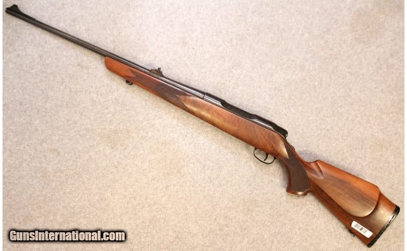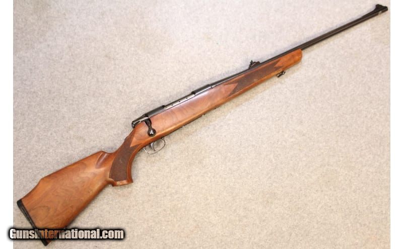 Description: This Carl Gustaf M-3000 chambered in .30-06 SPRG features, blued finish, tapped receiver, iron sights, sling mounts, cheek riser, rubber recoil pad, and wood checkered stock. .30-06 Springfield SOLD Metal Condition: Great Wood Condition: Great Bore Condition: Bright Barrels: 24 Weight: 7.2 lbs. Item Location: Hoffman Estates, IL |