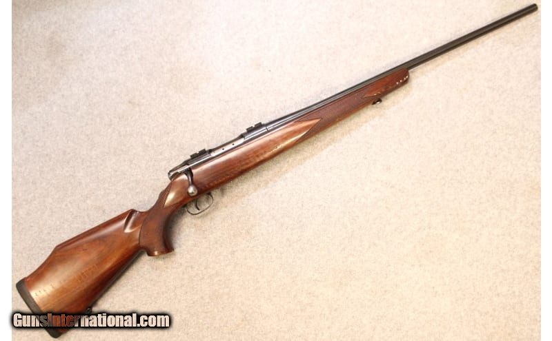 Description: This Carl Gustaf M-3000 chambered in .308 Win features, blued finish, tapped receiver with ring bases, tapped barrel for iron sights, sling mounts, rubber recoil pad, wood checkered stock. .308 Winchester SOLD Metal Condition: Good Wood Condition: Bad with crack in the handle. Bore Condition: Bright Barrels: 24 Weight: 7.3 lbs. Item Location: Hoffman Estates, IL |