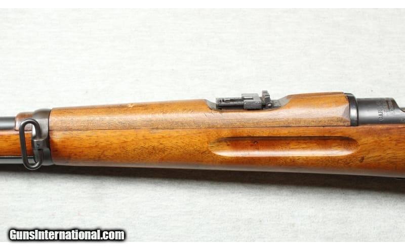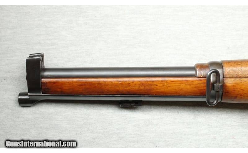 Description: Very good condition, light wear, small nicks and scratches. Manufactured in 1921 by Carl Gustafs, a unique rifle that started life as Swedish M94 carbine. Imported by Interarms co. and designated the "G33/50". A new stock disc was also added. Matching serials on the receiver and bolt/bolt components. 18" barrel with original sights. Military blued finish and oiled wood stock. 6.5x55mm SOLD Curio/Relic: Yes Chambers: Bolt action Metal Condition: Very good Wood Condition: Very good Barrels: 18 Triggers: Factory Stock Dimensions: 13" LOP Fore End: Wood handguards Butt Pad: Smooth metal butt plate Sights: Adjustable miltary sights Item Location: La Vista, NE |