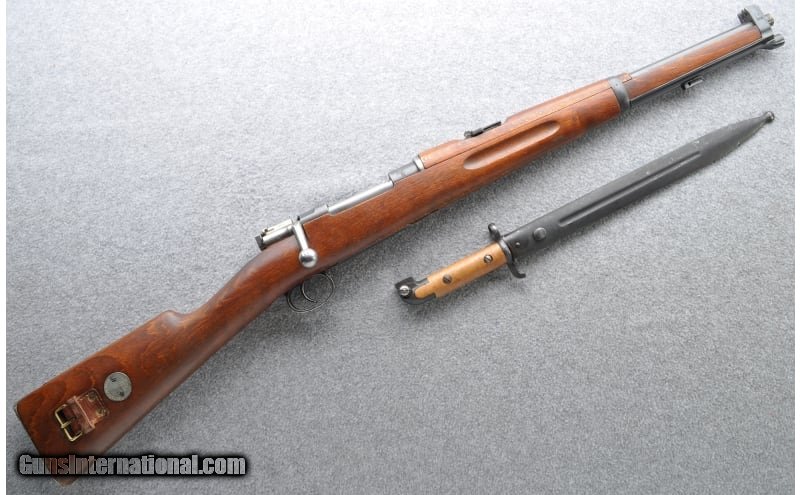 Description: This M/94-14 carbine was produced in 1914 and was inspected by Helge Kolthoff. It is accompanied by an M-1914 Cavalry bayonet in a hand-made transport box. All numbers are matching, and the firearm is in incredible condition. 6.5x55 Swedish SOLD Chambers: 6.5x55 mm Swedish in a five round box magazine Metal Condition: "Very good, showing some edge wear, at the trigger guard. The bayonet is in excellent condition. Wood Condition: "Very good, with a few small marks on the buttstock. The bayonet handle shows some small marks as well. Bore Condition: "The bore should rank as a No. 1, it is bright with strong crisp rifling Barrels: 17.6 Triggers: Two stage military Stock Dimensions: 13" LOP Fore End: "Full length walnut with grasping grooves and upper handguard, metal barrel band with swivel and metal cap and bayonet lug Butt Pad: Metal Weight: 8 lbs. Sights: "Protected post front, Flip-up ladder graduated to 1,600 meters Item Location: Grand Junction, CO |