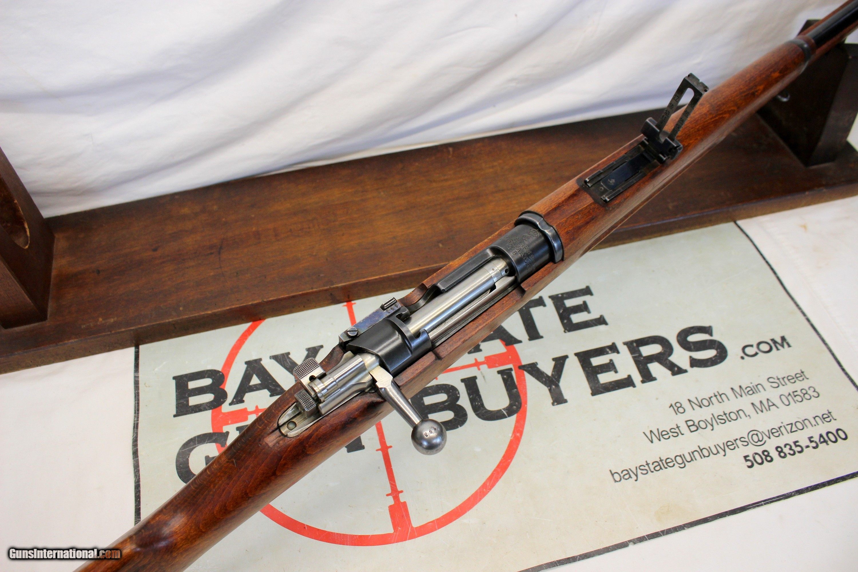 Description: We are offering for sale a Carl Gustafs SWEDISH MAUSER Model 96 bolt action rifle chambered in 6.5x55mm caliber. This is a FULLY MATCHING NUMBER example which is dated 1918. 29" barrel is very good with some scattered blue wear, loss. Bore remains bright and clean with crisp rifling. The action is very good retaining the majority of its original blue finish. The crown is fully marked. Bolt action functions flawlessly. The original stock and handguard are very good without breaks or cracks. No damage noted. Matching numbers buttplate is good with field wear. MATCHING NUMBERS: Nosecap, Barrel Band, Floorplate, Buttplate, Action, Bolt (3x), Rear Sight (2x), Bolt Release **** PLEASE NOTE: WE ONLY ACCEPT MASTERCARD AND VISA AS PAYMENT OPTIONS (please note we charge a non-negotiable 3% CC fee) **** **** WE TAKE CREDIT CARD PAYMENT OVER THE PHONE. WE DO NOT TAKE PAYMENT THROUGH THIS **** PLEASE LOOK AT ALL PHOTOGRAPHS FOR CONDITION Please know the legality of any weapon in your state before . If a gun can’t be transferred to you we will charge a 15% re-stocking fee. We are in the shop MODAY, WEDNESDAY, THURSDAY, FRIDAY and SATURDAY 8am-4pm EST. We will be in touch within 24 hours of your purchase. Please be ready to provide CC information. Please have your FFL email a copy of their license to: . No Face To Face Transfers! Please note: Clicking "buy" does not guarantee that this gun is yours, However clicking “Buy” will reserve this gun for you, if it hasn’t been sold in store. We will try to do our best to remove the posts as efficiently as possible, but sometimes delays may ensue. “Buy” is your safest bet to reserve a gun. Also please add 6.25% MA state sales tax (if from MA) and 3% credit card shop courtesy fee for all out of state buyers Before calling with concerns read these conditions and meet them accordingly.We are offering for sale a vintage Russian MOSIN NAGANT M38 (1938) CABINE rifle chambered in 7.62x54R caliber. This is a 1943 dated Russian rifle in very good, fully functioning condition. CAI import marked. MATCHING NUMBERS. SOLD Curio/Relic: Yes |