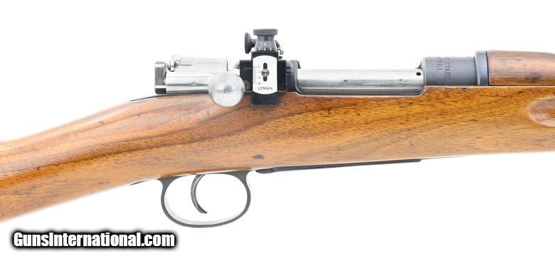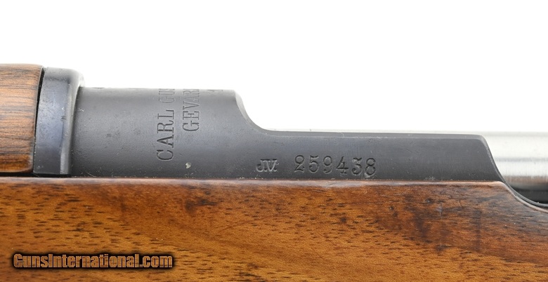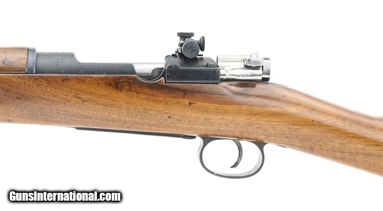 Description: Carl Gustav 1896 Mauser 6.5x55 Swedish caliber rifle. Swedish Mauser manufactured in 1910. Serial numbers are matching except for floor plate and upper barrel band. Rear sight has been replaced with a peep sight. Bore is excellent. Excellent overall condition.