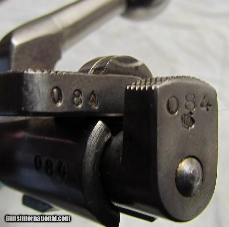Description: This is not a cut down vintage WWI Mod. 96 to meet the needs of a short rifle for horseback use. This 1941 manufactured Swedish military rifle was designed specifically with the down bolt [for saddle] mod. 1938 design. It does not look like it has had any field use. The wood, metal and bluing are 99%. The stock proof mark is crisp showing no sanding of stock. The barrel is bright with strong grooves. The stock disk shows the barrel bore diameter as 6.48 and, with no small triangle existing in the smaller triangle to the right the disk marks the barrel as new. With the use of a dental pick I could not remove the disk for cleaning- it's original to rifle and shows new barrel. The metal to wood fit shows precision machining with close fitting suggesting no exposure to weather extremes. MOST UNUSUAL is that every number matches. This means the numbers on the interior of the stock, match the barrel number [which you can not see without dismantling the rifle], and all visible numbers of the sight, bolt etc. See photos which show all of this. The barrel end is threaded for the blank firing device included. To cover the threads photos show a barrel cap. SOLD Curio/Relic: Yes Rifle Caliber: 6.5x55mm Swedish Manufacturer: Husqvarna Model: 38 Serial Number: 604084 Condition: 99% Metal Condition: 99% Wood Condition: 99% Bore Condition: 100% Manufacture Date: 1941 |