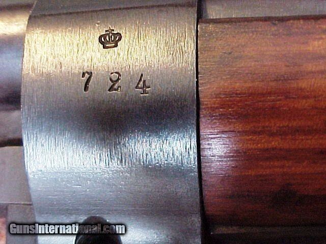 Description: SW48: Sweden M96 Rifle, 6.5x55mm. Bolt action with straight bolt. Import marked with all matching numbers. Cleaning rod has a different number which is the usual for any Swede. Metal is really nice 98+% with VG++ wood that has a few scrapes and scratches, but is nice. Has brass disc that reads 6.52 bore and #1 bore condition. End of barrel is NOT threaded. Threaded barrel guns were used for training with blank firing device that shredded the wooden tipped bullet and also issued to reserve troops. Includes correct double metal oilier, correct factory sight hood and correct sling. This one is made by Carl Gustafs of Sweden in 1912 for the Swedish Military. Very nice, very hard to find rifle in this condition. Length:m/1896: 1,260 mm (49.61 in), Barrel length:m/1896: 739 mm (29.09 in). This gun comes out of the personal collection of YooperJ. YooperJ has been an active collector of military guns for over 30 years. Most of these are one of a kind or a slight variation within a model. When they are gone, they’re GONE!! Not sure you could find a nicer example of this gun. All ORIGINAL. Will also include the correct bayonet and scabbard!! This will give you the correct rifle and accesories issued to the soldier. More pictures available as I could only post 15, anything specific please ask. The dark mark near the butt plate is where the arsenal marking number (white with black number) tape was placed. Easy to clean off stock but it fell off during storage and wanted to leave the mark there to show it did have one. Payment by Certified Funds ONLY (Cashier’s Check, Postal Money Order). If any other type of payment is received it must clear the bank before item is sent. PLEASE ASK QUESTIONS BEFORE YOU BUY. I try to answer e-mail as quickly as possible. As with all guns, this should be checked by a qualified gunsmith before use. By participating in this sale, the buyer agrees to release the seller from all liability, whether criminal or civil, arising from the purchase, ownership, possession, use or misuse of this item. Please don't buy if you can't or won't complete the deal. Make sure it's legal for you to purchase this firearm and it is legal to ship to your ffl. All laws, Federal, State and Local apply. Must ship to ffl holder, 01 ffl or 03 C&R on this one. I cannot ship C&R guns to residents of DC, NJ or NYC area; they MUST ship to a regular FFL Dealer. Illinois customers MUST provide Firearms Owners ID card for all C&R firearms. Shipping and Insurance to lower 48 add $65, because of the length of the box there is a surcharge. I ship using FedEx, any other means may require additional payment. A copy of my 03 ffl will ship with the gun. Will have more unique military arms coming soon. Will only be listing one at a time, when one sells another will be posted. SOLD Rifle Caliber: 6.5x55mm Swedish |