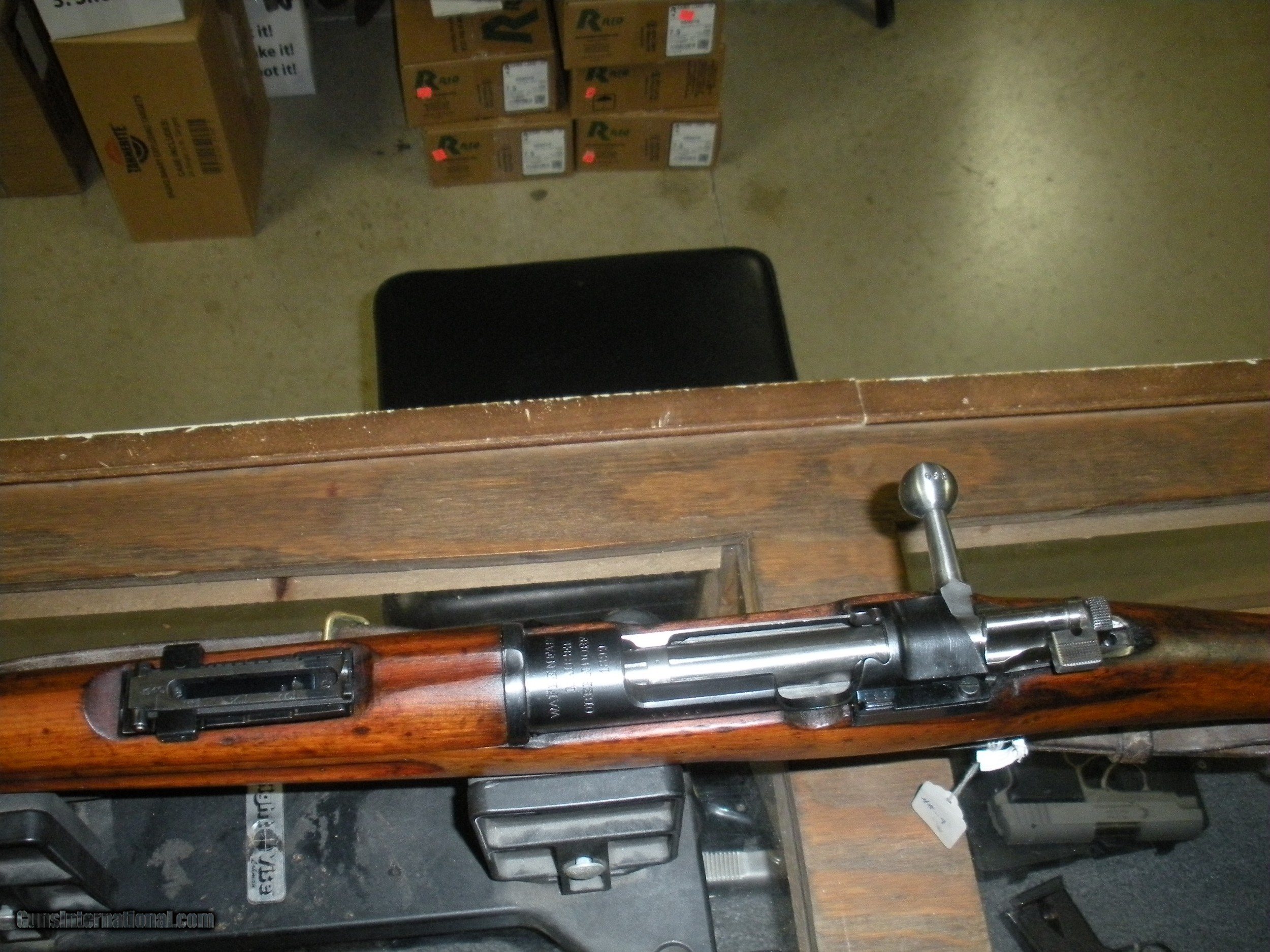 Description: Rifle made in Germany for King Gustav of Sweden. Rifle parts match and is in near pristine condition missing the inspection disc on the right side of the butt stock. BBL is 29" long` Credit cards +3% Visa, Discover and +4% Mastercard, American Express. Call 512-868-2643 for further information. SOLD |