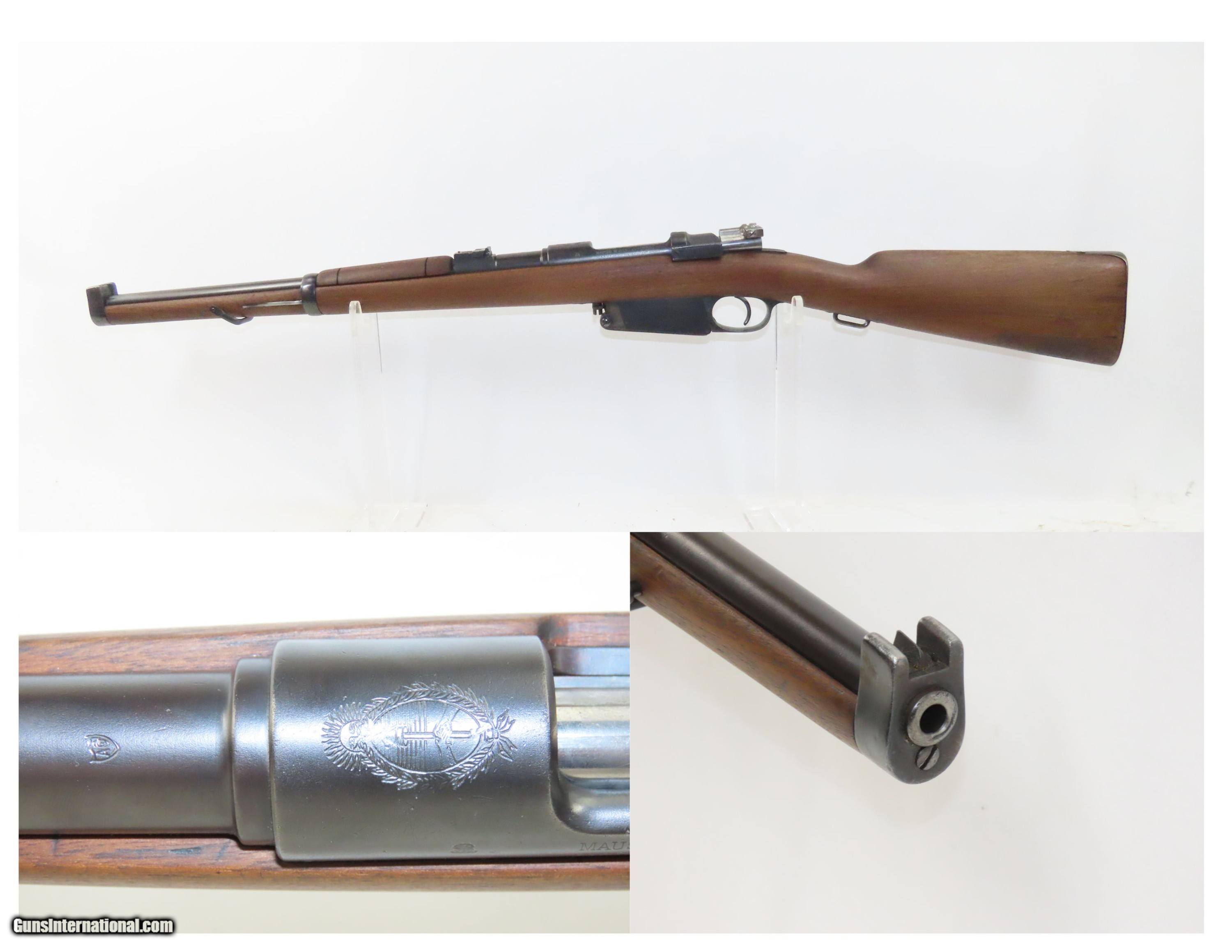 Description: Antique LUDWIG LOEWE ARGENTINE CONTRACT M1891 Bolt Action CAVALRY Carbine Late 19th Century Mauser Export to ARGENTINA Here we present an antique Ludwig Loewe Argentine Contract Model 1891 Bolt Action Mauser Carbine made circa 1893 in Berlin, Germany. This example is one of the many “export” rifles made for foreign governments, all based on the Mauser Model 1889. After the Mauser brothers finished work on the Model 71/84 for Germany in 1880, the design team focused their efforts on creating a small caliber repeating rifle that used smokeless powder. Because of setbacks brought on by Wilhelm Mauser's death, they failed to have the design completed by 1882, and the German Rifle Test Commission, or the Gewehr-Prüfungskommission was formed. The commission preferred to create their own design, which was what would become the Gewehr 1888, often called the "Commission Rifle". In 1886, the Argentine Small Arms Commission contacted Mauser to replace their own Model 1871s. Since they wished to keep retraining of their armed forces to a minimum, they went for the Mauser Model 1891. As with other early Mausers, most such arms were made by the Ludwig Loewe company, who in 1896 joined with other manufactures to form Deutsche Waffen und Munitionsfabriken, more commonly referred to as DWM. One of the defining features of the Argentine Mauser was its thin sheet steel jacket surrounding the barrel. This was a rather unusual element not common to any other Mauser mark of note. The jacket was instituted as a feature intended to maintain the effectiveness of the barrel and the solid wooden body over time, otherwise lengthening its service life and long-term accuracy when exposed to excessive firing and battlefield abuse. The overall condition is good. Robust action. Bright, nicely rifled bore. Very good stock. Remains solid overall with a stable toe repair. Markings are legible. Numbers match. This example is import marked “JLD ENT FARM CT”. Own the original! This is a legitimate antique and not a reproduction. Barrel is 18 inches. Caliber: 7.65mm Mauser Overall condition as seen in photos. Very Fast. Very Safe. FREE SHIPPING WORLDWIDE. Delivered directly to your door by express mail! Guaranteed AUTHENTIC & Includes CERTIFICATE OF AUTHENTICITY. ancestryguns $1250 #234145 SOLD Antique: Yes |