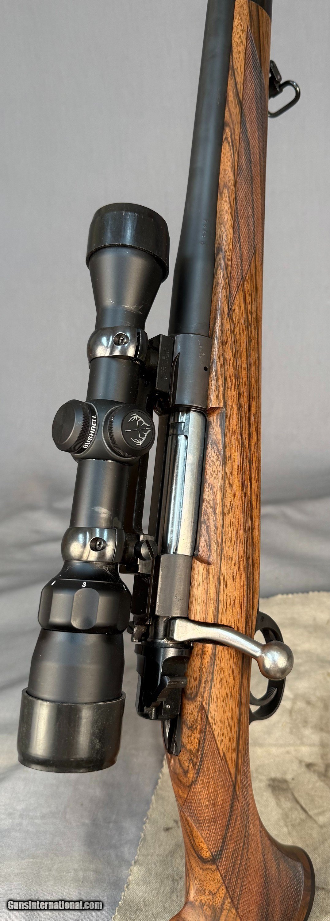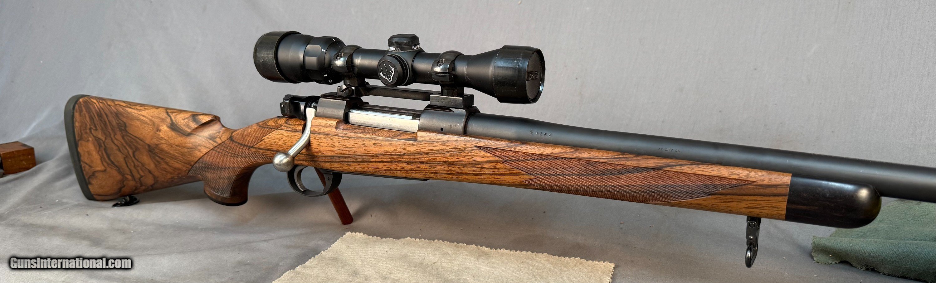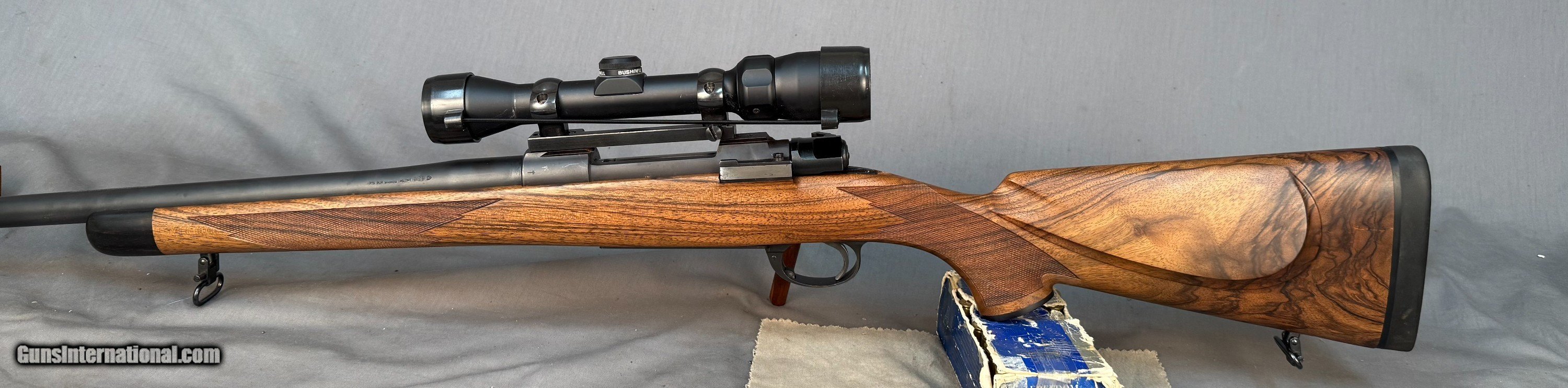 Description: Gun is in almost Perfect Condition, Super Nice Rifle w Great Wood Details Below. -Belgian Mauser 98 rifle - # 1264 - Barrled Action by Armor International S.A.- Liage-proof made about 2000's -.375 H&H Magnum caliber -24" barrel -LOP: 14in -Double Screw Sling Studs -3 position Model 70 type saftey -Adjustable Trigger -Bore Like Brand NEW -Straddle Hinged Floor-plate - Custom Turkish walnut deluxe stock by Fred Wenig Shop -Wrap around point checkering by Daryl Smith w Oil Finish - Ebony forend + grip cap, shadowline cheekpiece with decelerator buttpad - Bushnell Trophy Scope 1.75-4x -1 piece Redfield base & Rings SOLD Rifle Caliber: .375 H&H Magnum Manufacturer: mauser Model: 98 |