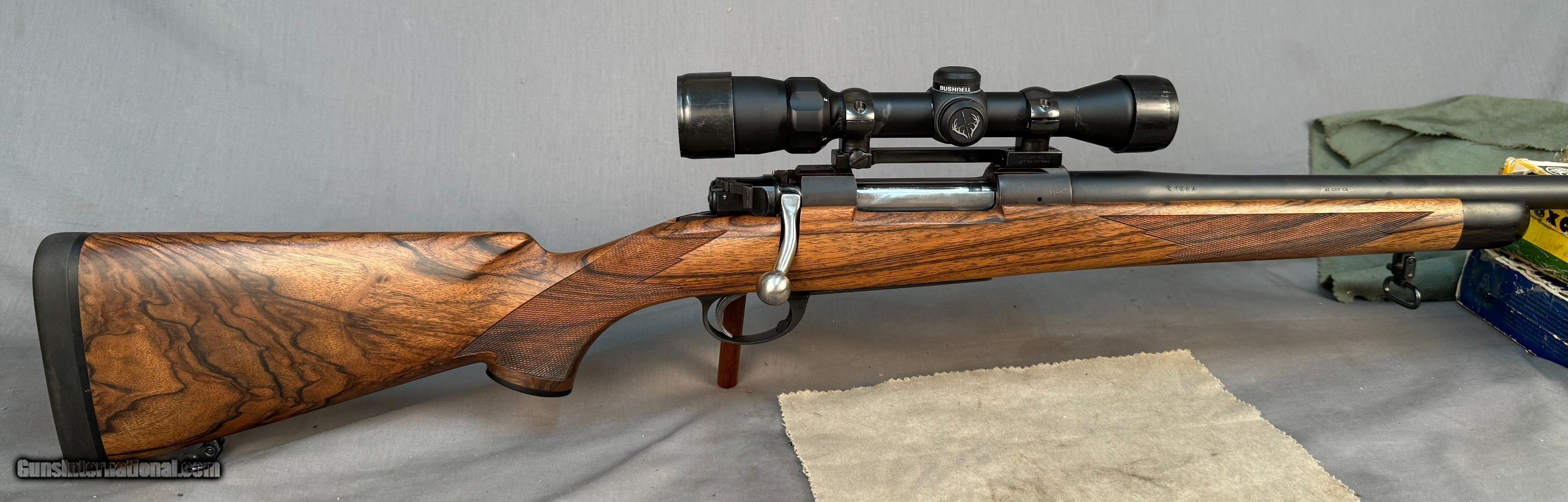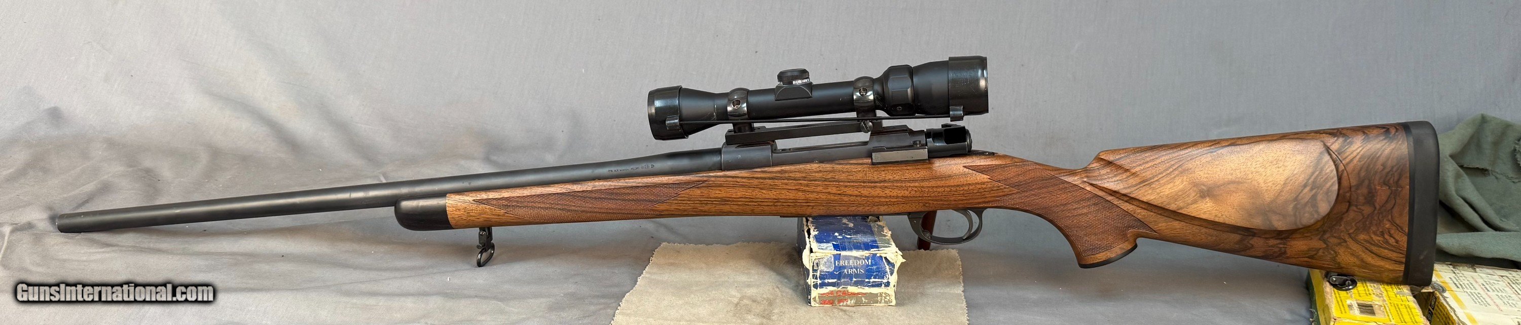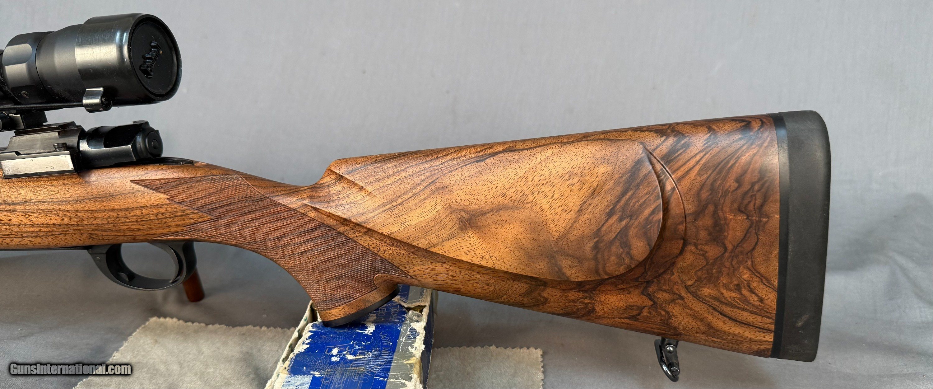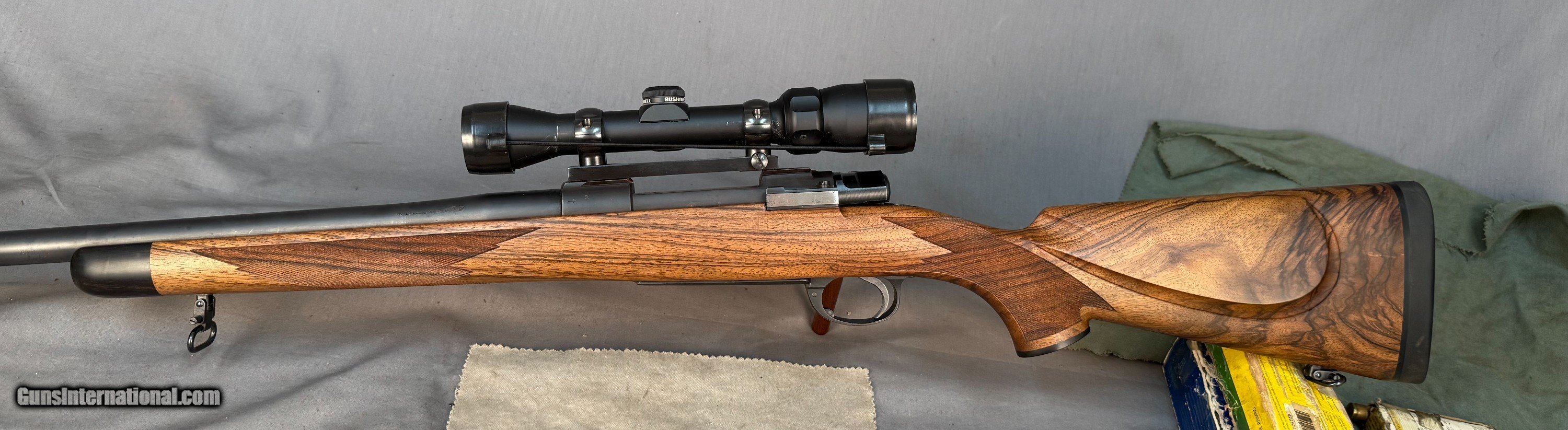 Description: Gun is in almost Perfect Condition, Super Nice Rifle w Great Wood Details Below. -Belgian Mauser 98 rifle - # 1264 - Barrled Action by Armor International S.A.- Liage-proof made about 2000's -.375 H&H Magnum caliber -24" barrel -LOP: 14in -Double Screw Sling Studs -3 position Model 70 type saftey -Adjustable Trigger -Bore Like Brand NEW -Straddle Hinged Floor-plate - Custom Turkish walnut deluxe stock by Fred Wenig Shop -Wrap around point checkering by Daryl Smith w Oil Finish - Ebony forend + grip cap, shadowline cheekpiece with decelerator buttpad - Bushnell Trophy Scope 1.75-4x -1 piece Redfield base & Rings SOLD Rifle Caliber: .375 H&H Magnum Manufacturer: mauser Model: 98 |