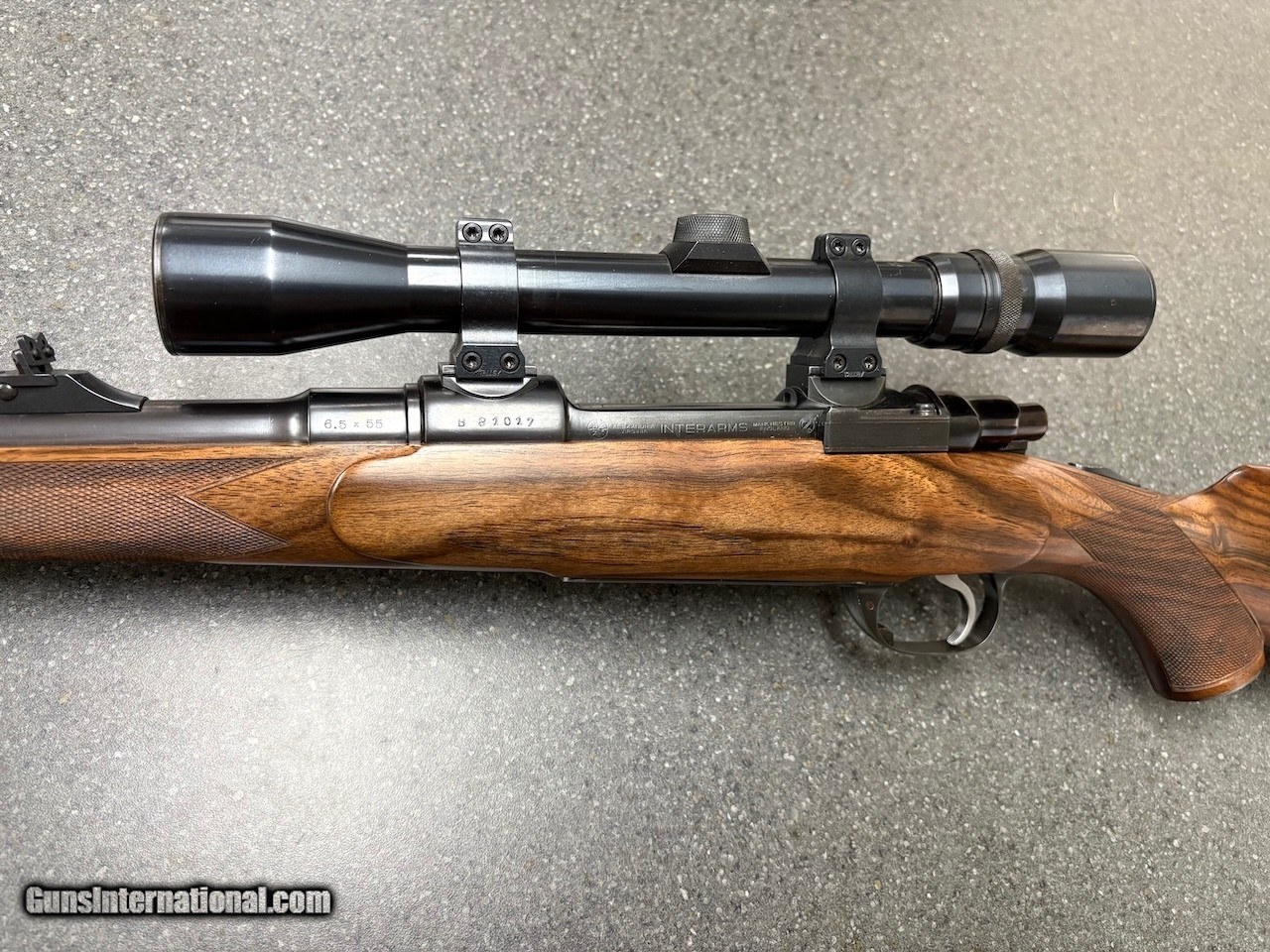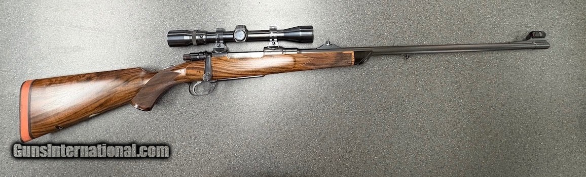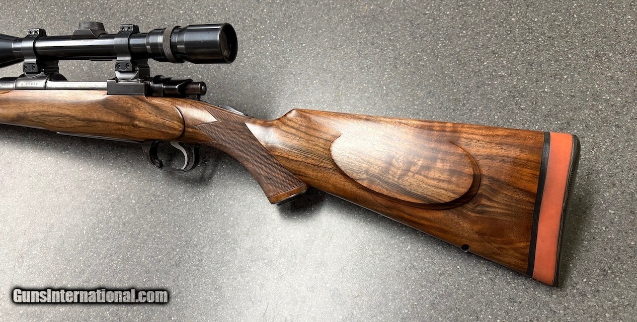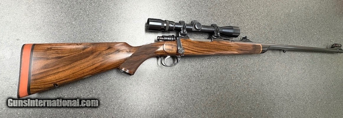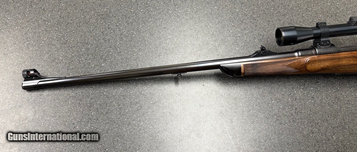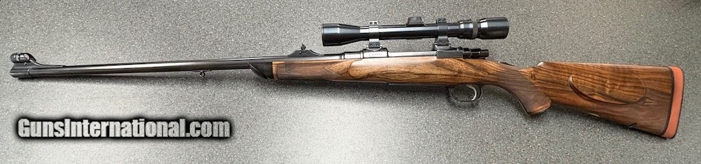 Description: A beautiful custom built Mauser rifle by Brian Dudley (BMD Gunstocks). The rifle was built with a heavy influence from Daniel Fraser Mausers. The action is an Interarms Mark X. It is chambered in 6.5x55 swede and the barrel is custom contoured. The double square bridges were custom made and machined to accept talley QD rings. The action has a lenghened tang with a thumb safety attached to a timney trigger. The bottom metal is stradle style from Dumoulin. The bolt handle was custom scratch made in the Fraser style and the knob checkered/engraved by Geoffroy Gournet. The iron sights on the barrels are NECG and the front sight is fiber optic red. The scope mounted on the rifle is a vintage steel tube weaver 2.5-7x. The rifle is stocked in the fraser style with nicely figured curcassian walnut. The henry style forend tip is horn. The butt treatment is a orange silvers that is capped with a horn buttplate. The metal finish is Rust and Nitre blue. The stock is oil finished and shows a few marks from use and handling. Any rifle built on an interarms action is going to have some mass to it. This one with the scope on it comes in at 10 lbs. Shipping is included to your FFL Rifle Caliber: 6.5x55mm Swedish Manufacturer: Interarms Model: Mark X Serial Number: B81017 Barrel Length: 24 Condition: VG Metal Condition: VG Wood Condition: VG Action: Bolt Triggers: Timney Stock: Walnut Fore End: Horn Butt Pad: Rubber/horn LOP: 14-1/8 Weight: 10 lbs. Sights: Yes Item Location: Rochester, NY Optic: Weaver 2.5-7x Price: $6,000.00 Contact Seller |