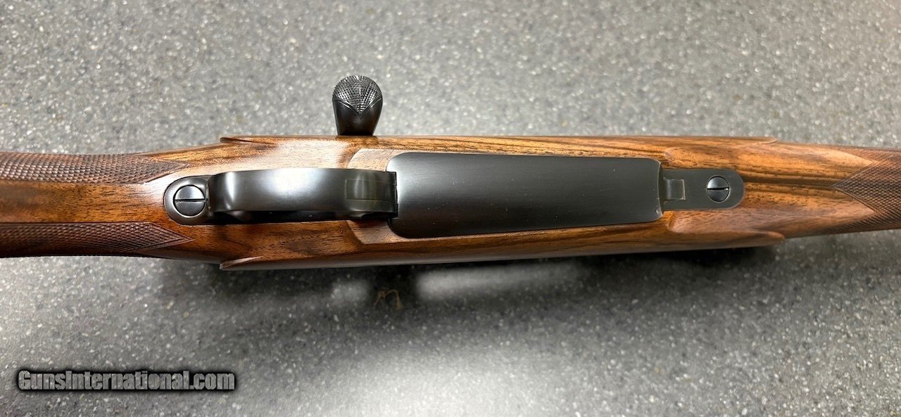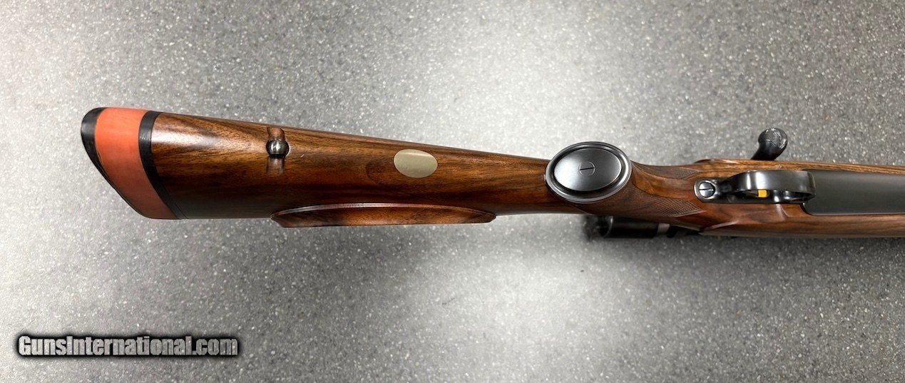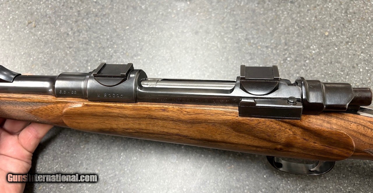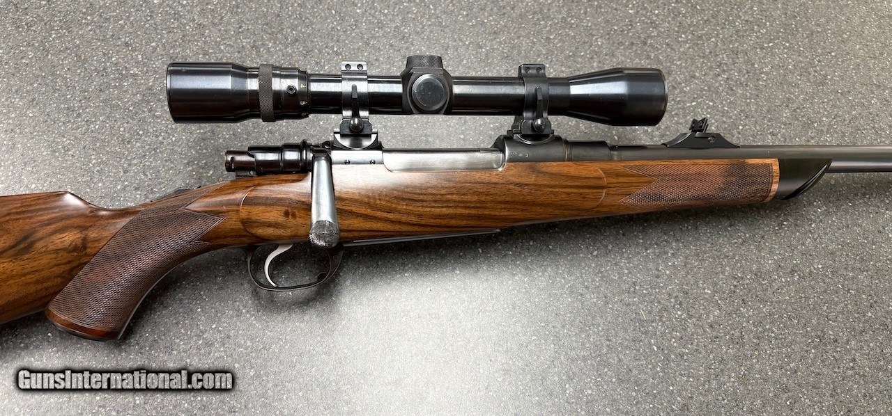 Description: A beautiful custom built Mauser rifle by Brian Dudley (BMD Gunstocks). The rifle was built with a heavy influence from Daniel Fraser Mausers. The action is an Interarms Mark X. It is chambered in 6.5x55 swede and the barrel is custom contoured. The double square bridges were custom made and machined to accept talley QD rings. The action has a lenghened tang with a thumb safety attached to a timney trigger. The bottom metal is stradle style from Dumoulin. The bolt handle was custom scratch made in the Fraser style and the knob checkered/engraved by Geoffroy Gournet. The iron sights on the barrels are NECG and the front sight is fiber optic red. The scope mounted on the rifle is a vintage steel tube weaver 2.5-7x. The rifle is stocked in the fraser style with nicely figured curcassian walnut. The henry style forend tip is horn. The butt treatment is a orange silvers that is capped with a horn buttplate. The metal finish is Rust and Nitre blue. The stock is oil finished and shows a few marks from use and handling. Any rifle built on an interarms action is going to have some mass to it. This one with the scope on it comes in at 10 lbs. Shipping is included to your FFL Rifle Caliber: 6.5x55mm Swedish Manufacturer: Interarms Model: Mark X Serial Number: B81017 Barrel Length: 24 Condition: VG Metal Condition: VG Wood Condition: VG Action: Bolt Triggers: Timney Stock: Walnut Fore End: Horn Butt Pad: Rubber/horn LOP: 14-1/8 Weight: 10 lbs. Sights: Yes Item Location: Rochester, NY Optic: Weaver 2.5-7x Price: $6,000.00 Contact Seller |