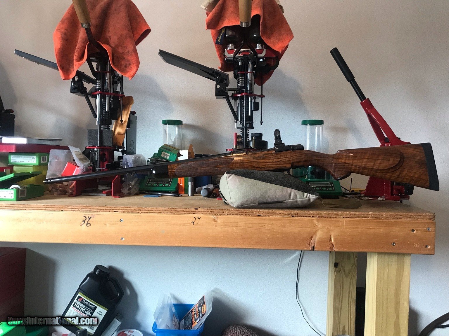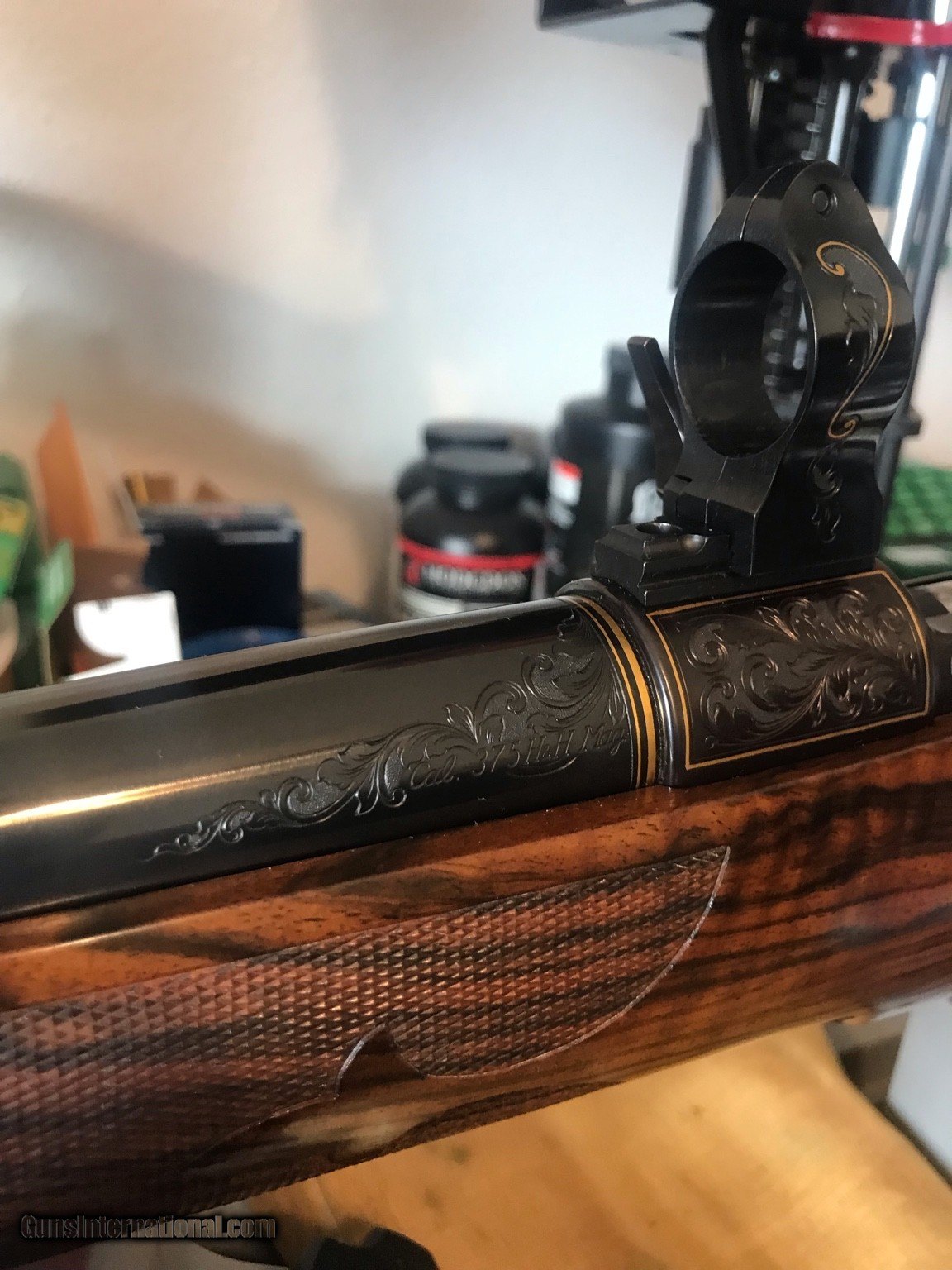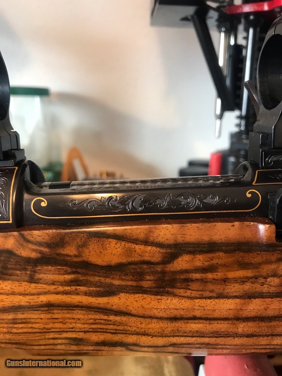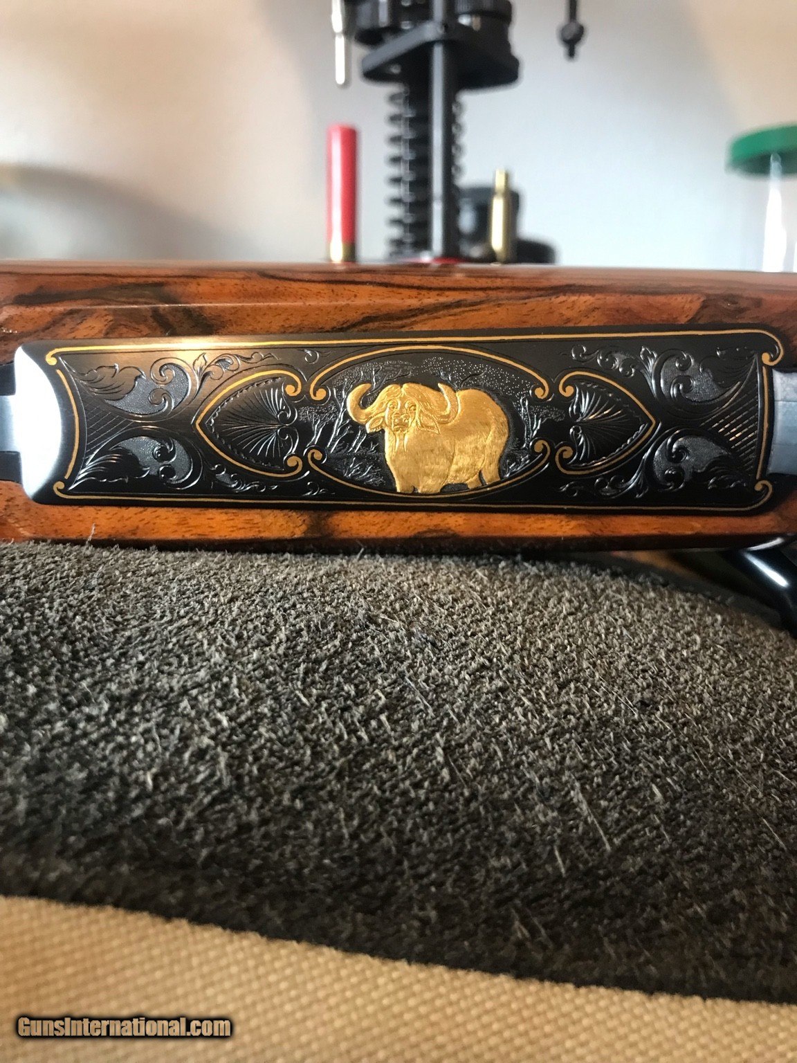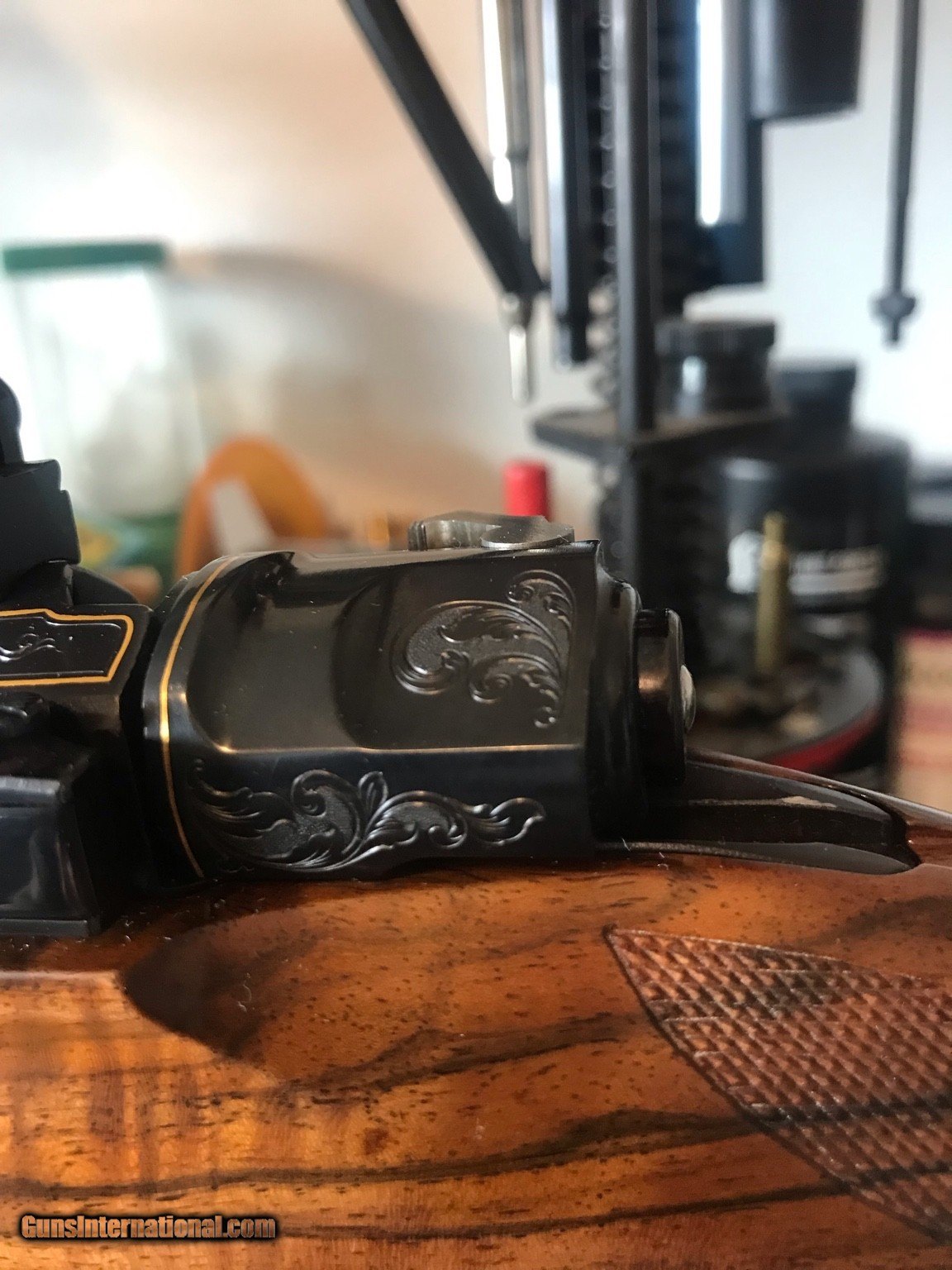 Description: Custom built incredibly engraved Mauser in 375 H&H. Must see pictures to believe. Grade 6 wood. 23 inch barrel 13 3/4 LOP. Sweet shooting soft recoiling rifle. 1 inch scope rings. $8,250 to have built. $5,200 shipped within US SOLD Rifle Caliber: .375 H&H Magnum |