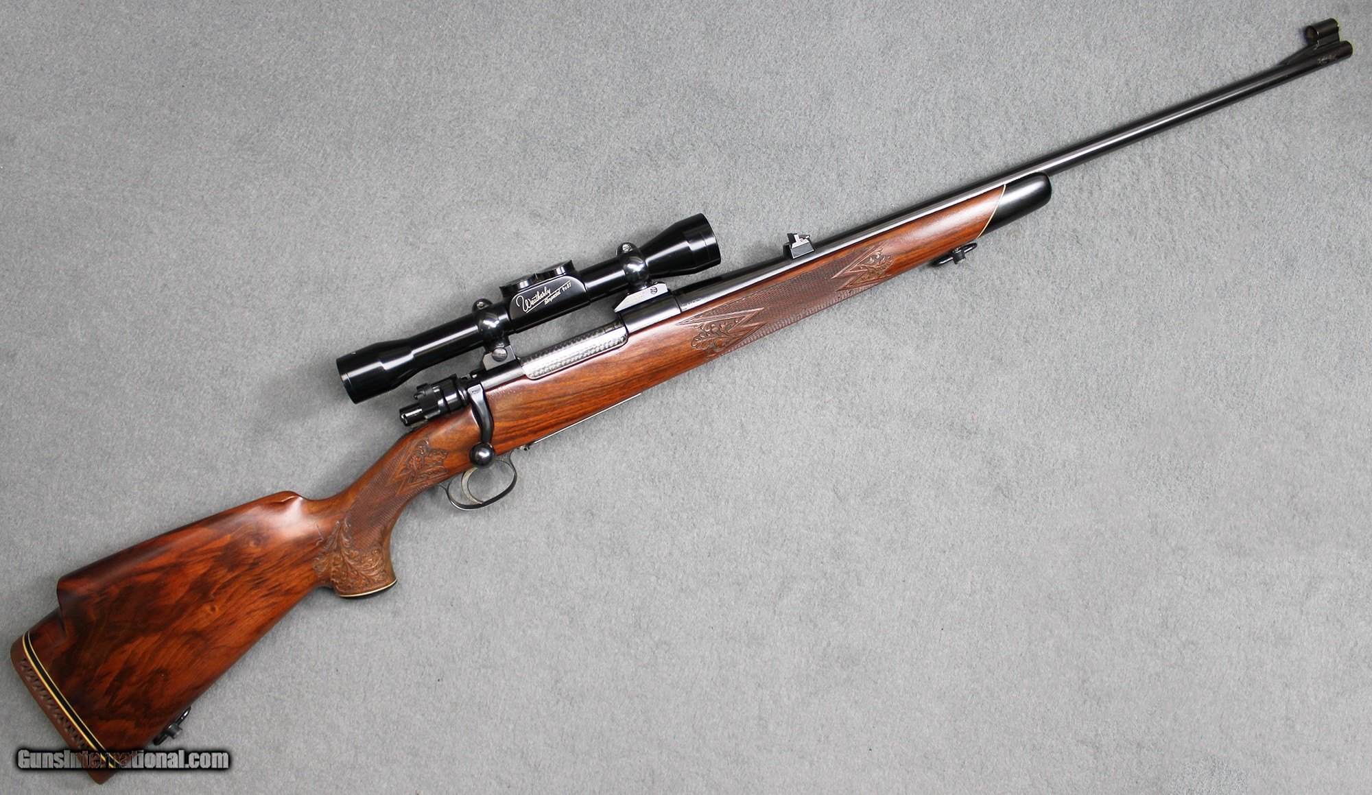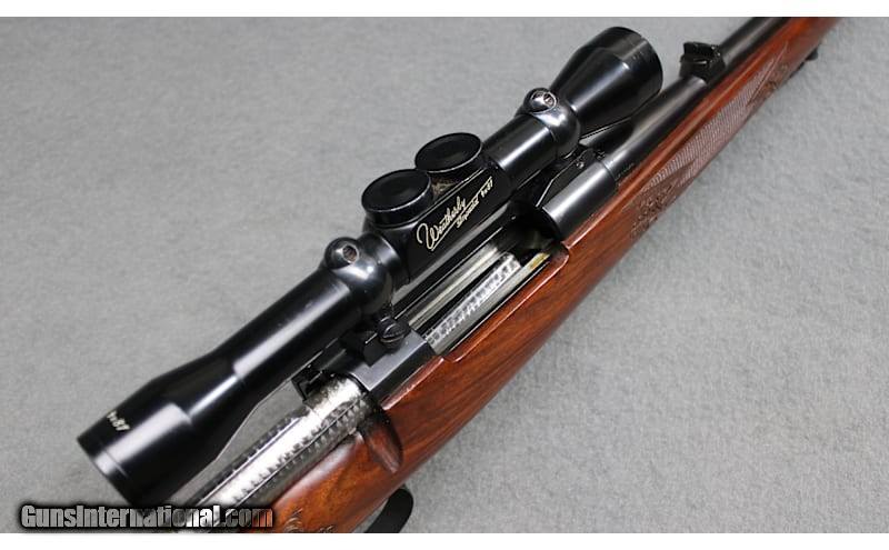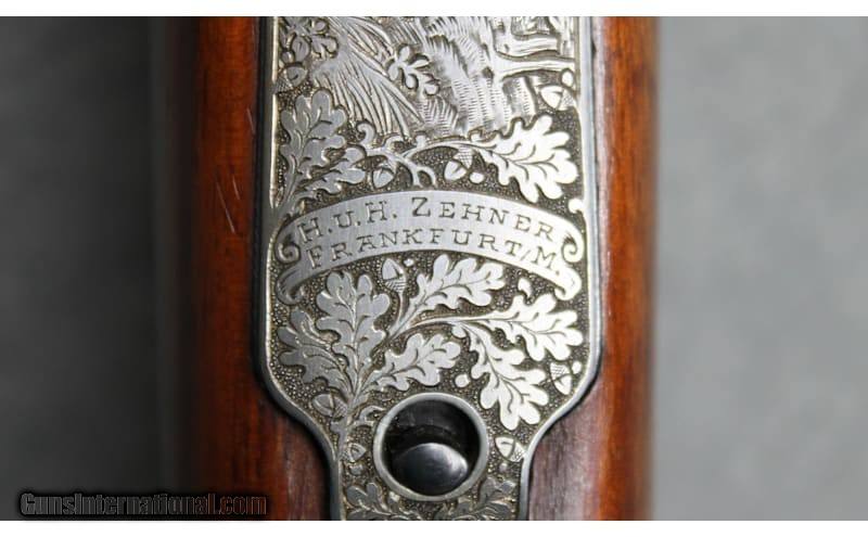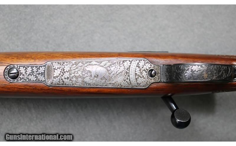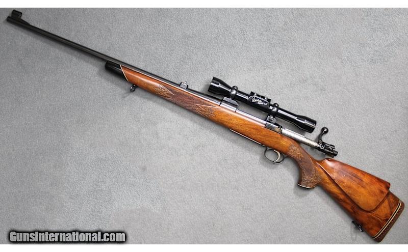 Description: H & H Zehner Custom Mauser 98 bolt action rifle chambered in .300 Winchester Magnum. Built post-1963 on a Mauser 98 action with a Sako barrel. Engraved floorplate with oak leaf engraving and a silver inlaid bear signed "H. U. H. ZEHNER/FRANKFURT/M". Comes with a mounted Weatherby Imperial 4x87 riflescope. .300 Winchester Magnum Barrels: 24 inch Item Location: Fort Worth, TX Price: $2,499.99 Contact Seller |