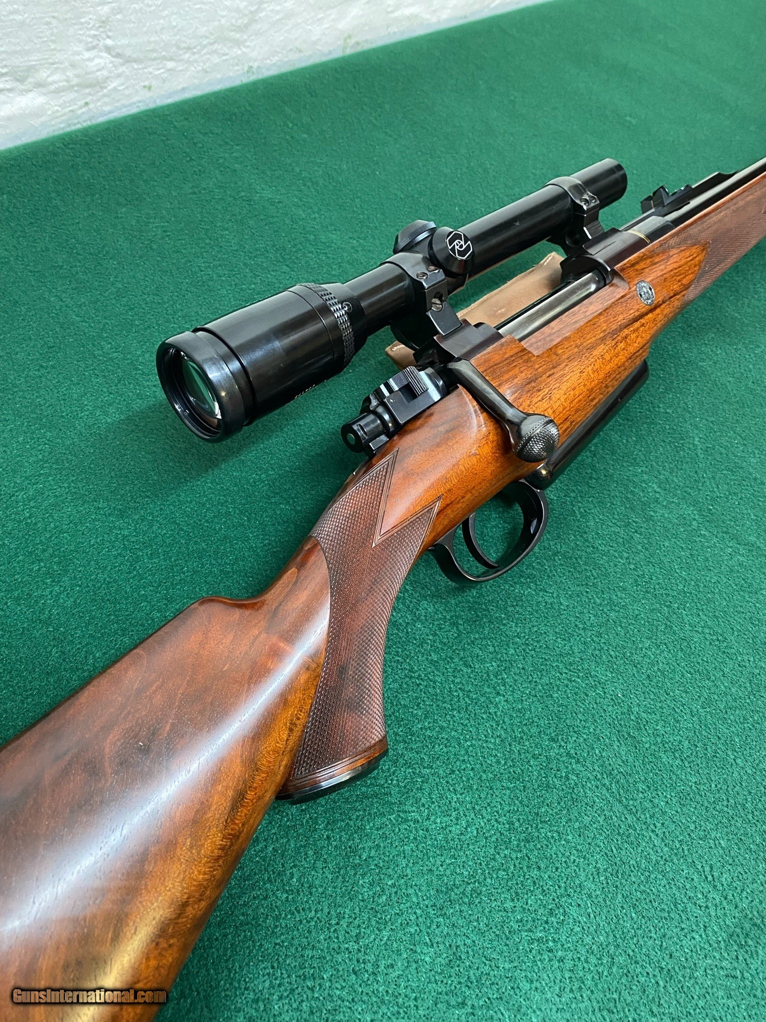Description: Caliber 416 Rigby Shaft length 36.5 cm Barrel length 62 cm Total length 116 cm Mauser magnum system with Double Square Bridge Swiveling assembly Magazine 4+1 Quarter running rail Rear sight with express sights with 2 flaps (100/200/300 meters) Weapons acquisition and shipment to non-EU countries If you want to purchase a weapon from abroad, you will receive an order confirmation in the form of a customer order, specifying the number of weapons and the international bank account from us via email. This comes via PDF file, please check your spam filter! With immediate payment of the purchase price, the product is firmly reserved for you. Should arrive within 10 business days no payment is the weapon if necessary again released for sale. You are then not entitled to fulfil your order. Because the arms delivery to these countries may be difficult and expensive is together we work with the company Krico and Falko (the contact details of the company are you we on request send.), but must the buyer this company to entrust with the shipping and settle. The company Krico and Falko will inform them the shipping costs. After payment of the weapon, the weapon is on your behalf to the Company Krico & Falko Kriegeskorte Handels GmbH sent, they will organise shipping for you. The organise must be instructed by you, we deliver only the gun on your behalf. The further organise of shipping via Krico & Falko. SOLD Manufacturer: Hartmann and Weiss Model: Mauser Engraving: Heinz Funk Case: no |