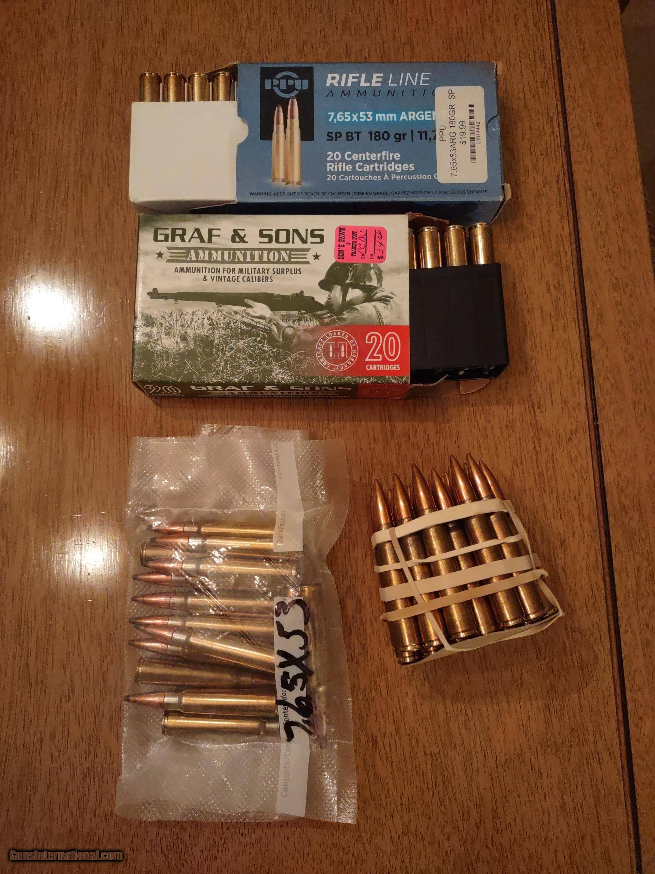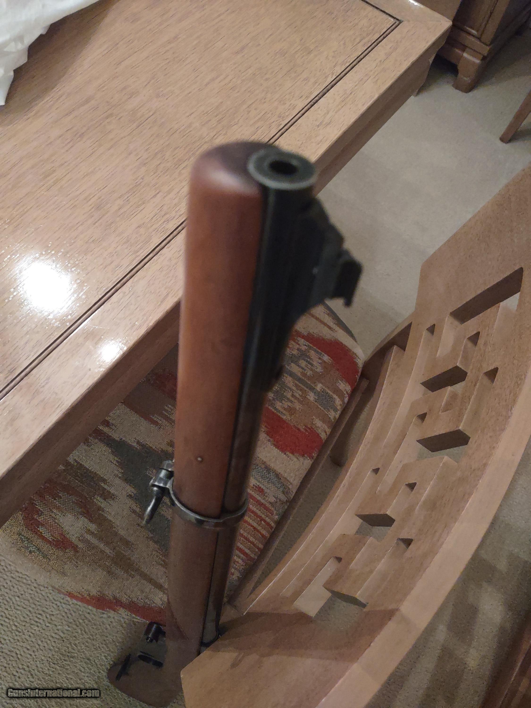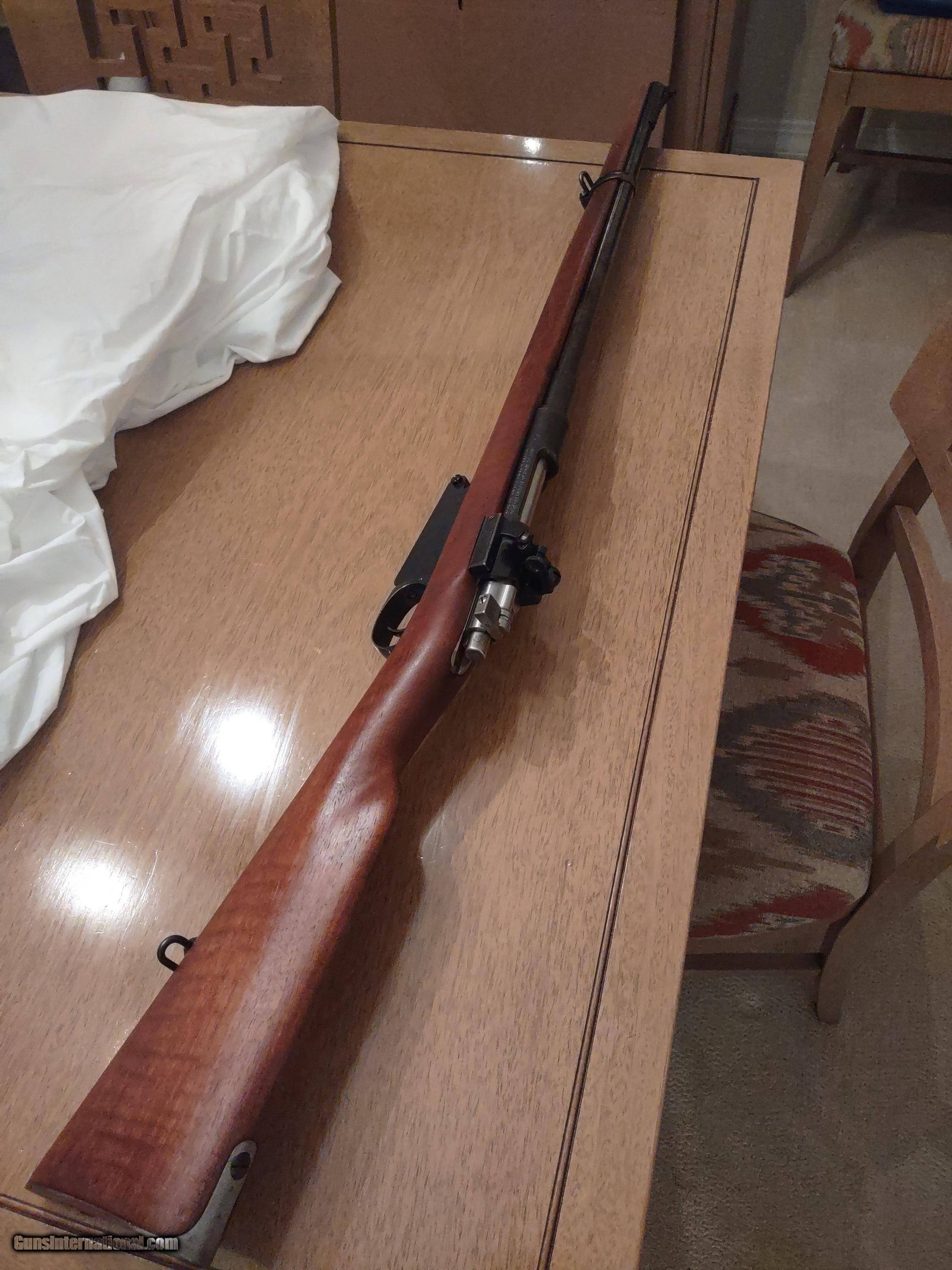 Description: ARGENTINE MODEL 1891 MAUSER in 7.65X53MM caliber made by Ludwig Loewe in Berlin, Germany, 5 matching serial numbers (B3537) on bolt, receiver, barrel, magazine and walnut stock. This rifle is with an extra nice checkered walnut stock and 98% bluing, original 1 1/4" sling swivels, factory butt plate and overall length of 41". The rear sight is a Lyman adjustable peep. The barrel with glossy bore is 21" that has been shortened for sport shooting...a very accurate, very reliable, very high quality bolt action rifle. This rifle comes with a soft zipper carry case and 4 boxes (80 rounds) of ammo pictured here. The price is $895 including UPS shipping to you OR your FFL. No FFL is required on this purchase/sale. Call or text me at 318-780-4242 if you are interested. SOLD Curio/Relic: Yes Manufacturer: Ludwig Loewe Model: 1891 Serial Number: B3537 Barrel Length: 21 Bore: bright and glossy Chambers: flawless Ejectors: Bolt action Condition: Excellent Metal Condition: Excellent Wood Condition: Excellent Bore Condition: Perfect, glossy Barrels: Single Barrel Type: rifle Action: Bolt Triggers: Single Stock: Checkered walnut Butt Pad: Factory original LOP: 13 3/4 Finish: Blu Sights: Lyman peep Manufacture Date: 1891 Engraving: None Extras: 80 rounds ammo Case: Quality soft zipper carry case Item Location: Shreveport, Louisiana |