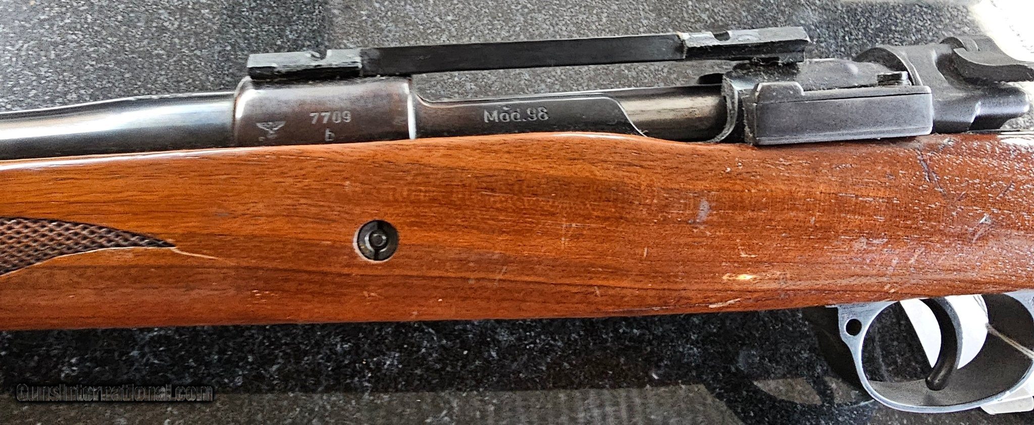 Description: Guns Listing ID: 555615 For Sale – Mauser Model 98 Rifle (.30-06) with German Markings Up for sale is a Mauser Model 98 bolt-action rifle chambered in .30-06 Springfield, retaining original German markings that add significant collector appeal. The Mauser 98 is one of the most respected bolt-action rifle designs ever produced, prized for its robust action, smooth cycling, and historical significance. This example shows honest wear from age and use, including a large crack on the bottom of the stock. While the action functions, the stock damage affects structural integrity and should be repaired before regular shooting. Specifications: Make / Model: Mauser Model 98 Caliber: .30-06 Springfield Action: Bolt-action, controlled round feed Barrel Length: Approx. 23–24" (standard military length) Overall Length: Approx. 43–44" Weight: ~8.5–9 lbs (unloaded) Markings: Original German proof and acceptance marks on receiver and components Stock: Hardwood military-style stock – large crack on underside Sights: Military ladder-style rear sight, hooded front post Safety: Three-position flag safety Condition: Fair – functional action, but cosmetic wear and significant stock damage present Collector Notes: Authentic German markings make it historically desirable Based on the legendary Mauser 98 action, one of the most copied and enduring rifle actions in history Ideal for restoration or as a display piece for collectors of WWII-era and Mauser firearms ?? Priced with condition in mind – an affordable way to own a German-marked Mauser with a story to tell. SOLD Manufacturer: MAUSER Model: 98 Caliber Info: .30-06 SPRG Condition: Used - Non-Certified Barrels: 25 BARREL Action: BOLT ACTION Finish: black /w wood stock |