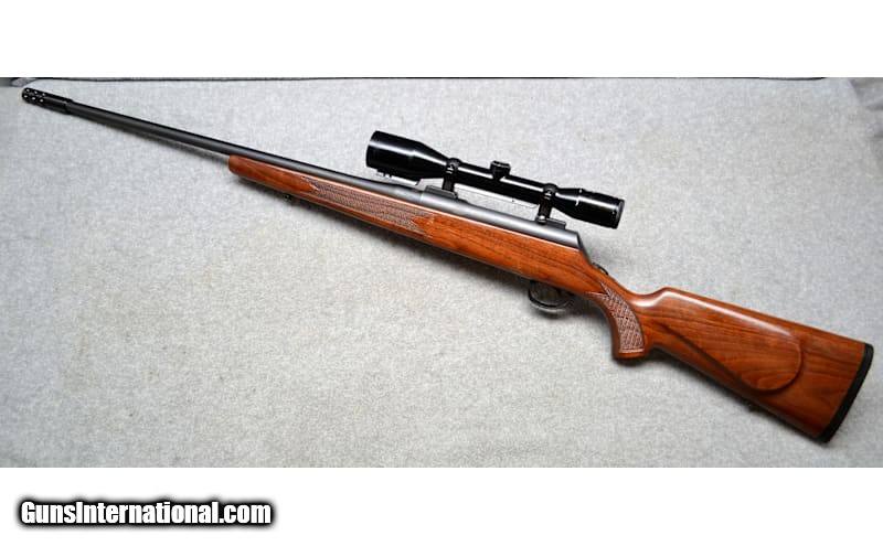 Description: This used Mauser M1996,also known as Mauser M96 or Mauser M96 S, is a straight-pull rifle which was introduced by the German firearm's manufacturer Mauser in 1996. The rifle had a blind magazine which was loaded from the top. The factory trigger is not adjustable. Due to the construction of the trigger geometry it has proven difficult to lighten the trigger pull without experiencing problems with light primer strikes.The locking lugs are angled slightly to aid with primary extraction.This was imported from England recently. Call Cabela's today to add this to your collection at 219-845-9040 .243 Winchester SOLD Chambers: .243 Winchester Metal Condition: Very Good Wood Condition: Very Good Bore Condition: Very Good Barrels: 22 Triggers: Factory Stock Dimensions: LOP 13.1 Butt Pad: Rubber Weight: 6 lbs Sights: Carl Zeiss DIATAL-D 6X42 Item Location: Hammond, IN |