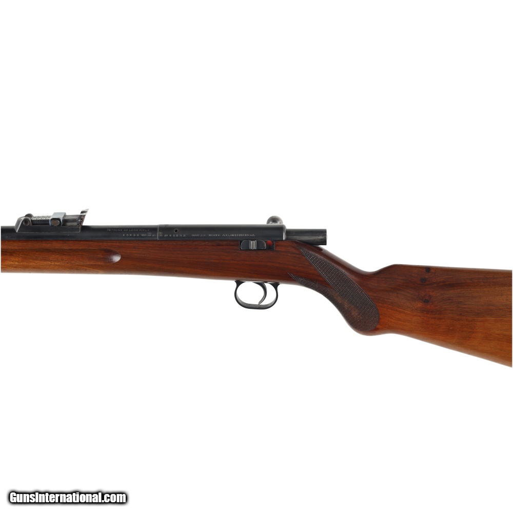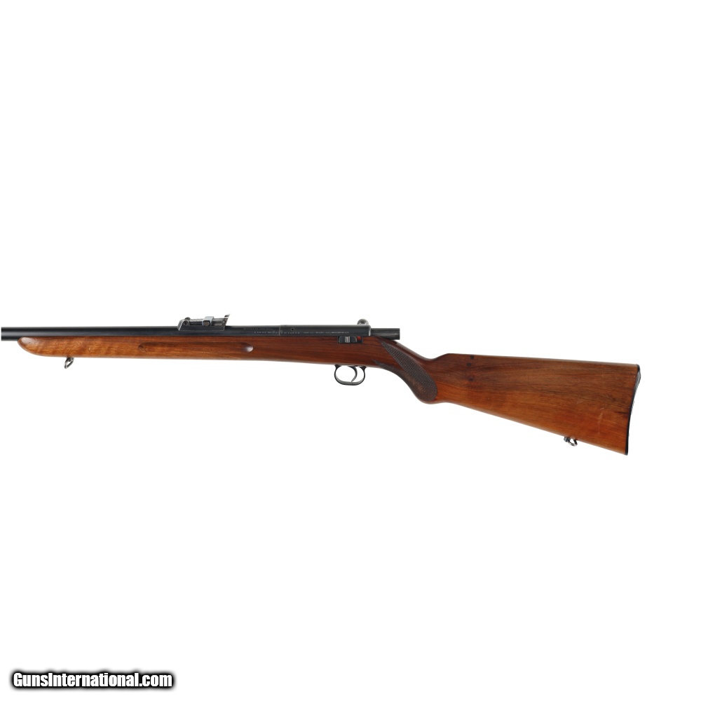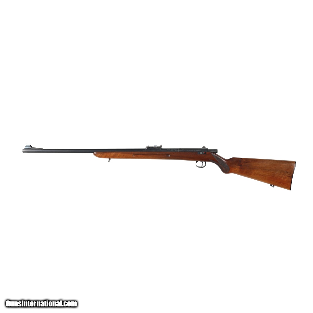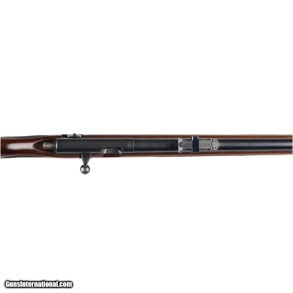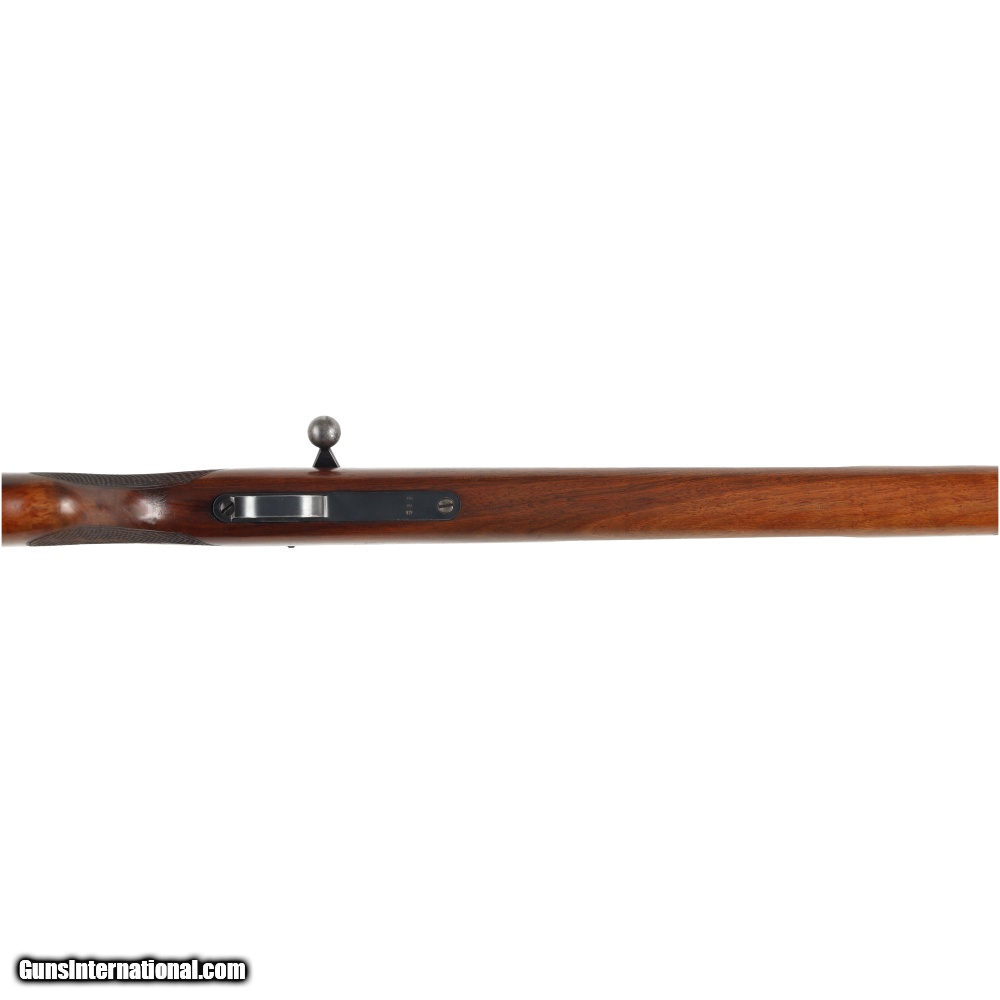 Description: This Post war Mauser Patrone 22 Long Rifle is in very good condition, with only moderate wear befitting its age. The sights are similar to those used on the Geweher 98 rifle allowing it to be used as a low cost training rifle. The bore on this rifle is of particular interest, as it has a near mirror shine and strong rifling. Manufactured in: Germany Hand: Right Hand Action Finish: Blue Action Description: Single Shot Metal Finish: Original Barrel Length: 26 3/4" Barrel Condition: Very Good Stock Finish: Original Stock Condition: Very Good Type of Butt: Factory Plate Grip: Round Knob Semi-Pistol Grip Forend: Not Checkered Extra Barrels: No. SOLD Manufacturer: Mauser Model: Patrone Caliber Info: .22 Long Condition: Preowned Metal Condition: Very Good Action: Bolt Action Triggers: Single Fore End: Not Checkered LOP: 14 1/4 Finish: Original Weight: 6.2 lbs Extras: No. Case: NONE |