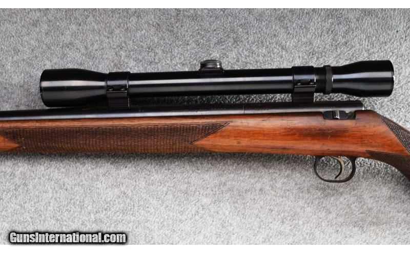 Description: This Mauser Werke Patrone in .22LR remains in good to very good overall condition. There is a fixed power scope of unknown origin attached to the top dovetail mount. The metal finish shows some wear and some spots of oxidation. The front sight hood and rear sight aperture are missing. The wood stock shows dings and scuffs from use. No box. .22 Long Rifle SOLD Metal Condition: Very Good Wood Condition: Very Good Bore Condition: Very Good Barrels: 27.5 Triggers: Factory Stock Dimensions: 14.5" LOP Fore End: Checkered Walnut Semi Pistol Grip Stock - Checkered Walnut Forend Butt Pad: Textured Black Butt Plate Weight: 8 LBS Sights: Fixed Power Scope Item Location: Wheeling |