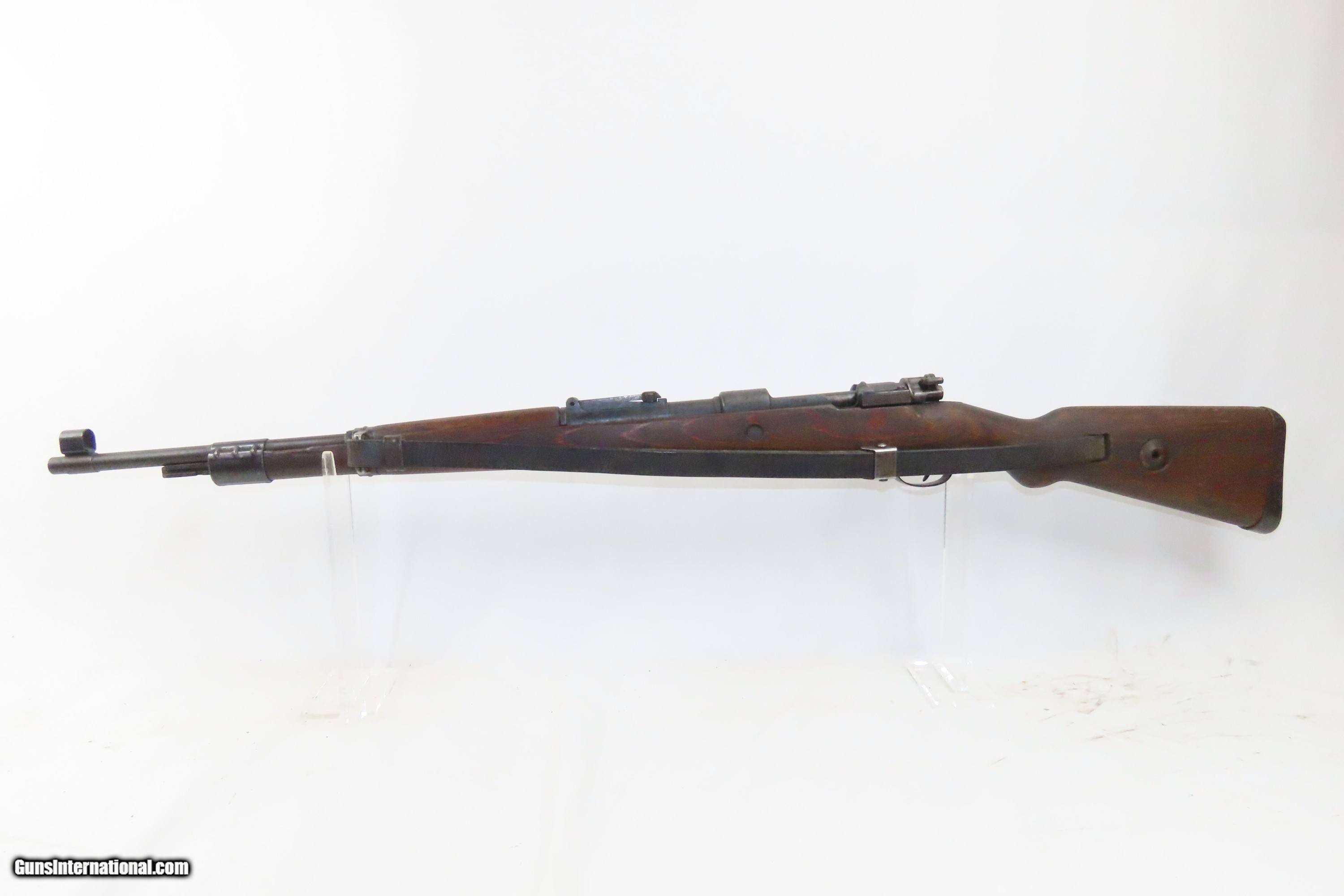 Description: RUSSIAN CAPTURE WORLD WAR II German Mauser “byf/43” Code K98 C&R Rifle WWII GERMAN MILITARY Third Reich Infantry Rifle WaA135 Here we present a C&R Third Reich German Mauser Oberndorf “byf” Code “43” Model 98 Rifle manufactured circa 1943. This is an example of a mid-World War II K98 rifle that was manufactured at the Mauser factory in Oberndorf, Germany. Oberndorf has a long history of producing military small arms. Founded in 1811 by King Frederich the First of Wuerttemberg as an arsenal to produce muskets for his army, the facility was typical of many factories that sprang up during the Industrial Revolution. Mauser acquired the plant in 1871 and was the First Mauser Plant acquired which was located in Oberndorf, Germany. In 1898 the German Army purchased a Mauser design, the Model 98, which incorporated improvements introduced in earlier models. The weapon was originally chambered for the Patrone 88 and officially entered German service as the Gew. 98 on April 5, 1898. This remains by far the most successful of the Mauser designs, helped by the onset of two world wars that demanded vast numbers of rifles. At the start of World War II, the Führer demanded that the factory produce 70,000 Mauser rifles a month, and it delivered them with the help of 5,000 forced laborers from across Europe. The overall condition is good. Armory refurbished. This example has the Russian capture mark “X” on the receiver. The action is excellent. The bore is in good condition, bright with strong rifling. The stock is solid. The numbers are mixed throughout. This firearm is classified as a Curio & Relic. Barrel is 24 inches. Caliber: 8mm Mauser (7.92x57) Overall condition as seen in photos. Very Fast. Very Safe. FREE SHIPPING. Will need to be sent to your local FFL or C&R licensee. This firearm is classified as a Curio & Relic. Guaranteed AUTHENTIC & Includes CERTIFICATE OF AUTHENTICITY. ancestryguns $1700 #233350 SOLD Curio/Relic: Yes |