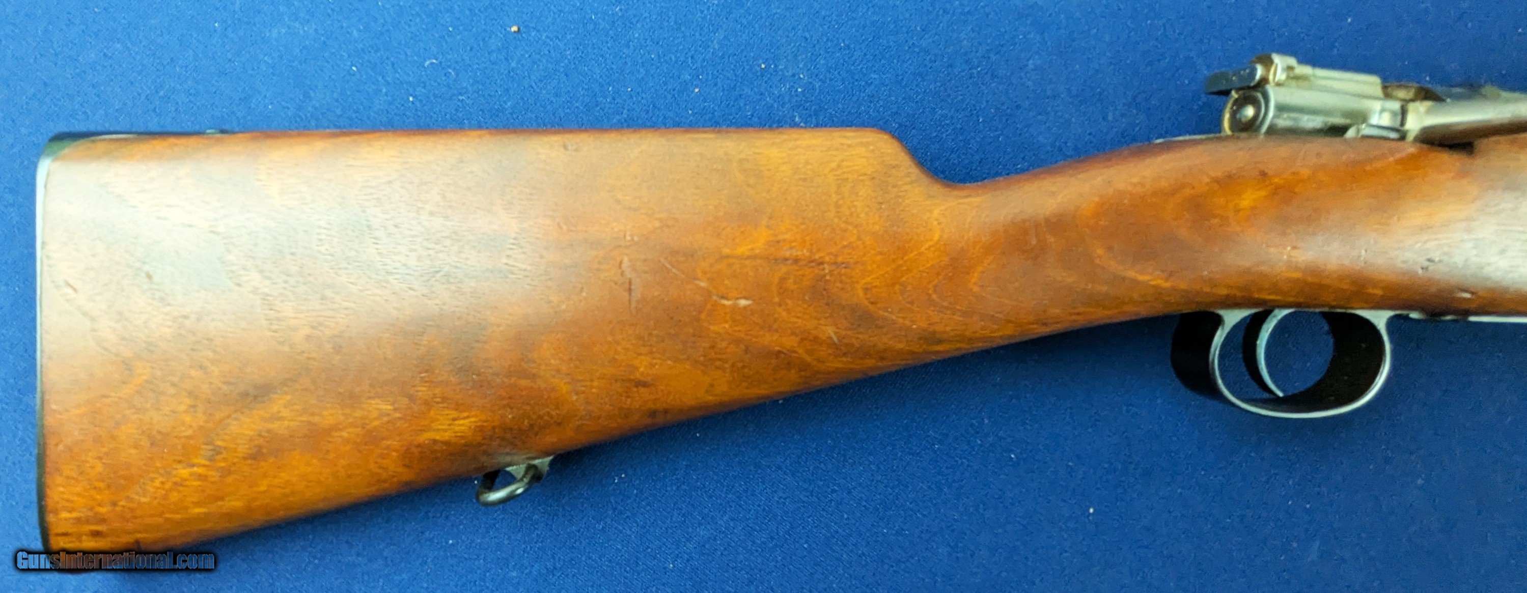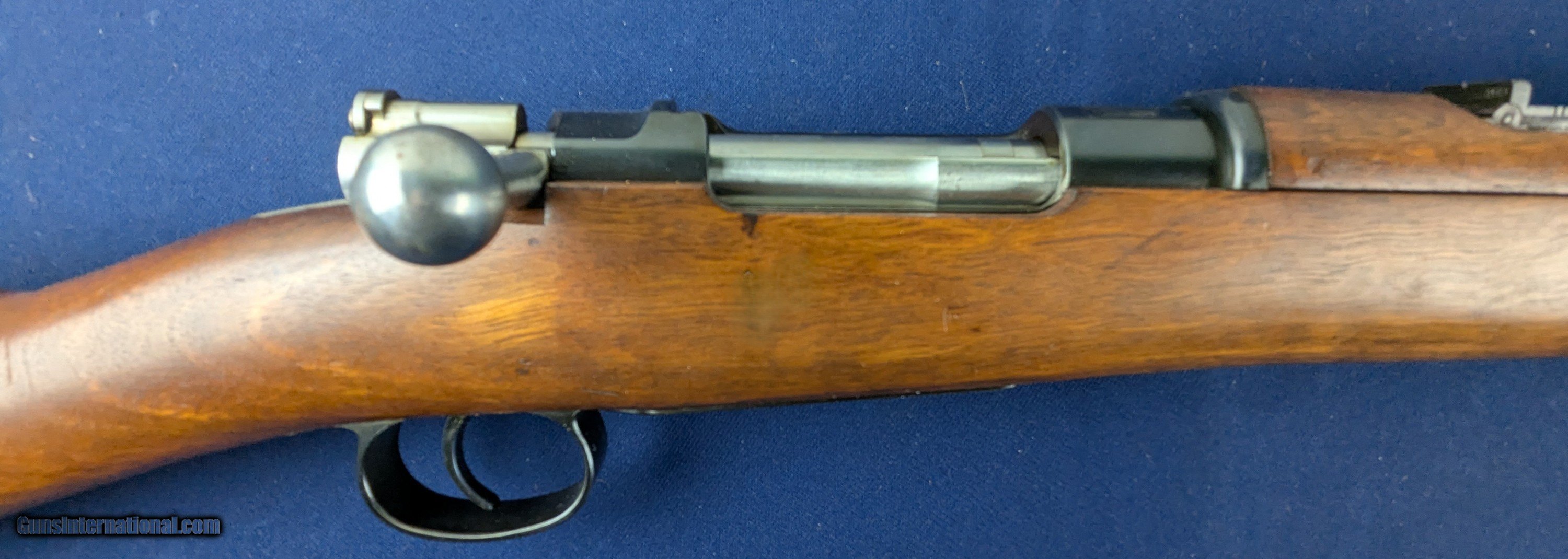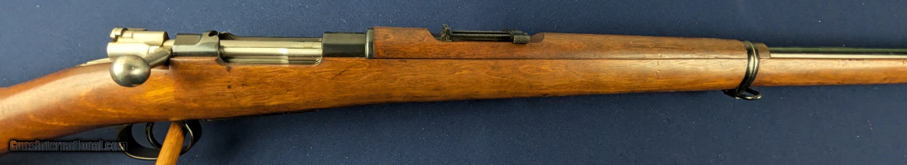 Description: Spectacular Early UNFIRED Chilean Mauser 1895 7x57 Military Rifle Offered here for sale and just acquired is this EARLY superb near mint Chilean Mauser Model 1895 military rifle in 7x57 caliber. It is all original and all matching. It retains all of its blued finish on metal with vibrant fire blue on appropriate parts. Bore is mint and it may well be UNFIRED. Cartouches in stock are perfect as well with stock marked with 1898 date. 30" barrel. The Mauser Model 1895 was a bolt-action, internal-magazine rifle chambered for the 7×57 mm Mauser cartridge. It was the first major evolution of the earlier Mauser Model 1893 — improving the magazine design, bolt action, and reliability. The “Chilean contract” rifles — often identified as “Fusil Mauser Chileno Modelo 1895” — were among those exported to foreign armies. Manufacture was handled originally by Ludwig Loewe & Company (circa 1895–1896), then by Deutsche Waffen und Munitionsfabriken (DWM) from roughly 1897–1900. The M1895 was state-of-the-art for its time: a smokeless-powder, bolt-action repeater with a 5-round internal magazine loaded by stripper clips — a big advance over single-shot black-powder rifles popular only a few years earlier. Regarding production by DWM for the Chilean military, around 1897–1900 the 1898 stock cartouche suggests it was accepted or inspected in 1898, making that a very plausible manufacturing/inspection date. Given that, it's quite likely your rifle that this is an original 1898 DWM-made Chilean contract Mauser Model 1895 — i.e. one of the earlier full-length Chilean Mausers. It has only a few very minor storage marks otherwise untouched and uncleaned. Certainly an item for the serious Mauser collector which should occupy a lofty place in any collection. Thanks for your review. Shipping for this item is $48 however final shipping amount is based upon geographical area. Handling is $18.00 for longarms only. We gladly accept money orders, bank checks and personal checks. Credit card orders (VISA AND MASTER CARD ONLY) charged 3.95% additional for use. PLEASE CALL DALIA AT 203-257-5256 TO GIVE CREDIT CARD INFORMATION. Also, please view our at hansenguns. Click on "Online Catalog" and see All OF OUR ITEMS LISTED CONSECUTIVELY on or search online on that site with the ID “lope”...... OFFERED ONLINE AND AVAILABLE IN OUR RETAIL GALLERY IN SOUTHPORT, CT. Visit us also on Facebook at ://facebook/hansenguns/?fref=ts. We also own and/or operate Hansen Cartridge Co. and the Ruger Collectors Assc.(RCA). Hansen & Hansen wishes to expedite each order received, however we ship 80-100 items weekly, therefore orders paid by money orders or bank checks are cleared for shipping 5-7 days after deposited funds show in our account. Shipping date is scheduled ONLY AFTER VERIFICATION TAKES PLACE AND FFL/C&R IS RECEIVED (IF APPLIES). This is 5-7 days after WE receive order by mail - NOT customer date mailed and postmarked and after credit card funds are posted. Credit card orders exceeding $500 must be cleared through customer’s bank before shipping. Personal checks are accepted but orders are held UP TO 3 WEEKS after deposit of funds before items released for shipping. IF you have special instructions or require overnight or expedited shipping please advise at time of ordering and we will gladly prioritize shipping FOR AN ADDITIONAL CHARGE. THIS IS OUR POLICY and we encourage s to PLEASE READ AND UNDERSTAND OUR POLICY BEFORE . We would be pleased to answer ANY questions by phone (our toll free number is 1-800-571-7337 or e-mail cwlopiaol Antique: Yes Rifle Caliber: 7x57mm Mauser Price: $1,450.00 Contact Seller |