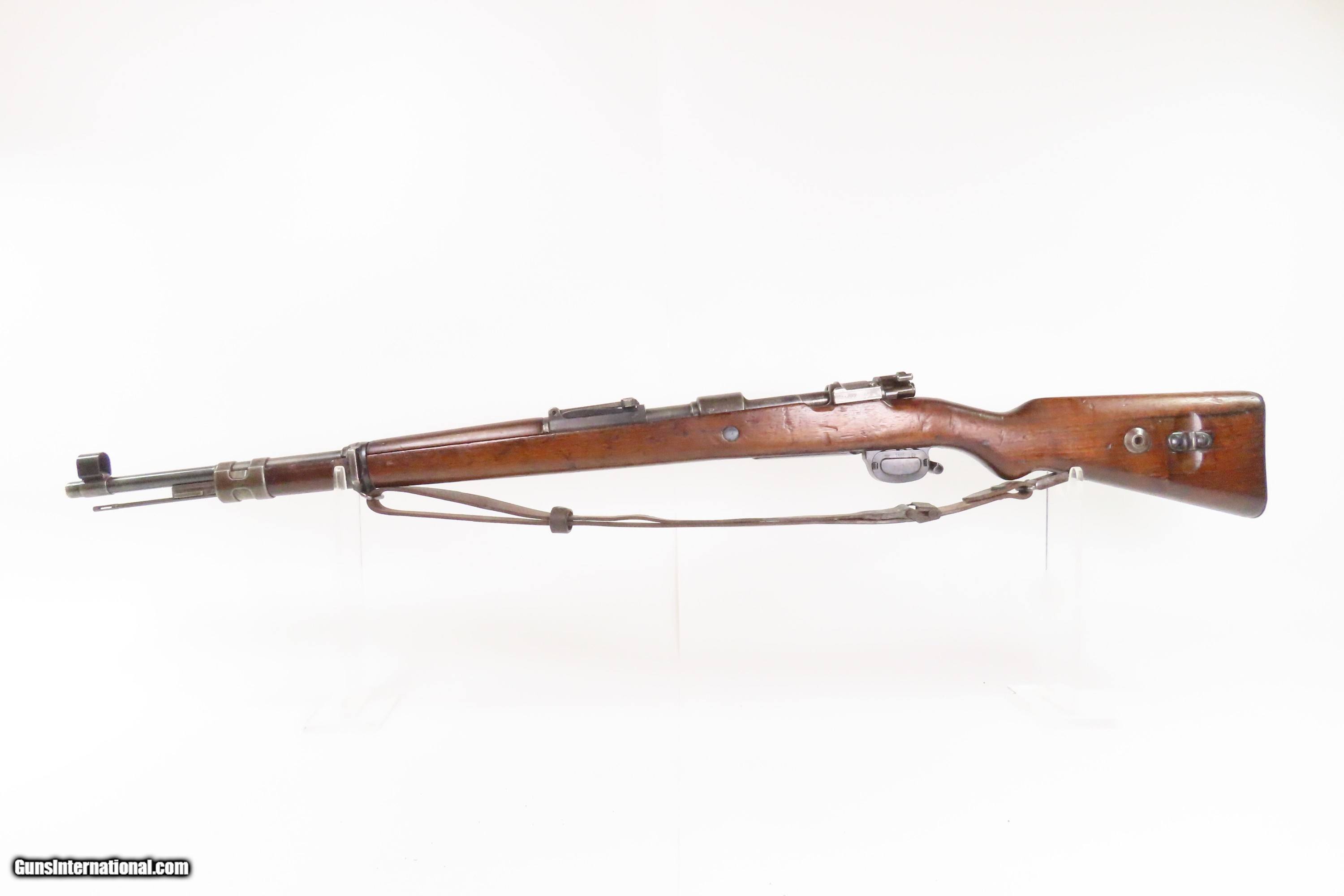 Description: WORLD WAR II German Mauser “byf”/43” Code K98 C&R Rifle GRENADE LAUNCHER WW II Germany THIRD REICH Infantry Rifle w/SLING Here we present a C&R German Mauser Oberndorf Third Reich “byf” Code “43” Model K98 Rifle manufactured circa 1943. This is an example of a mid-World War II K98 rifle that was manufactured at the Mauser factory in Oberndorf. Oberndorf has a long history of producing military small arms. Founded in 1811 by King Frederich the First of Wuerttemberg as an arsenal to produce muskets for his army, the facility was typical of many factories that sprang up during the Industrial Revolution. Mauser acquired the plant in 1871 and was the First Mauser Plant acquired which was located in Oberndorf, Germany. In 1898 the German Army purchased a Mauser design, the Model 98, which incorporated improvements introduced in earlier models. This weapon’s line was originally chambered for the Patrone 88 and officially entered German service as the Gew. 98 on April 5, 1898. This remains by far the most successful of the Mauser designs, helped by the onset of two world wars that demanded vast numbers of rifles. At the start of World War II, the Führer demanded that the factory produce 70,000 Mauser rifles a month, and it delivered them with the help of 5,000 forced laborers from across Europe. The overall condition is very good. Original finish. Excellent action. Shiny bright, rifled bore. The stock is in very good shape with less than average handling wear. Markings are sharp. Numbers are mixed throughout. Good leather sling. Own the original! This firearm is classified as a Curio & Relic. Barrel is 24 inches. Caliber: 8mm Mauser Overall condition as seen in photos. Very Fast. Very Safe. FREE SHIPPING. Will need to be sent to your local FFL or C&R licensee. This firearm is classified as a Curio & Relic. Guaranteed AUTHENTIC & Includes CERTIFICATE OF AUTHENTICITY. ancestryguns $1650 #247469 SOLD Curio/Relic: Yes |