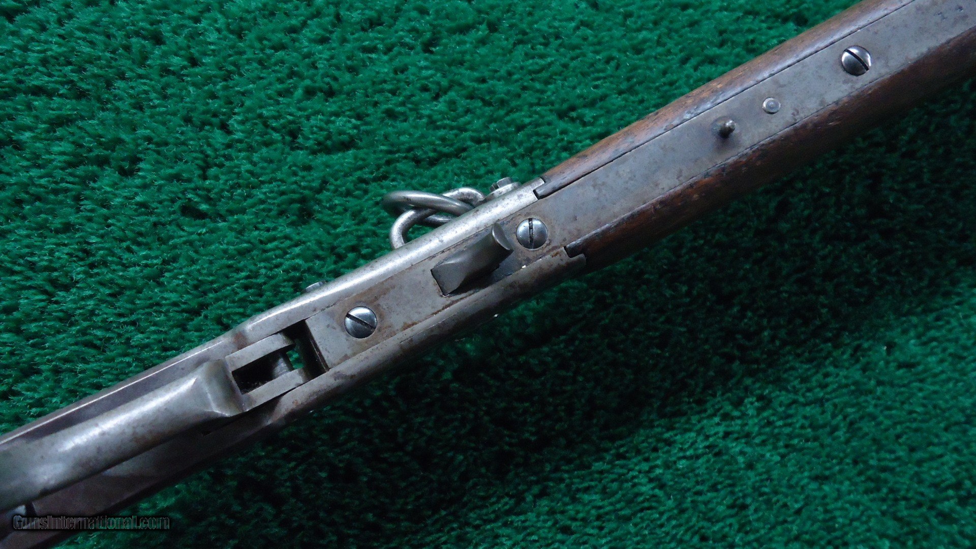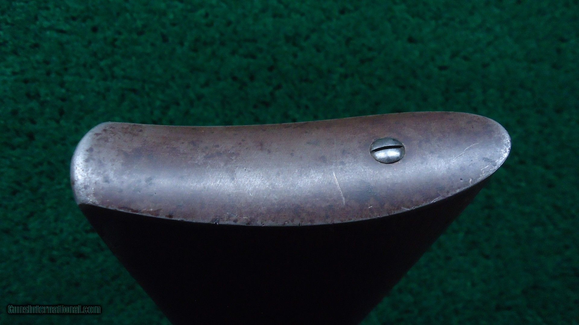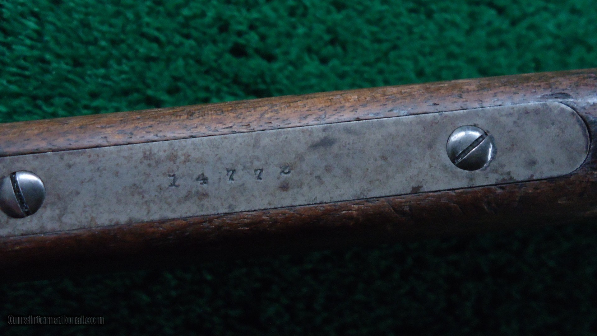 Description: 20 inch part octagon barrel with G.W.S. stamped on left side. Overall this gun has been treated well over the years. Traces of case colors visible on protected areas of the frame, with the remainder mostly aged to a gray patina. Octagon portion of barrel shows perhaps 50% of blue turning a plum patina. Remainder of barrel is a nice even brownish plum patina. Two stock cartouches visible. Nice solid wood has been freshened some but shows appropriate signs of age and use with a minor repair at the toe. Bright shiny bore with minimal pitting. Good looking old carbine! Leroy Merz Antique Firearms specializes in antique and vintage Winchesters and other fine American firearms. Since 1965 Mr. Merz has taken part in the world of firearms and has been a contributor to many well known reference books. We have hundreds of additional guns in every price range at our home online. Search for Merz Antiques in google. SOLD Antique: Yes |
