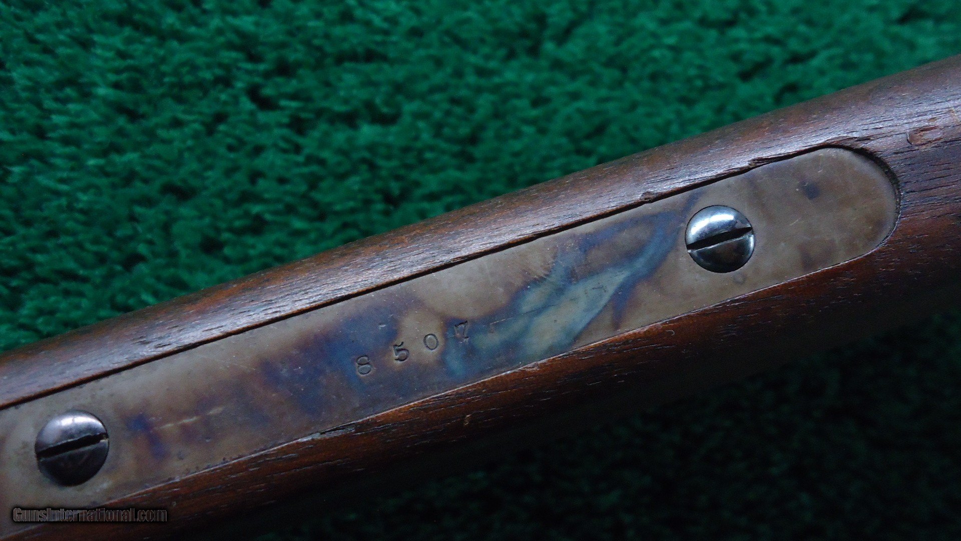 Description: Wood is in generally good condition with carbine style buttplate. Visible cartouche. Excellent bore and original sights. Overall gun is in very good condition with most all original barrel blue remaining. Receiver retains about 75% case color starting to turn dark. Leroy Merz Antique Firearms specializes in antique and vintage Winchesters and other fine American firearms. Since 1965 Mr. Merz has taken part in the world of firearms and has been a contributor to many well known reference books. We have hundreds of additional guns in every price range at our home online. Search for Merz Antiques in google. SOLD Antique: Yes |