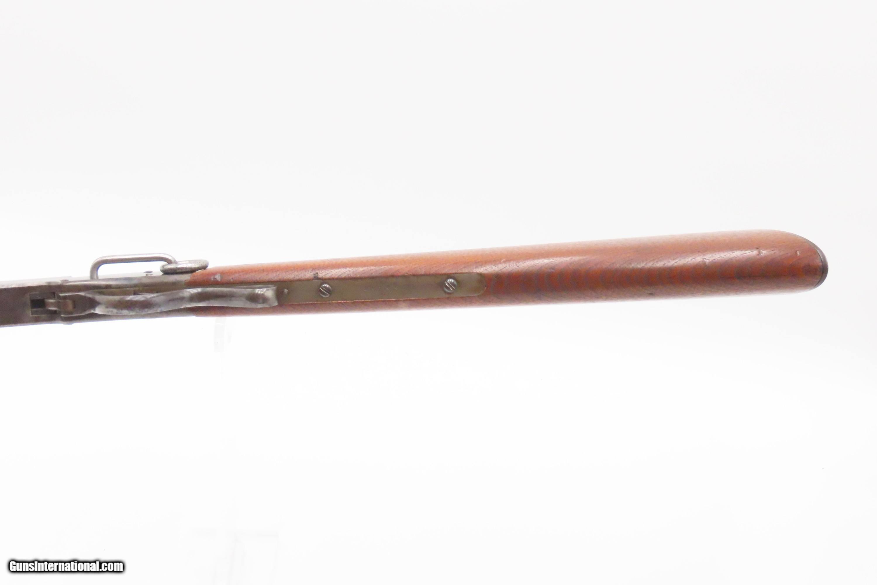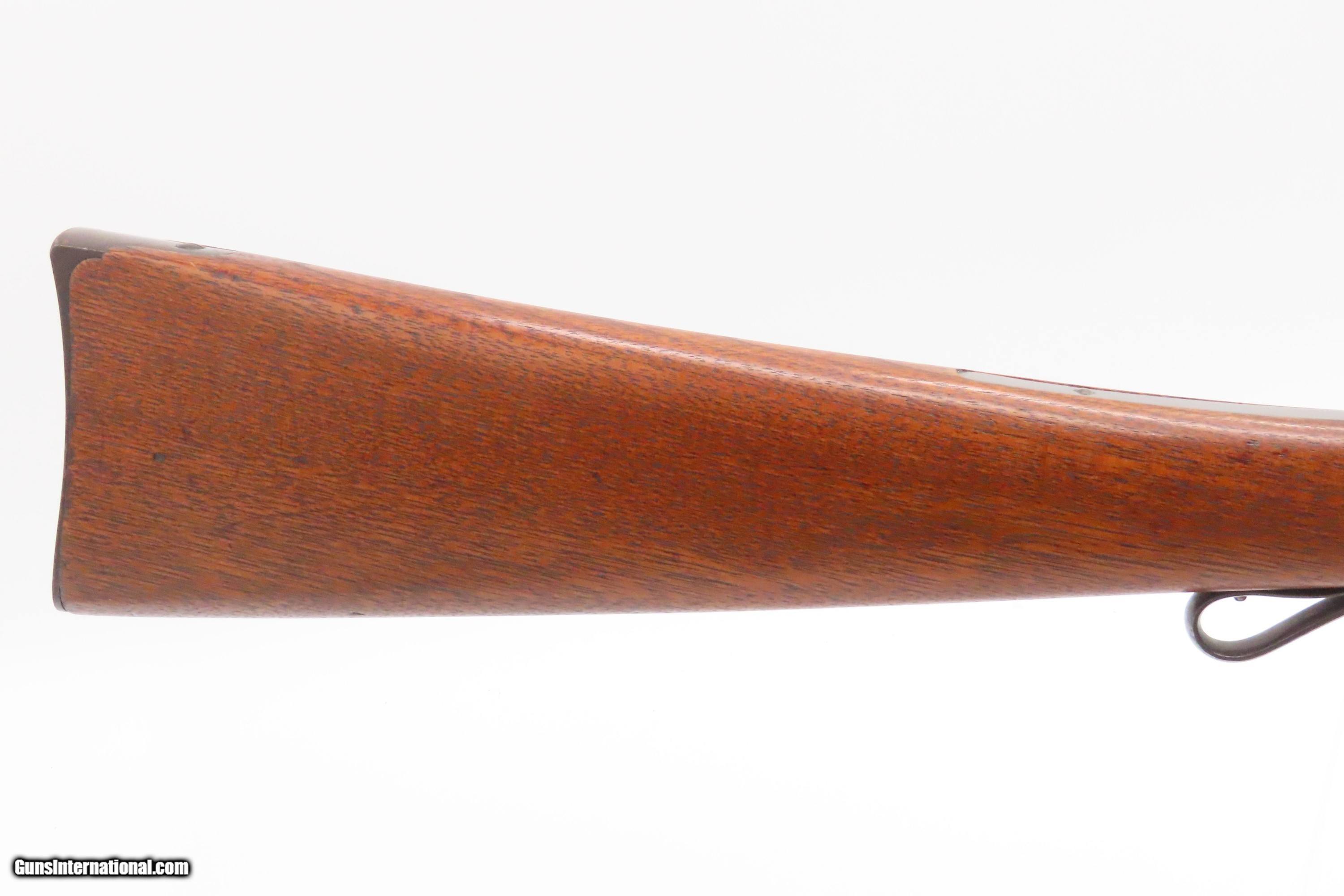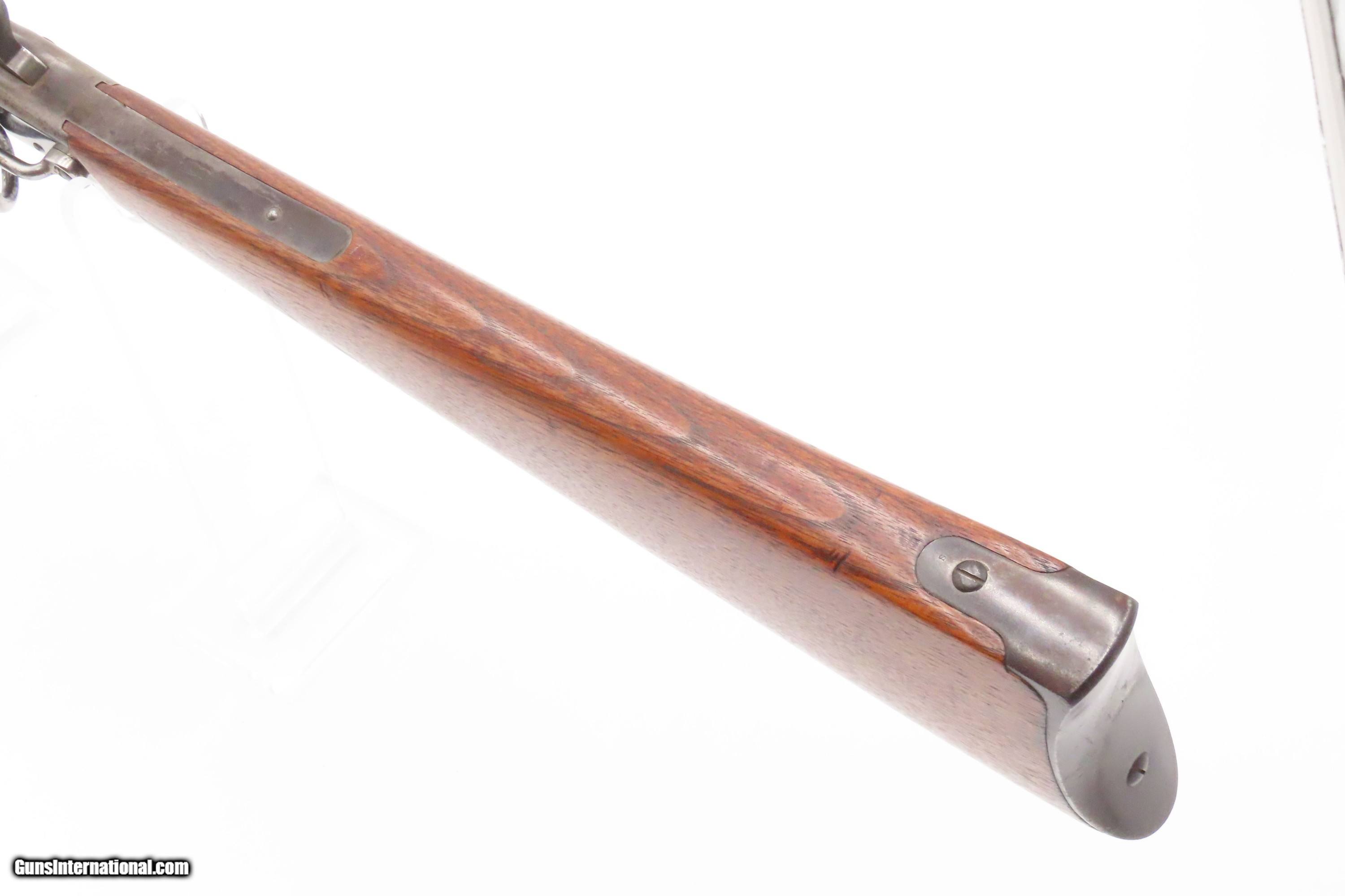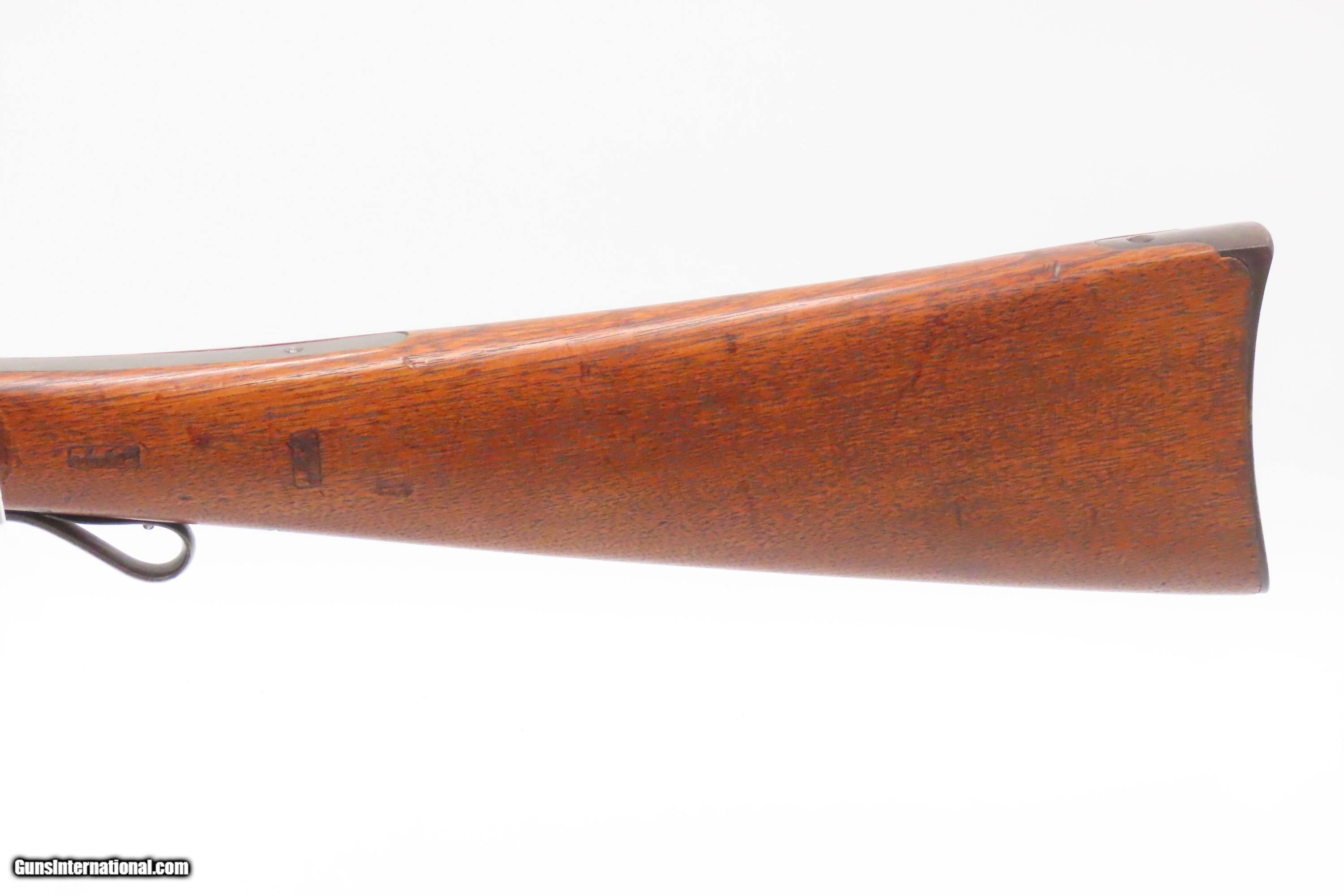 Description: CIVIL WAR Antique MASSACHUSETTS ARMS Percussion MAYNARD SR Carbine CAVALRY Used by 9th & 11th INDIANA and 11th TENNESSEE Here we present an antique U.S. Maynard Second Model Cavalry Percussion Saddle Ring Carbine, made by the Massachusetts Arms Company in Chicopee Falls, Massachusetts, circa 1863. The 2nd Model Maynard carbine is widely regarded as one of the best performing and most accurate of all the cavalry arms used during the Civil War. The well favored carbine was the invention of New Jersey doctor Edward Maynard, who patented his 1st model carbine in 1851. Between 1863 and 1865, the U.S. Ordnance Department contracted for over 20,000 2nd model carbines. Issued mostly to the Federal cavalry, the Maynard proved a lightweight, dependable carbine that saw extensive service in the field. This Civil War carbine was a streamlined and simplified version of the first model, which was equipped with the Maynard Tape Priming System. Some of the first models were purchased in the South prior to the war. An interesting story regarding the Maynard is recorded in Benjamin Botkin’s “A Civil War Treasury of Tales, Legends & Folklore”, said to be the quote of Private Toby of the 1st Regiment of the Mississippi Army. The tall tale comes from The Intelligencer of Oxford, Mississippi, and at the end, Toby tells his mates “It’s a right big story, boys, but it’s true, sure as shooting. Nothing to do with a Maynard rifle but to load her up, turn her North, and pull the trigger. If twenty of them don’t clean out all Yankeedom, then I’m a liar, that’s all.” This second model was used by various Union cavalry units. Known significant issue and use occurred in the 9th & 11th Indiana, as well as the 11th Tennessee. It was generally well-liked, owing to its light weight, handling and simplicity. The lever simply tips the barrel down so that the breech is exposed for loading and unloading. Compared to a percussion muzzle-loader, it was much faster to put fire down range. The left side of the frame is marked “EDWARD MAYNARD/PATENTEE/MAY 27, 1851/DEC. 6, 1859”. The right side is marked “MANUFACTURED BY/MASS. ARMS CO./CHICOPEE FALLS”. The overall condition is fine. Original blue finish and case colors. This example is martially marked “G.W.S” on left of barrel at breech and has two clear cartouches on left wrist. The action is excellent and strong. The bore is shiny bright with sharp rifling. The stock is solid. A fantastic piece! Own the original! This is a legitimate antique and not a reproduction. Barrel is 20 inches. Caliber: .50 Percussion Overall condition as seen in photos. Very Fast. Very Safe. FREE SHIPPING WORLDWIDE. Delivered directly to your door by express mail! Guaranteed AUTHENTIC & Includes CERTIFICATE OF AUTHENTICITY. ancestryguns $3300 #247203 SOLD Antique: Yes |