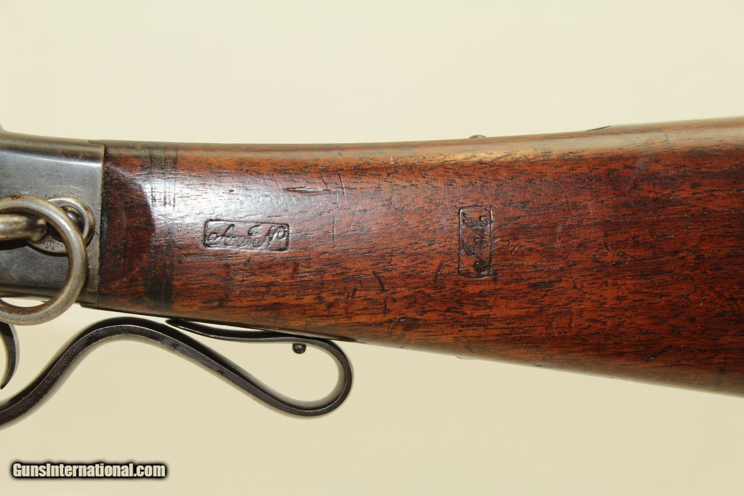 Description: CIVIL WAR Carbine by MAYNARD with Original HANGER Made by Massachusetts Arms Co. in Chicopee! Here we present an antique Maynard Second Model 1863 Cavalry percussion carbine, made by Massachusetts Arms Co. in Chicopee, Massachusetts, circa 1864. This Civil War carbine was a streamlined and simplified version of the first model, which was equipped with the Maynard Tape Priming System. Some of the first model was purchased in the South prior to the war. An interesting story regarding the Maynard is recorded in Benjamin Botkin’s A Civil War Treasury of Tales, Legends & Folklore, said to be the quote of Private Toby of the 1st Regiment of the Mississippi Army. The tall tale comes from The Intelligencer of Oxford, Mississippi, and at the end, Toby tells his mates “It’s a right big story, boys, but it’s true, sure as shooting. Nothing to do with Maynard rifle but to load her up, turn her North, and pull trigger. If twenty of them don’t clean out all Yankeedom, then I’m a liar, that’s all.” Known significant issue and use occurred for the North in the 9th & 11th Indiana, as well as the 11th Tennessee. It was generally well-liked, owing to its light weight, handling and simplicity. The lever simply tips the barrel down so that the breech is exposed for loading and unloading. Compared to a percussion muzzle-loader, it was much faster to put fire down range. The left side of the frame is marked “EDWARD MAYNARD/PATENTEE/MAY 27, 1851/DEC. 6, 1859”. The right side is marked “MANUFACTURED BY/MASS. ARMS CO./CHICOPEE FALLS”. The left side of the breech bears U.S. government inspector initials “AJN”. This one comes with one reloadable piece of brass as well as original hanger hardware that would have been used by cavalrymen to retain their carbines by a leather belt. The brass would have contained the powder and ball and the percussion nipple would still have to be separately primed. The overall condition is near fine. 75% of the blue finish remains with clear markings. The walnut stock shows clear government inspector cartouches and remains smooth and solid. The bore is bright with sharp rifling. The action is excellent. Own the original! This is a legitimate antique and not a reproduction. Barrel is 20 inches. Caliber: .50 Percussion Overall condition as seen in photos. Very Fast. Very Safe. FREE SHIPPING WORLDWIDE. Delivered directly to your door by express mail! Guaranteed AUTHENTIC & Includes CERTIFICATE OF AUTHENTICITY. ancestryguns $2800 #190080 SOLD Antique: Yes |