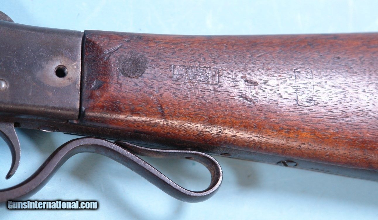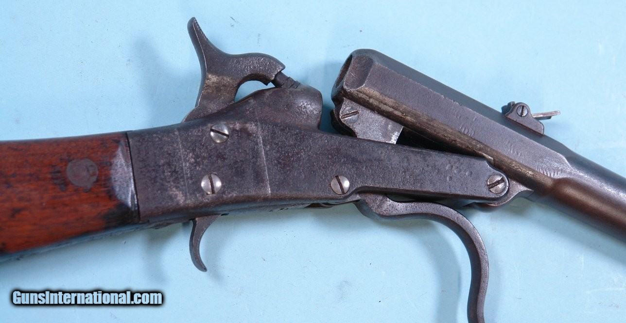 Description: CIVIL WAR MAYNARD 2ND MODEL PERCUSSION CAVALRY CARBINE. 20” rifled .50 caliber barrel with the original sights. U.S. Ordnance inspected on barrel. “A.J.N.”. 1851 and 1858 patent dates on frame. Barrel with 50-60% blue mixed with patina. Nice markings. Stock with the original finish and excellent cartouche. Small chip top left abutting frame. Missing saddle ring and bar and loading lever return spring. Working order and bore with moderate corrosion and darkening but good rifling. Priced reasonably and only needs a few parts. SOLD Antique: Yes Rifle Caliber: .50 |