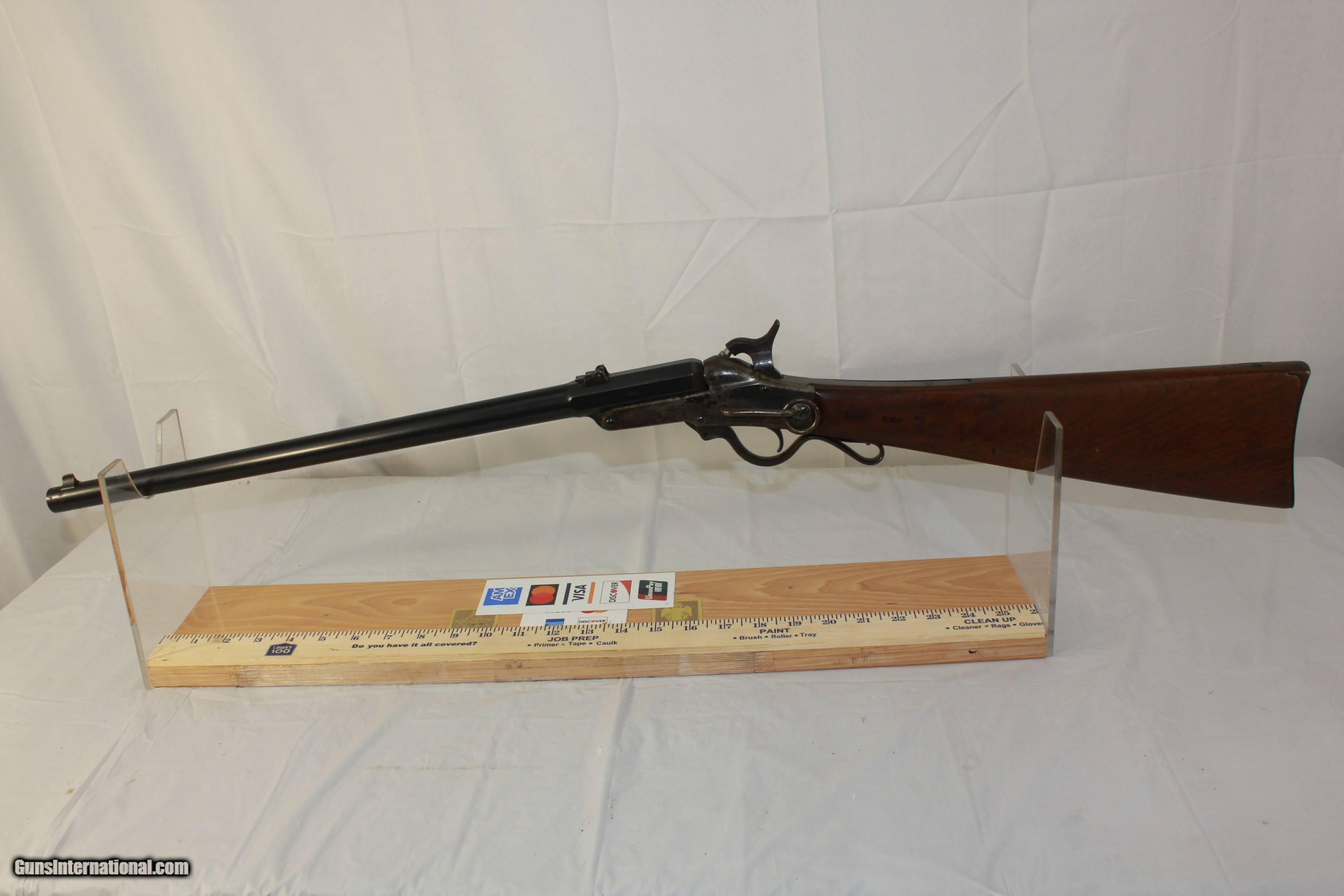 Description: This Massachusetts Arms Company Civil War Carbine is in excellent condition. There are traces of case colors on the action and the cartouches are very blear as well as the inspectors marks. The nipple is a modern stainless steel replacement. The 50-50 cartridge had a very large rim to make an extractor unnecessary. There was a small hole in the base to allow the fire from from the musket cap to fire the round. A nice representative Civil War Carbine. The leather Boot is listed under . $70.00 Shipping via Priority Mail Antique No paperwork required SOLD Antique: Yes |