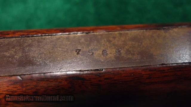 Description: Standard Maynard markings and patent dates including the "Manuf by Mass Arms CO". This gun does have cartouches on the stock which are still visible but hard to read. Stock itself is in quite good cond with a couple of chips and a light crack but very good fitting to the upper and lower tang. A coat of oil looks to have been added years ago. Serial range is 7500. An aged finish remains on the metal of this gun. Looks quite nice with good markings. All leaves present on the 3-leaf Maynard sight. Some pitting in the bore. Riflings are good. The pivot and lockup is very solid on this Maynard. Hammer and trigger springs are good. Leroy Merz Antique Firearms specializes in antique and vintage Winchesters and other fine American firearms. Since 1965 Mr. Merz has taken part in the world of firearms and has been a contributor to many well known reference books. Just recently we mailed the 124th edition of our privately-published catalog. We have hundreds of additional guns in every price range at our home online. Search for Merz Antiques in google. SOLD Antique: Yes |