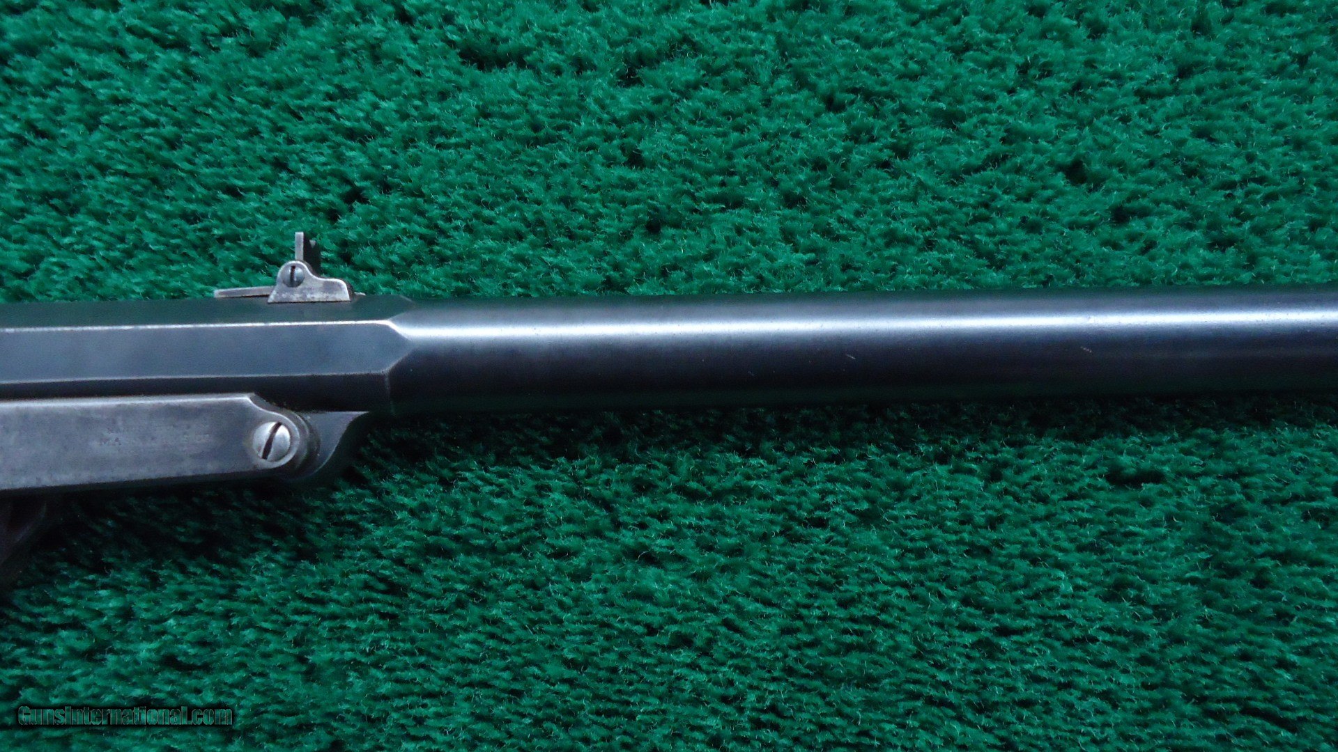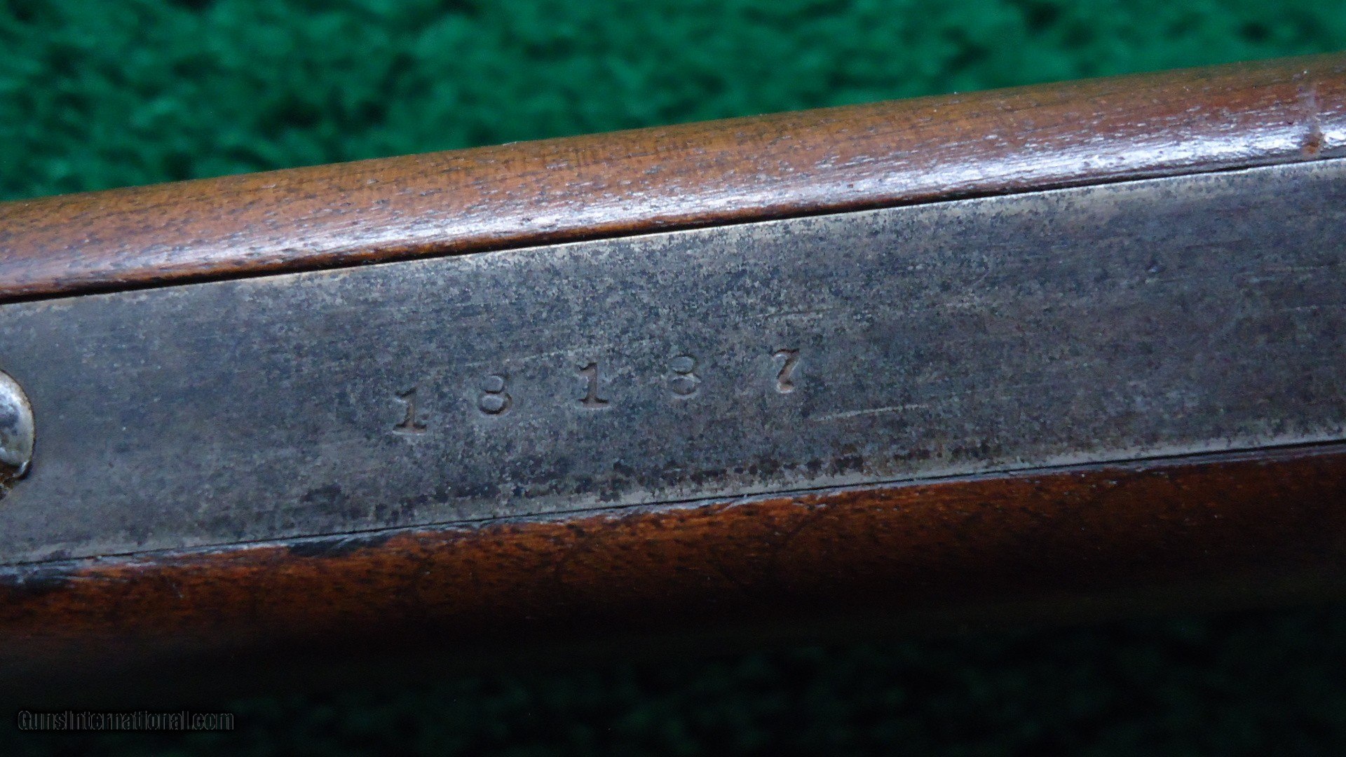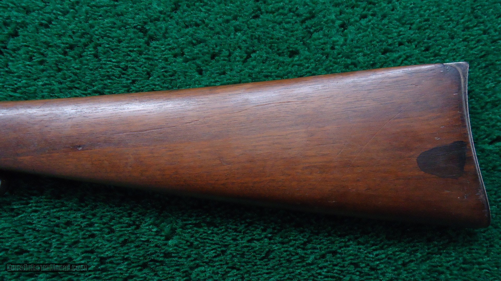Description: Breech loading percussion carbine features a 20 inch round barrel with octagon shank chambered in 50 caliber. Original sights include a blade front sight with a 2 folding leaf rear sight. Left side of frame has saddle ring & bar with the Edward Maynard 4 line address. Right side of frame is marked "MANUFACTURED BY / MASS. ARMS CO. / CHICOPEE FALLS". The barrel retains about 75% dull fading original blue. The frame finish has faded to mottled gray patina. Stock has been lightly sanded and has scattered handling marks. Bore is bright and shiny. A good example of a Civil War carbine. Leroy Merz Antique Firearms specializes in antique and vintage Winchesters and other fine American firearms. Since 1965 Mr. Merz has taken part in the world of firearms and has been a contributor to many well known reference books. We have hundreds of additional guns in every price range at our home online. Search for Merz Antiques in google. SOLD Antique: Yes |