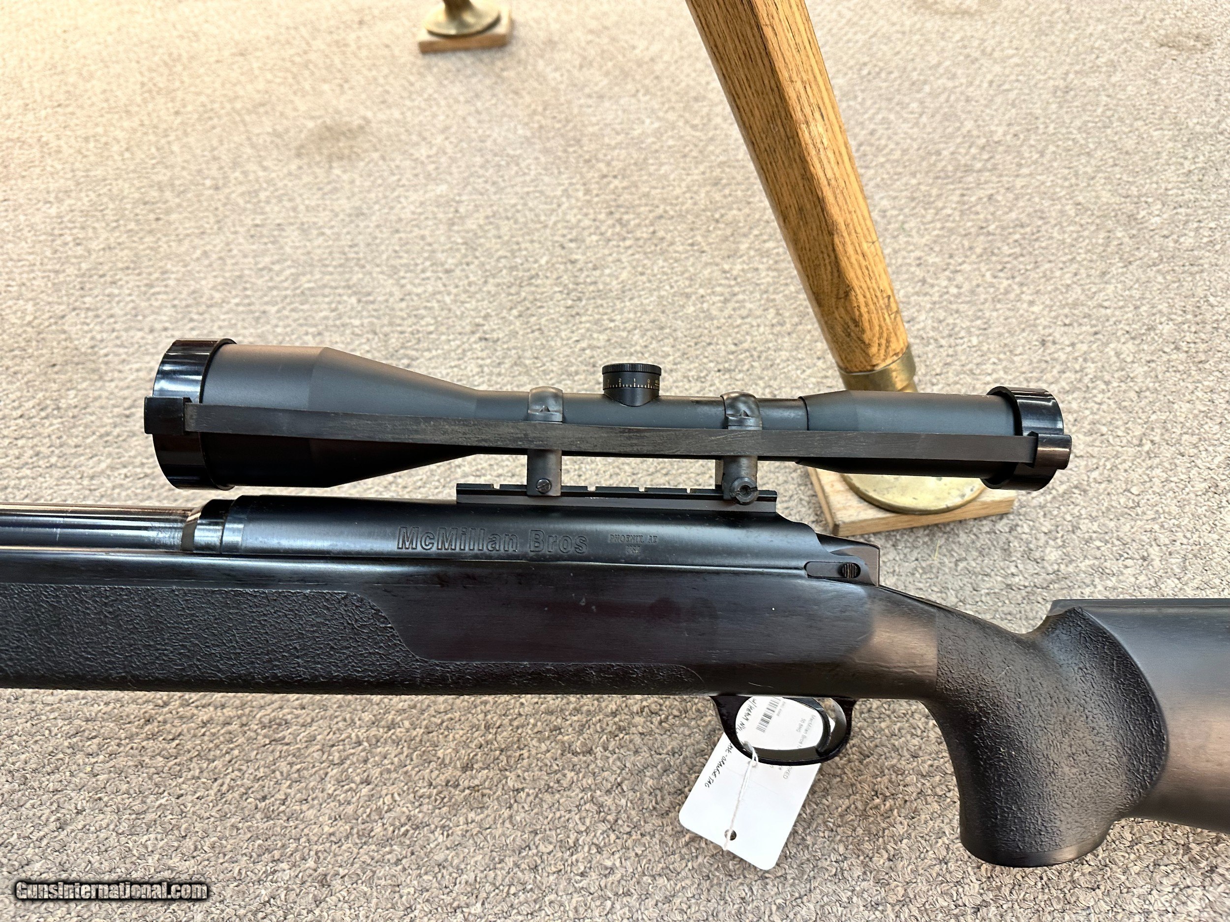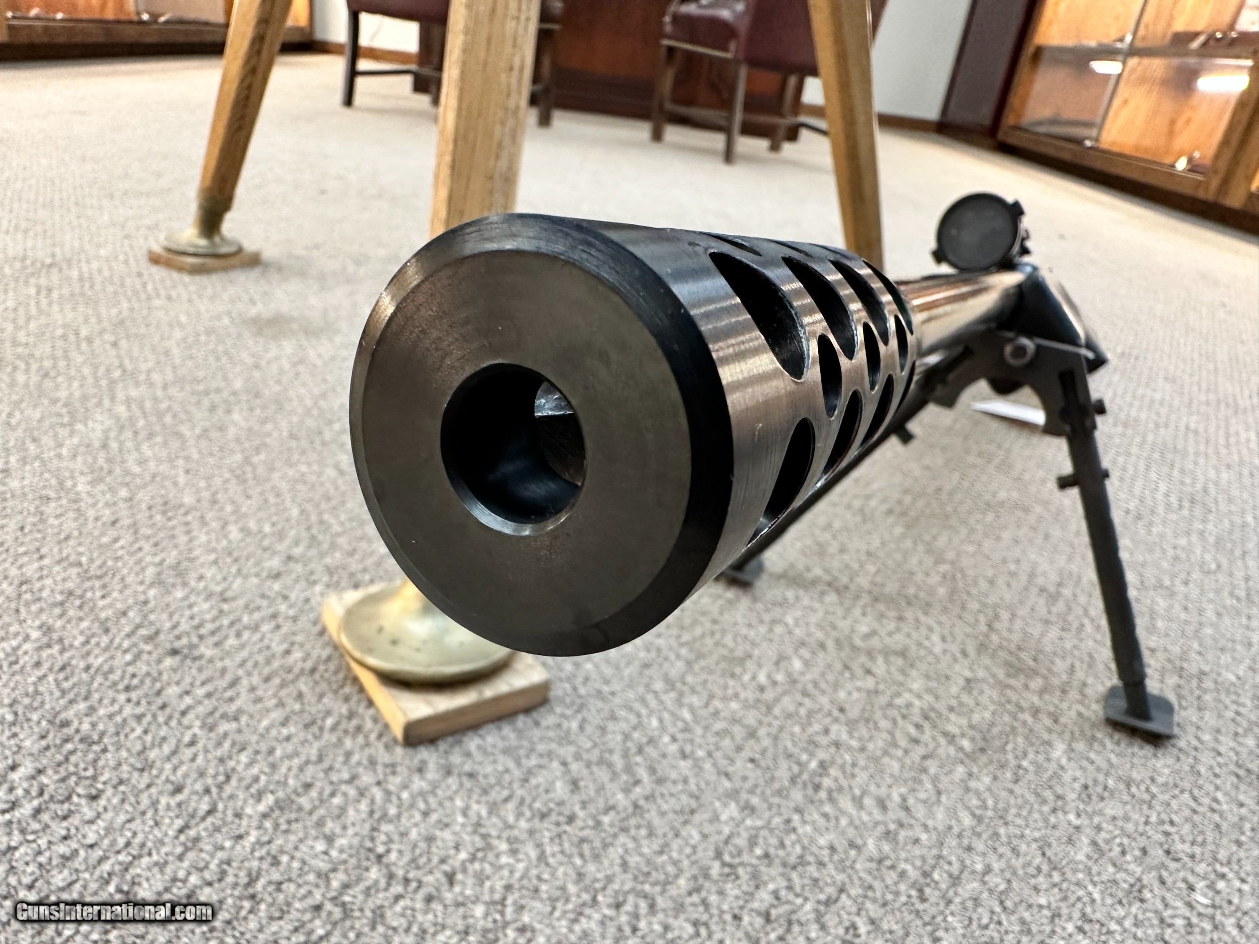 Description: McMillan Bros single shot 50 BMG bolt action rifle with 30" ported barrel and mounted Eurolux 10x56 30MM scope. Call or email with any questions $125 for insured shipping No sales or shipping to California, Hawaii, New Jersey, New York SOLD Rifle Caliber: .50 BMG Manufacturer: McMillan Bros Serial Number: BMG-A968 |