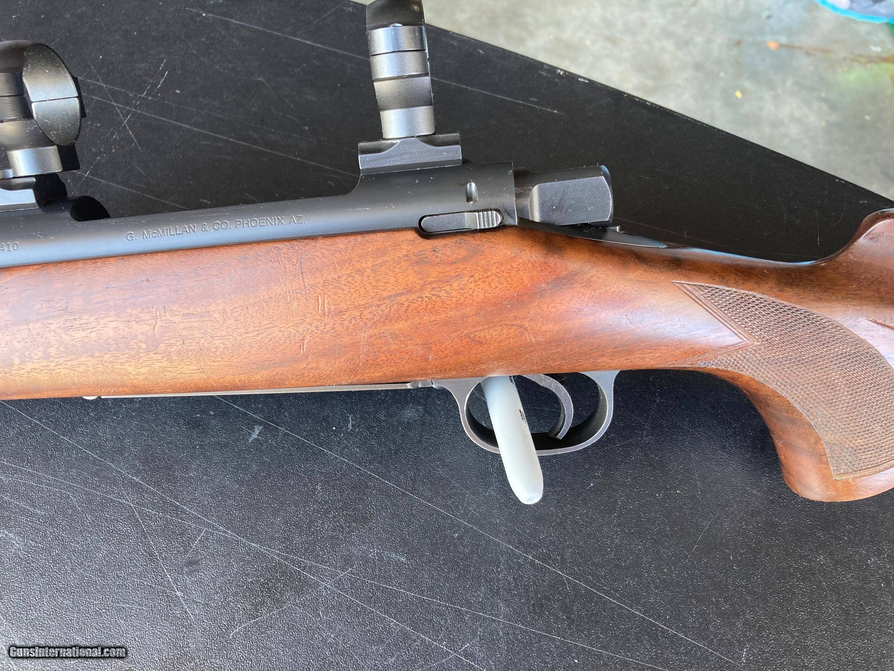 Description: McMillan custom order 300 Win. mag. Rifle has rare walnut appearance stock w/factory pad. Rifle has a matte finish. Including Leupold 30mm rings and bases. Rifle has a factory installed muzzle break. Barrel is 27.5" long. Over all length is 46.75". LOP is approximately 13.5". The rifle is in excellent used condition. A few very light hunting marks. shipping will be $60 to most USA. West coast and Alaska will be $75. No sales to California, Connecticut, or Illinois. SOLD Rifle Caliber: .300 Winchester Magnum Manufacturer: McMillan Barrel Length: 27.5” Condition: Excellent Metal Condition: 97%+ Wood Condition: 97%+ Bore Condition: Excellent Action: Bolt Triggers: Factory Stock: Walnut Butt Pad: Factory LOP: 13.5” Finish: Matte Extras: Leupold scope rings |