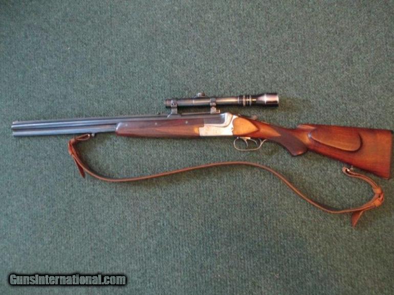 Description: Gebr Merkel Suhl, 16x6.5x55, Made in GDR, Pecar scope with post reticle, claw mounts, coin finish receiver, choke cylinder, 24 3/4" barrel, scroll engraved, right hand cheek piece, 14 1/8" length of pull, single set trigger, solid rib, rollover rear sight, good condition. For further information call John at 941-748-7318. SOLD |