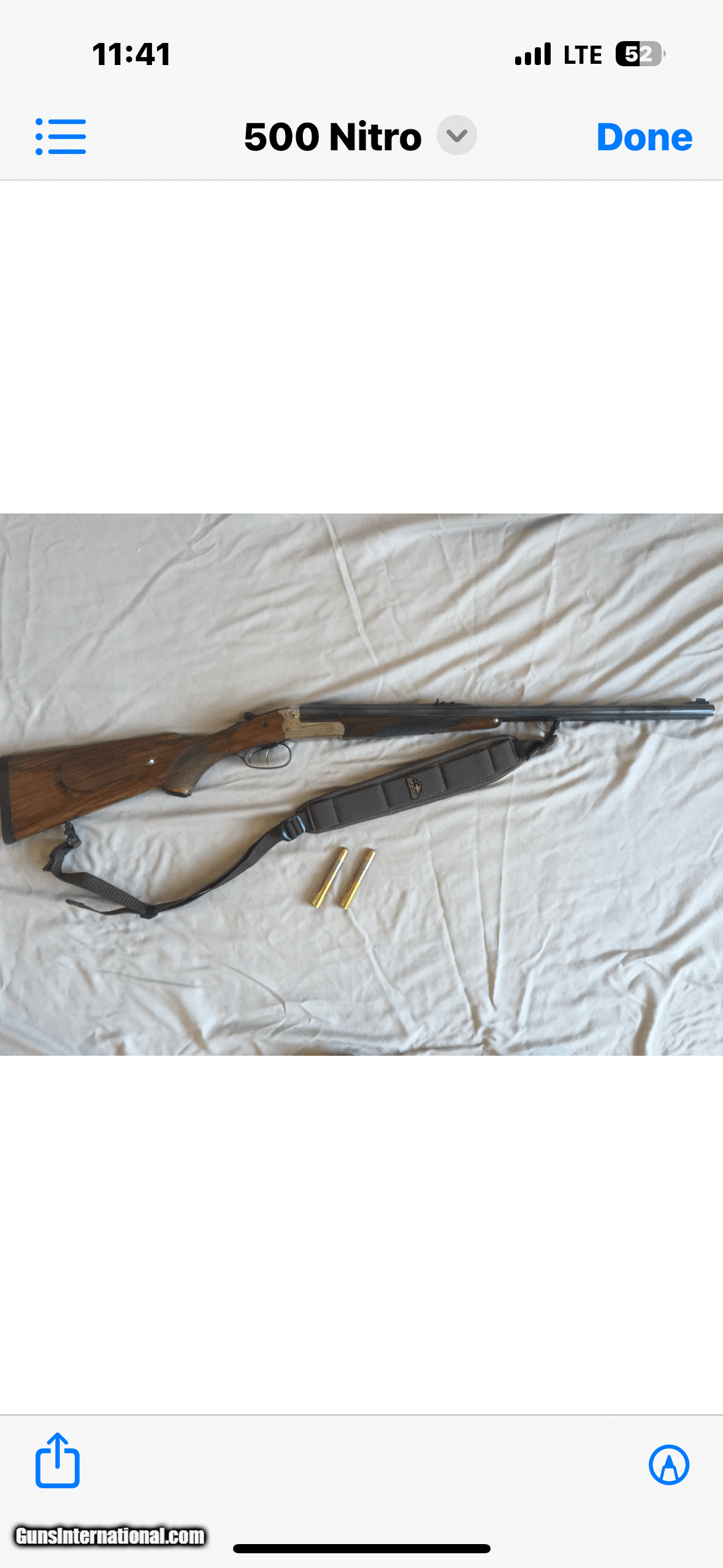 Description: For sale is a very beautiful and useful left Handed Merkel 140 in 500 Nitro express, 23" Barrels, ejectors chamber indicators, safari sights beautiful wood. Includes (2) boxes of Hornady DGX 570 grain ammo $8750 O.B.O SOLD Rifle Caliber: .500 Nitro Express Manufacturer: Merkel Model: 140 Barrel Length: 23 Condition: Excellent |