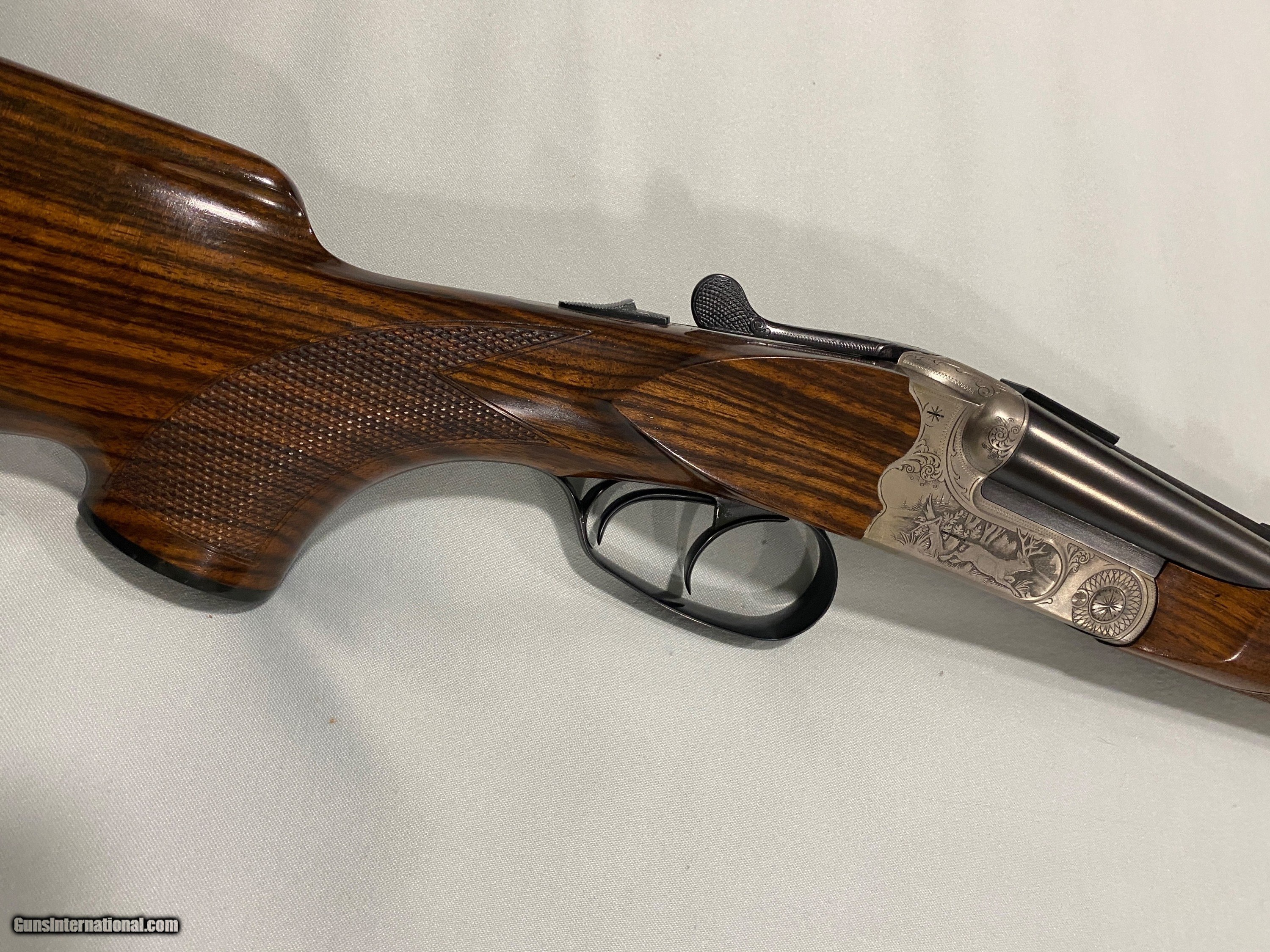 Description: Merkel 141.1 .30-06 Double Rifle. Rifle is unfired in new condition in the box. Rifle features a double trigger with a 21.6" barrel and game scene engravings. Beautiful rifle from a renowned German manufacturer of fine sporting arms. Will entertain offers or trades for a Beretta DT11 More pictures available upon request. No shipments to California. FFL must accept shipments from non-FFL individual (Copy of AL Drivers License included with shipment). Buyer pays actual shipping costs. SOLD Rifle Caliber: .30-06 Springfield Manufacturer: Merkel Model: 141.1 Engraved Barrel Length: 21.6 |