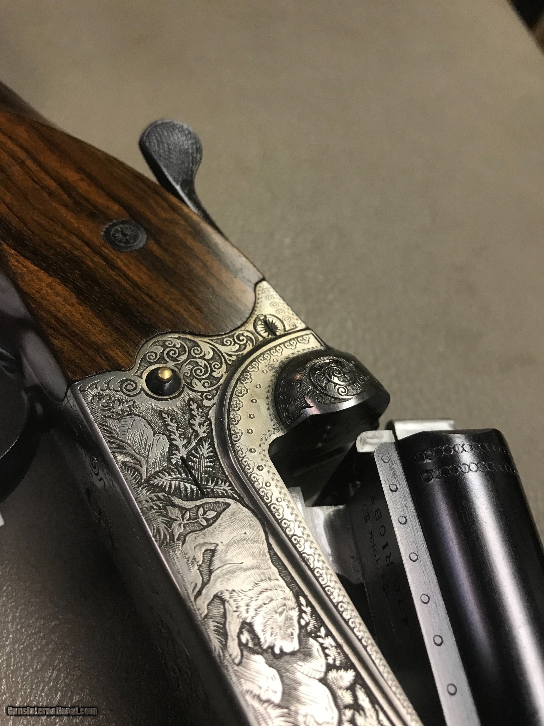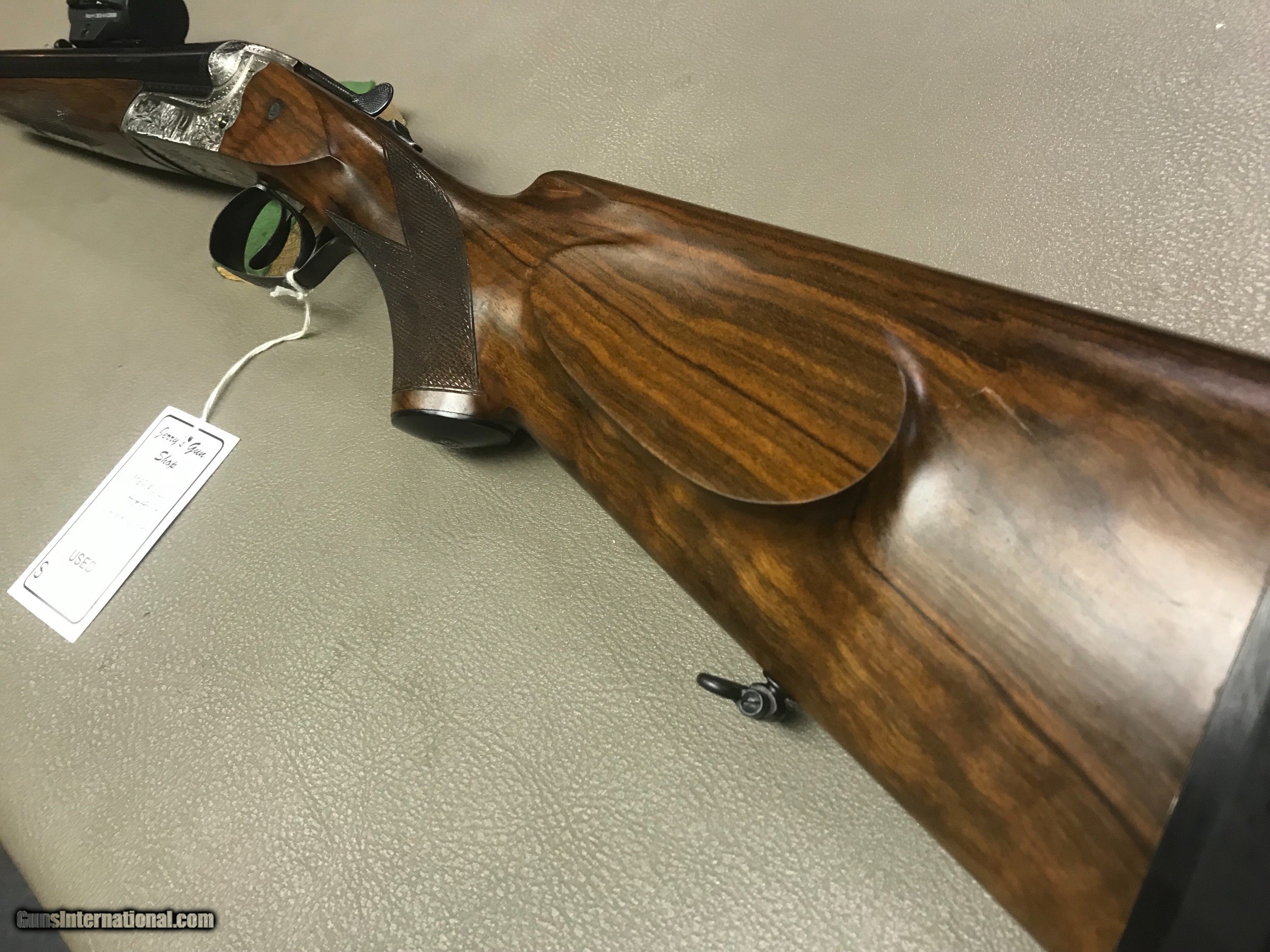 Description: MERKEL 141,416 rigby,sxs, double trigger,GSI inc.,t'ville AL,gebr merkel suhl,made in germany,krupp stahl,original box & a leather case,very fine rifle. SOLD Manufacturer: MERKEL Model: 141 Serial Number: A4160xx |